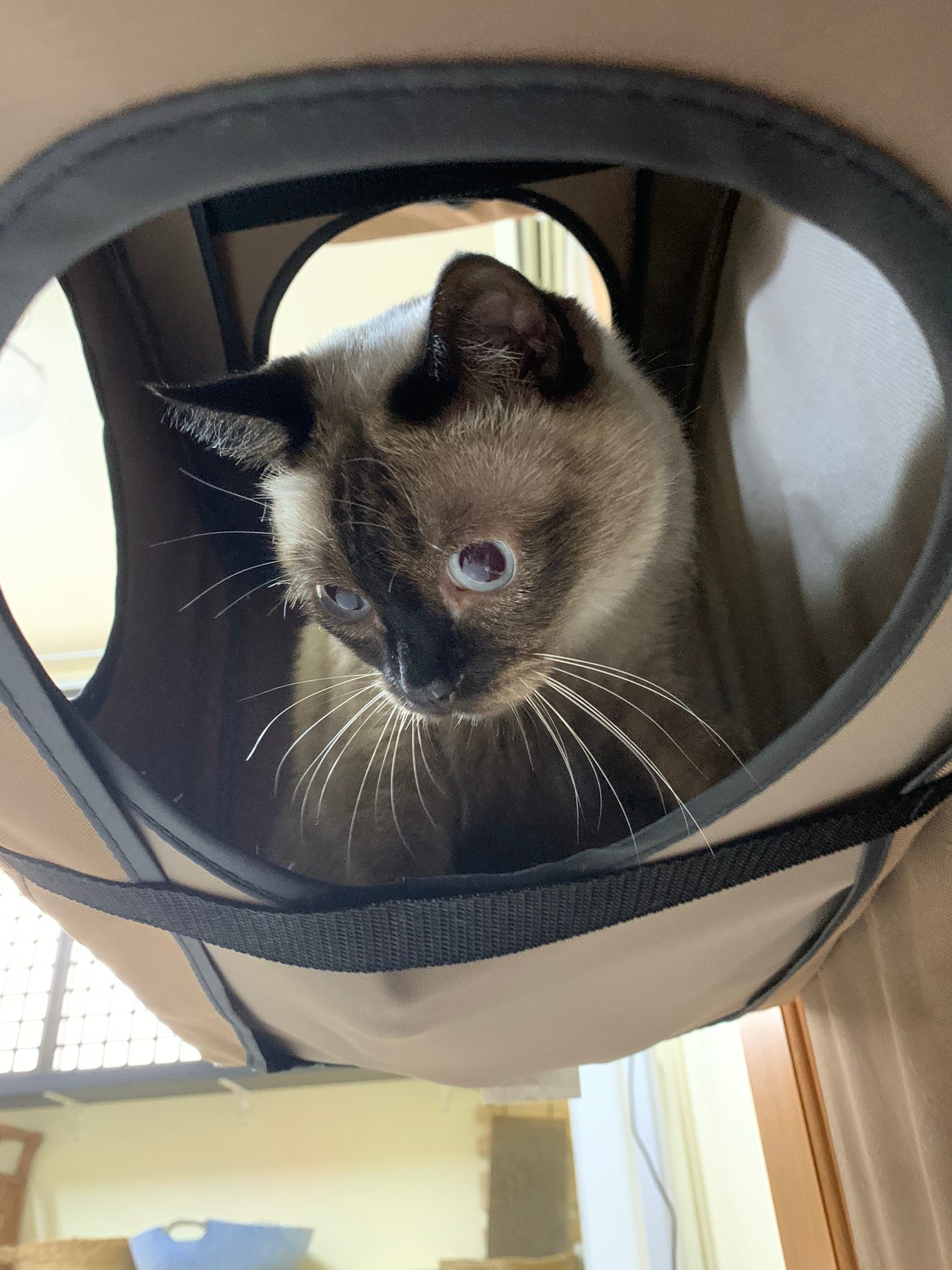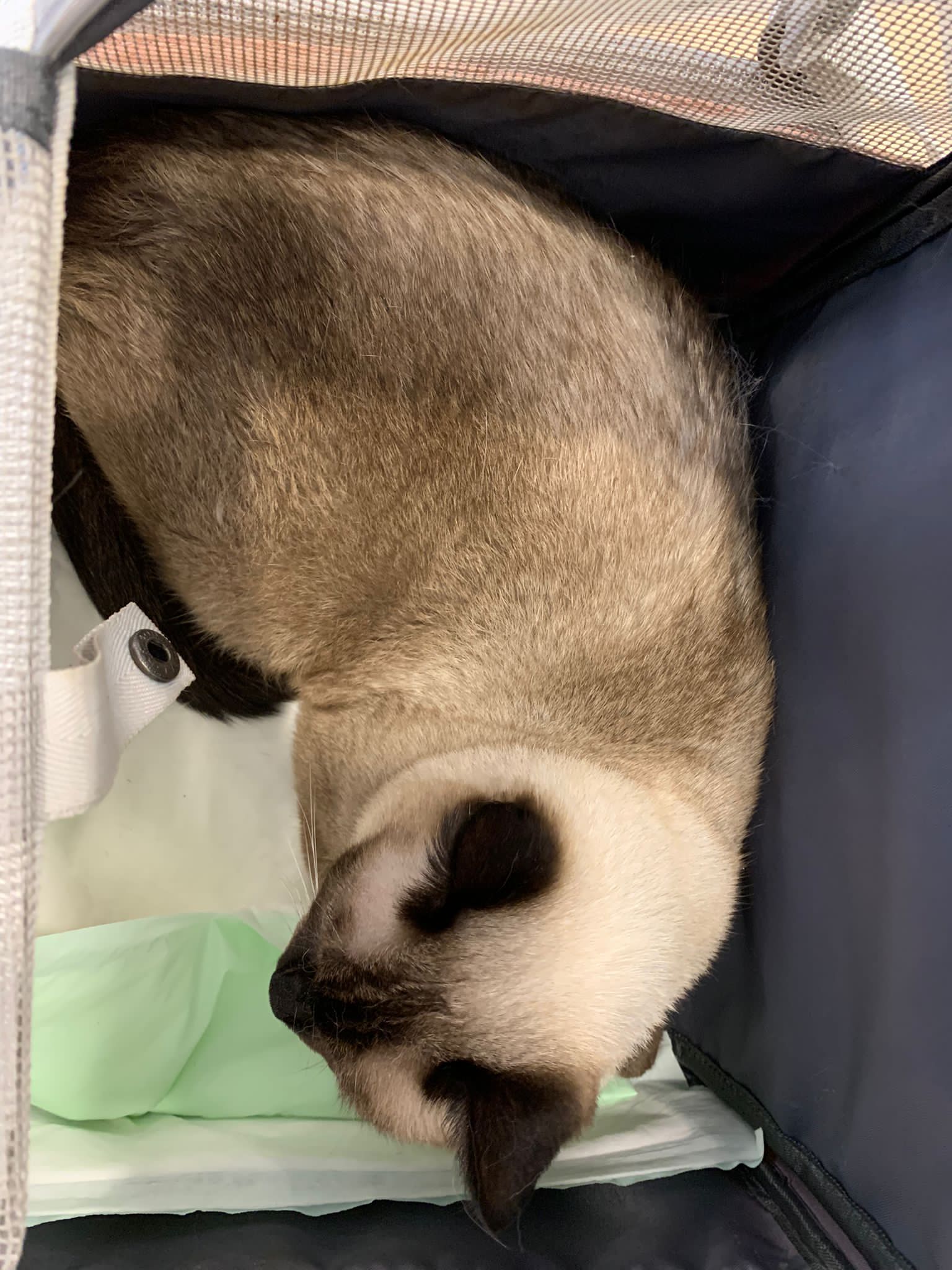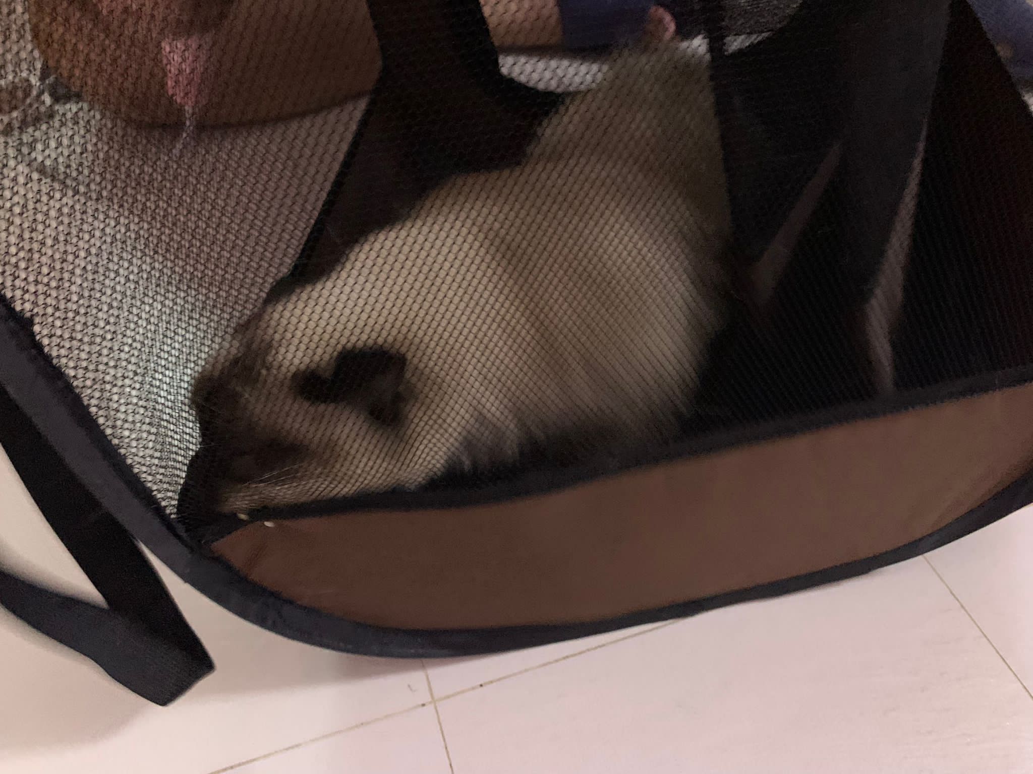 • don’t like to be restrained, so will scream loudly n fiercely since scruff into cage / into carrier