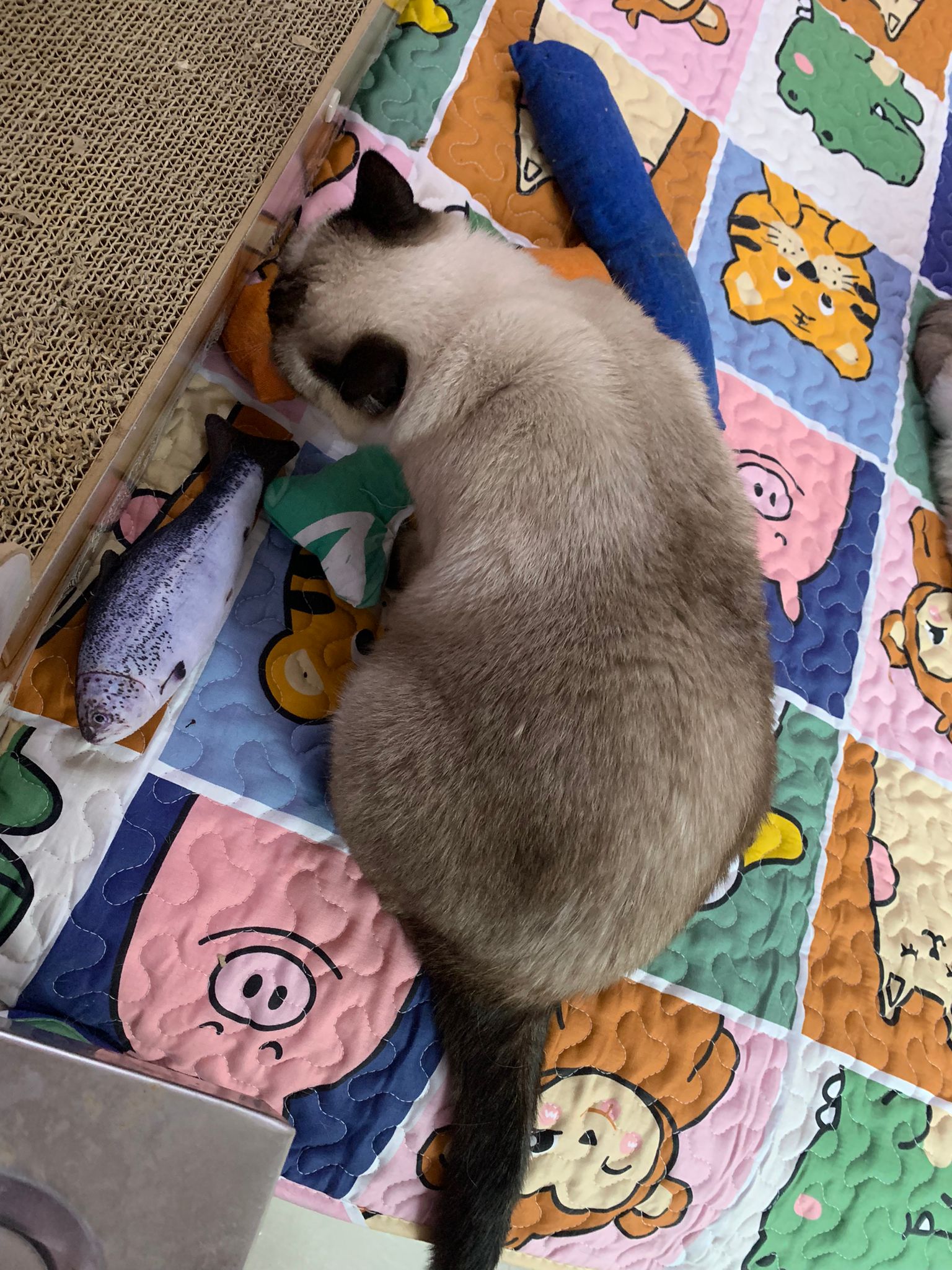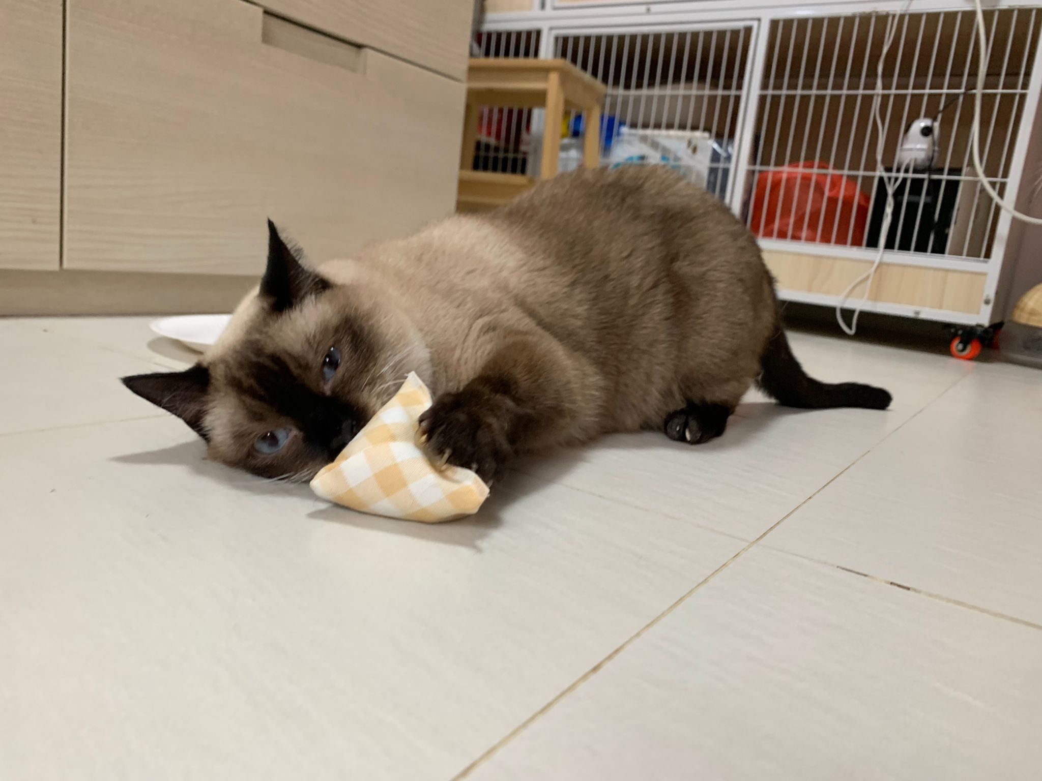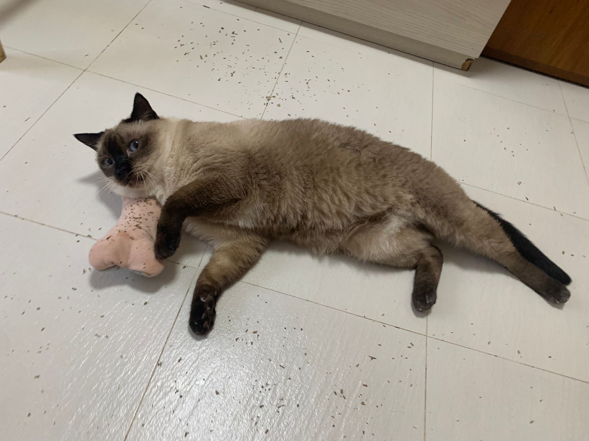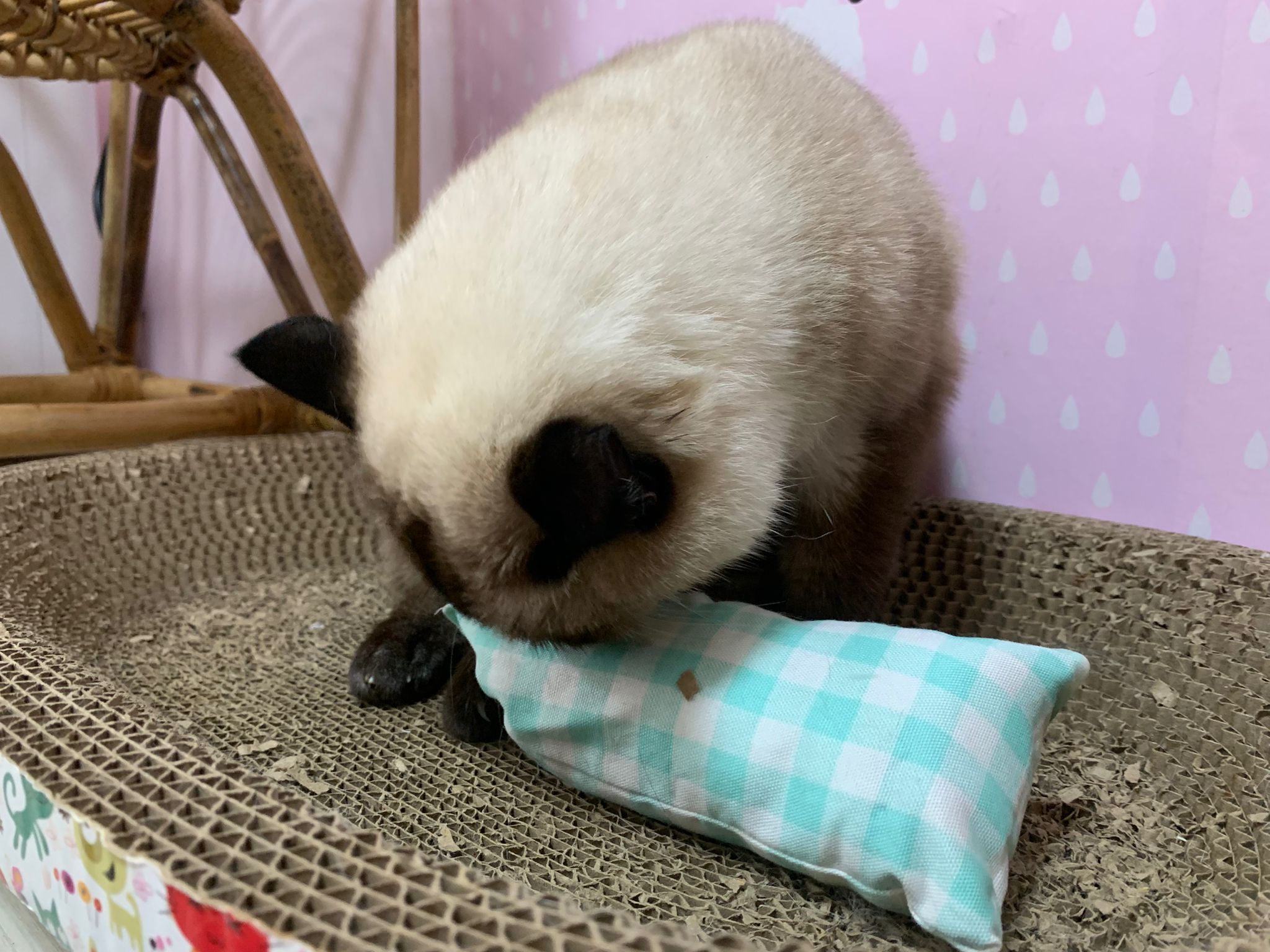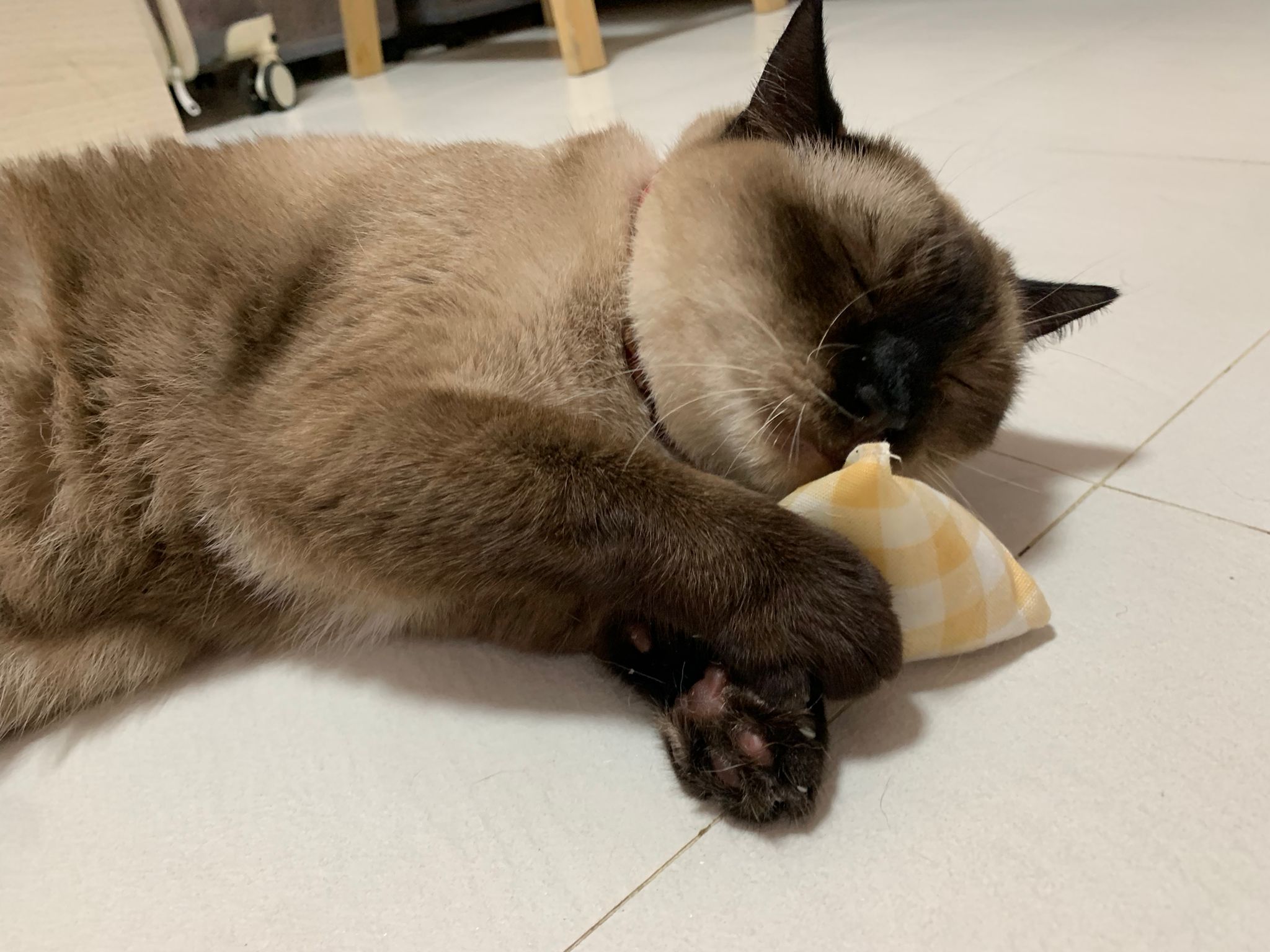 Morning: Tmr major cleaning day, today let them have fun w catnips … tao as usual catnip fan … roll on the floor w the toy. Think I’ll throw all toys on fri