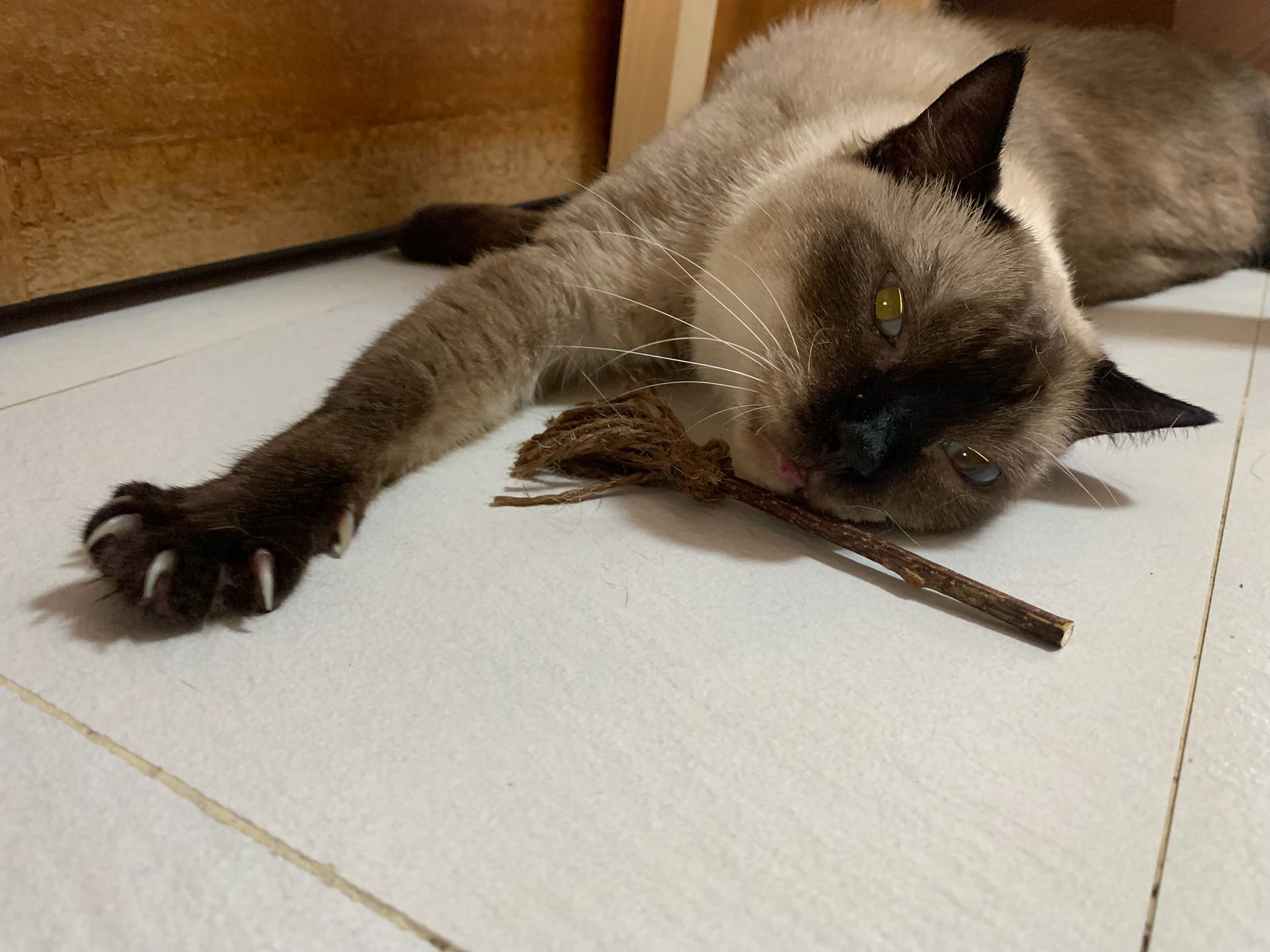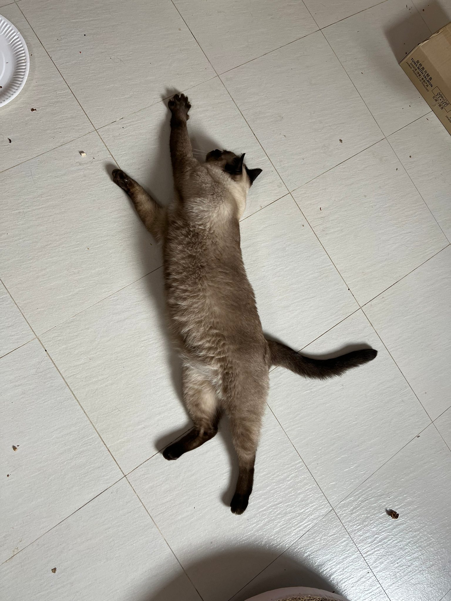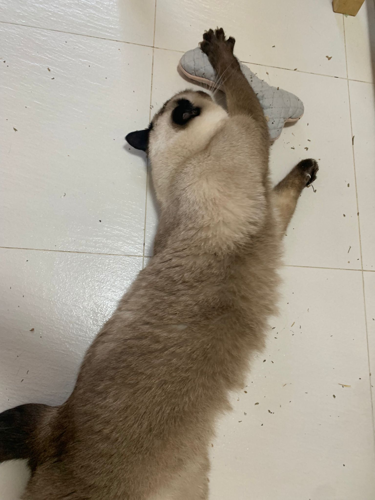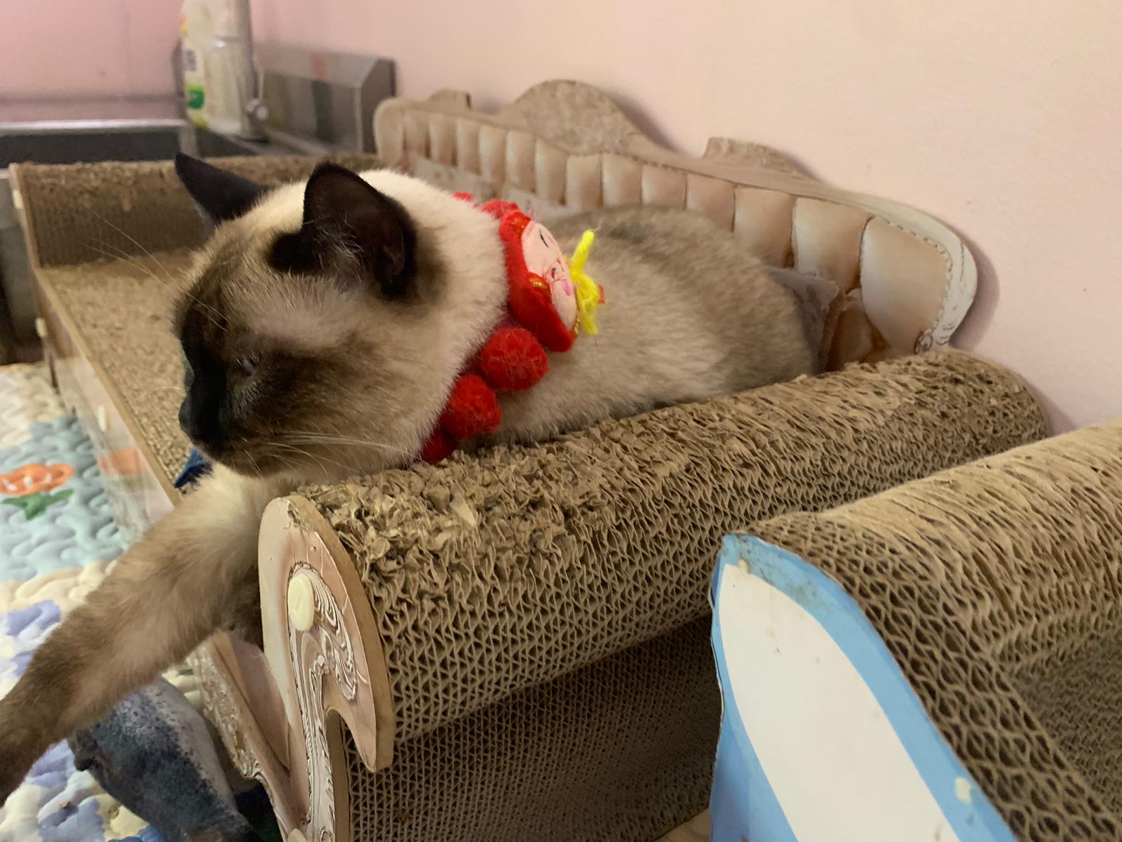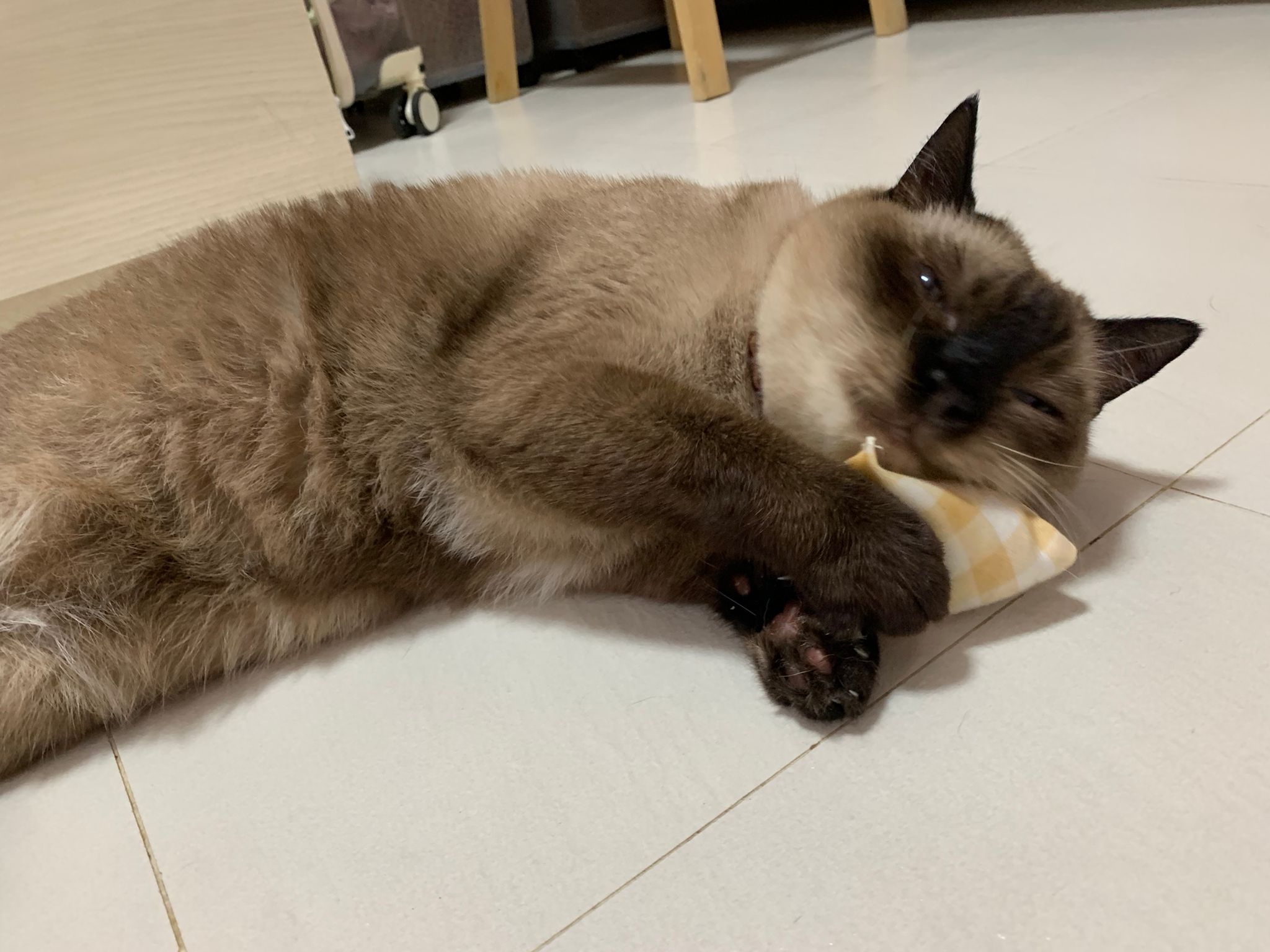 Morning: Tmr major cleaning day, today let them have fun w catnips … tao as usual catnip fan … roll on the floor w the toy. Think I’ll throw all toys on fri