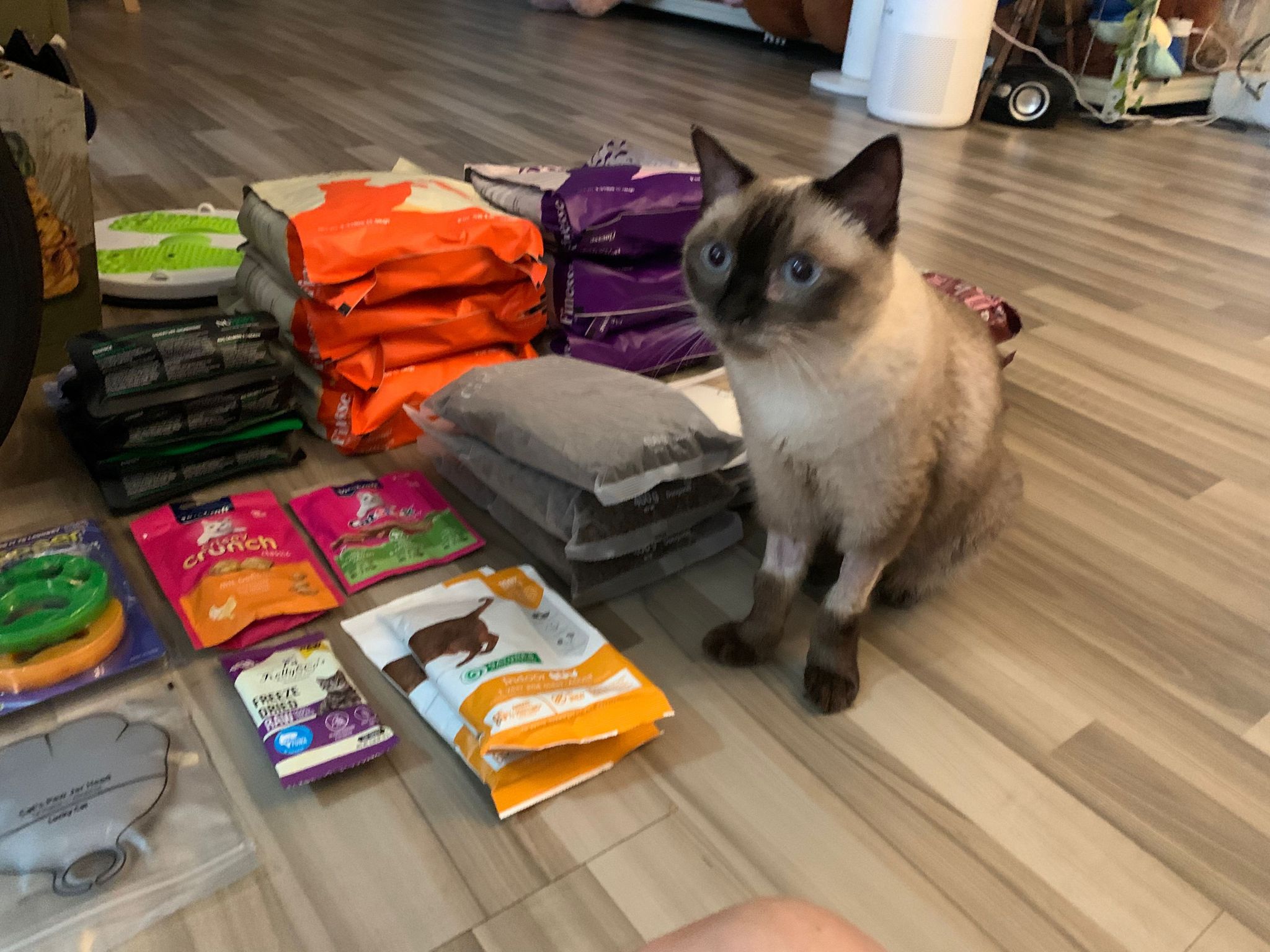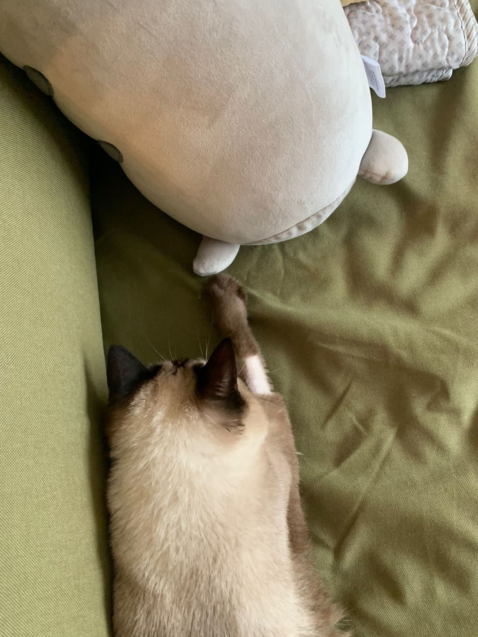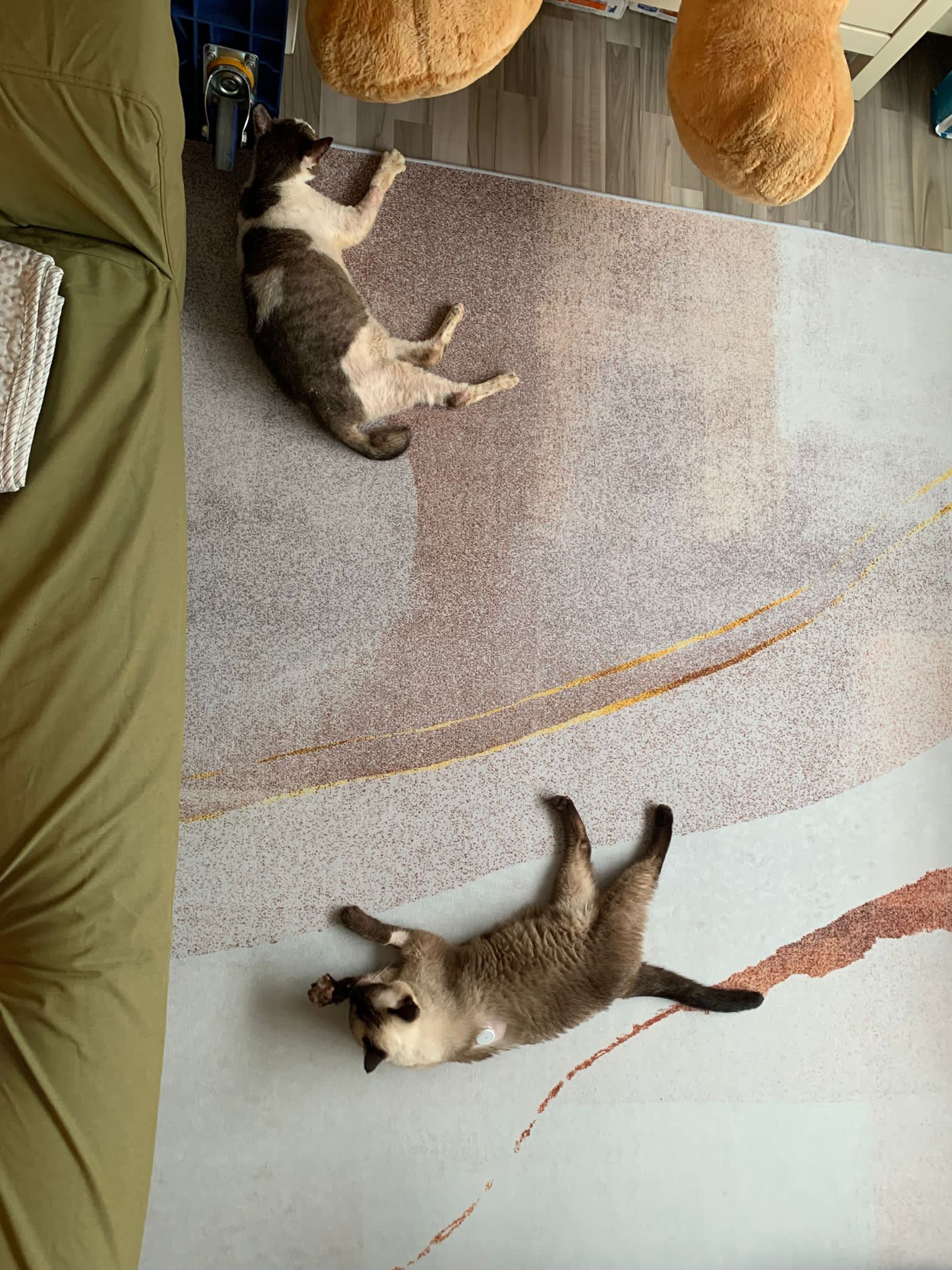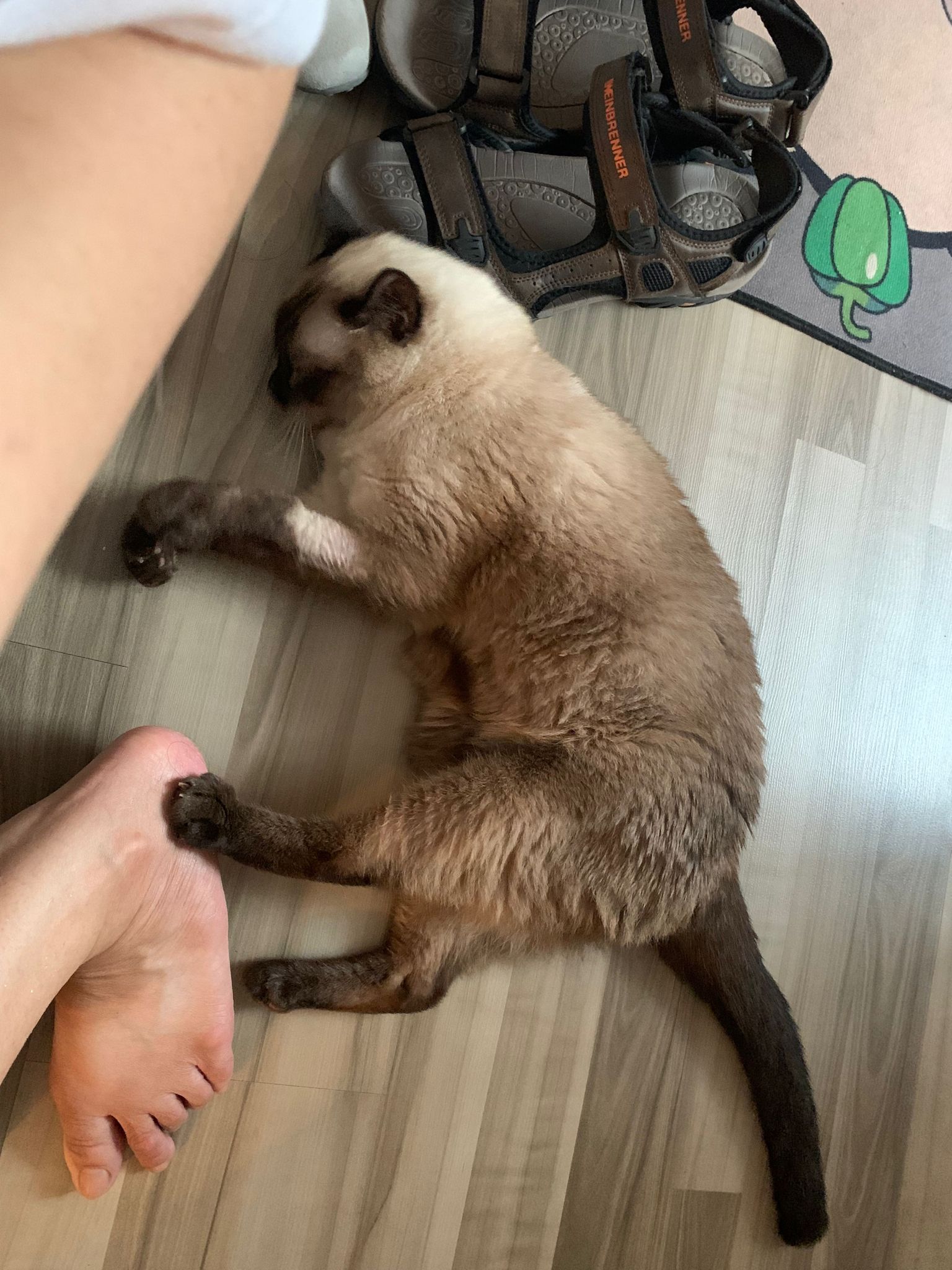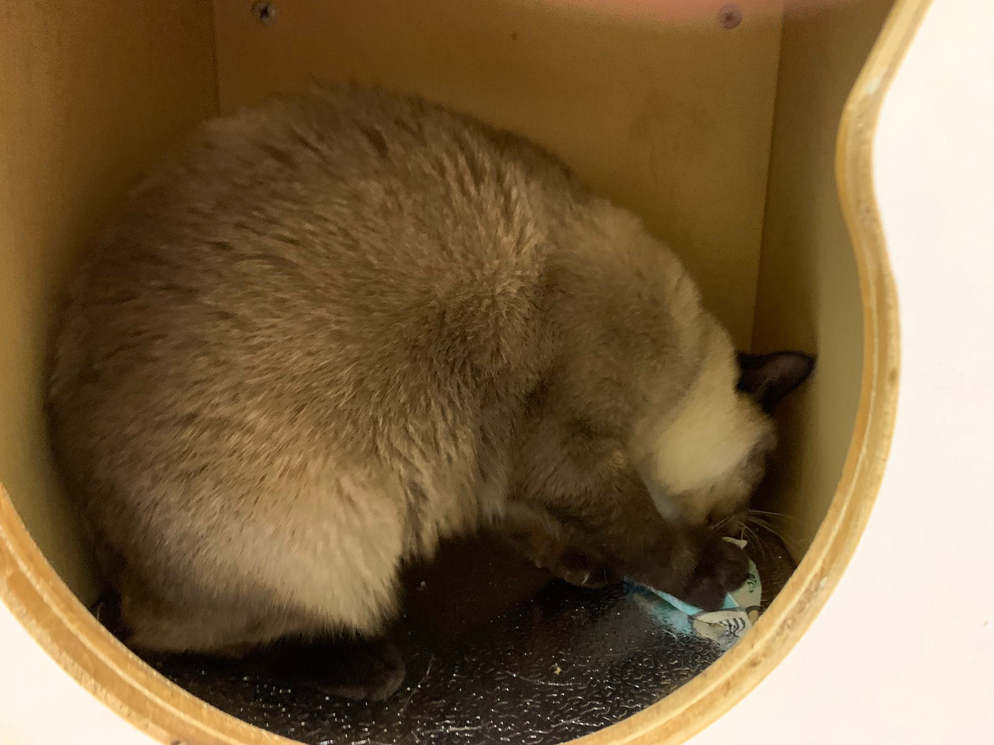 Morning: Tmr major cleaning day, today let them have fun w catnips … tao as usual catnip fan … roll on the floor w the toy. Think I’ll throw all toys on fri