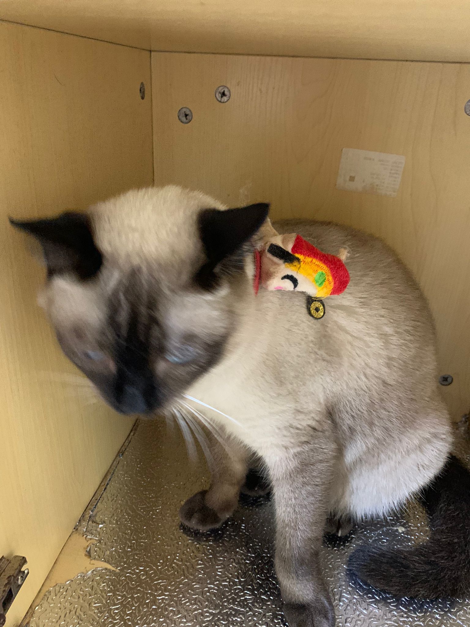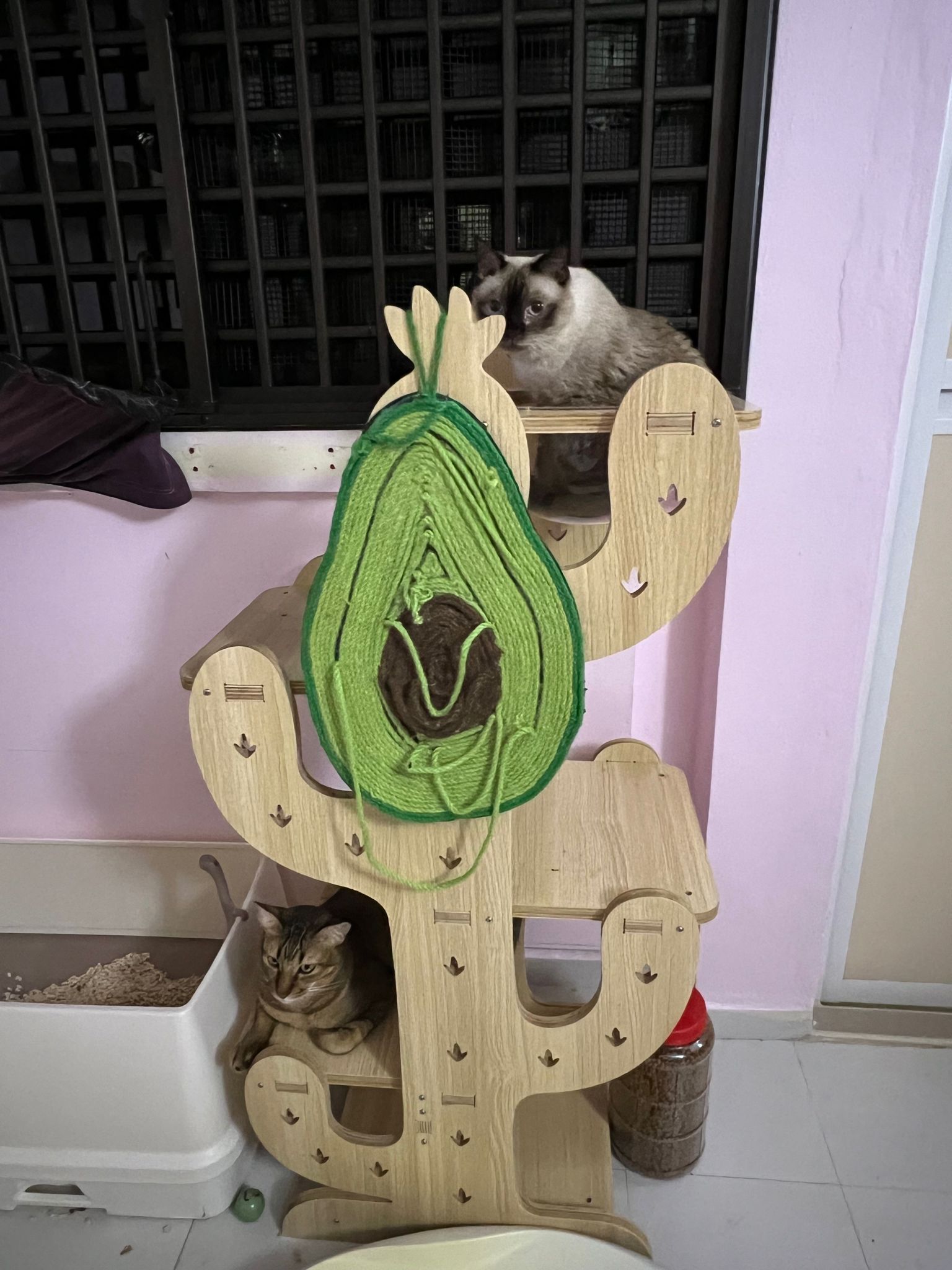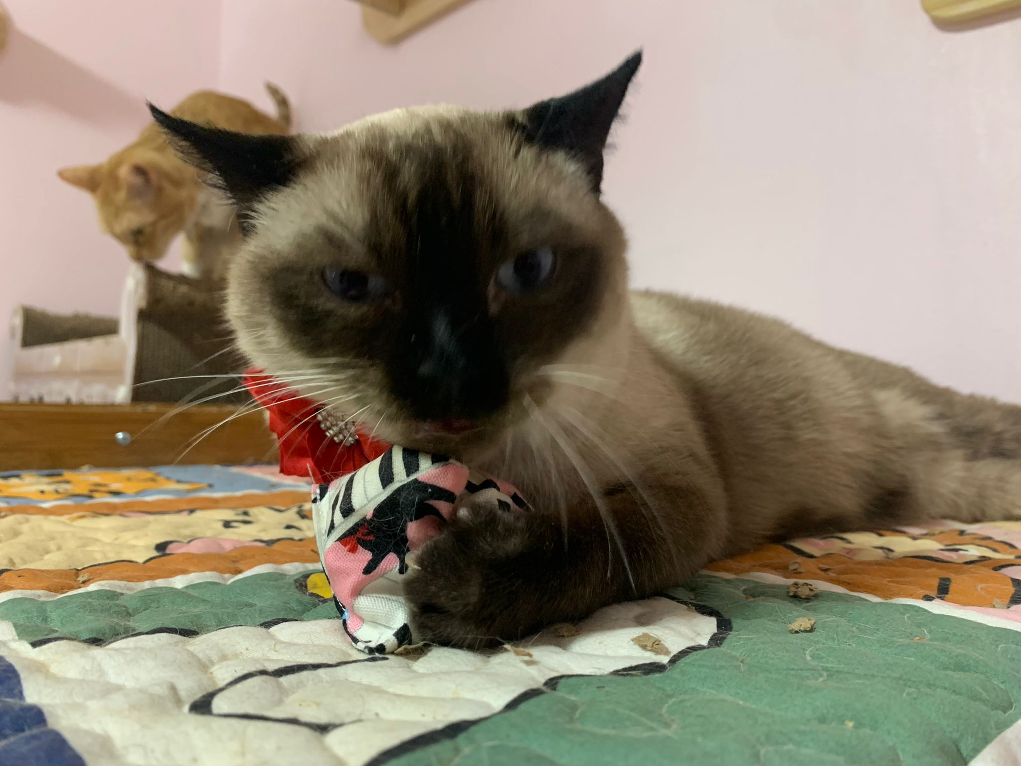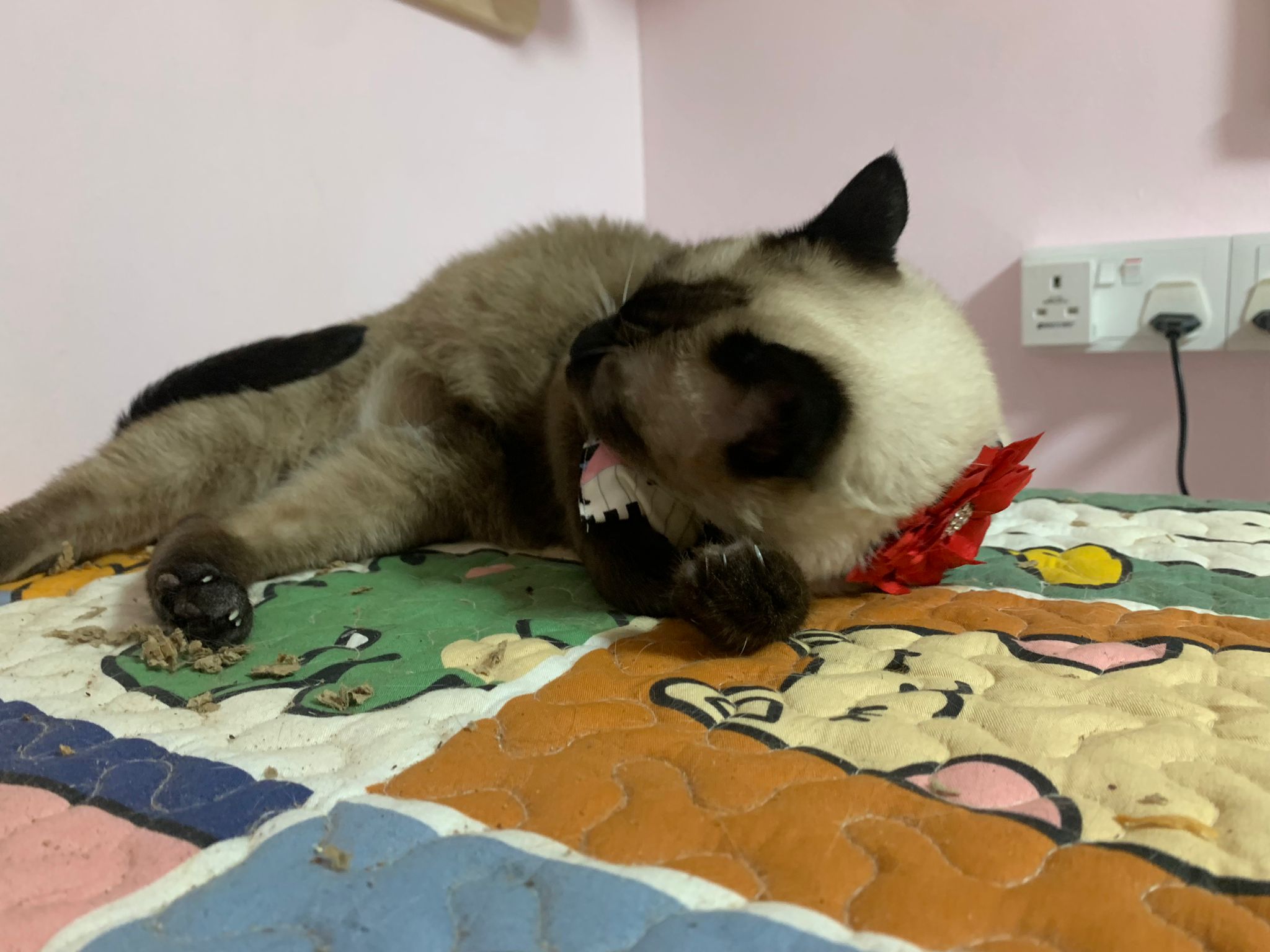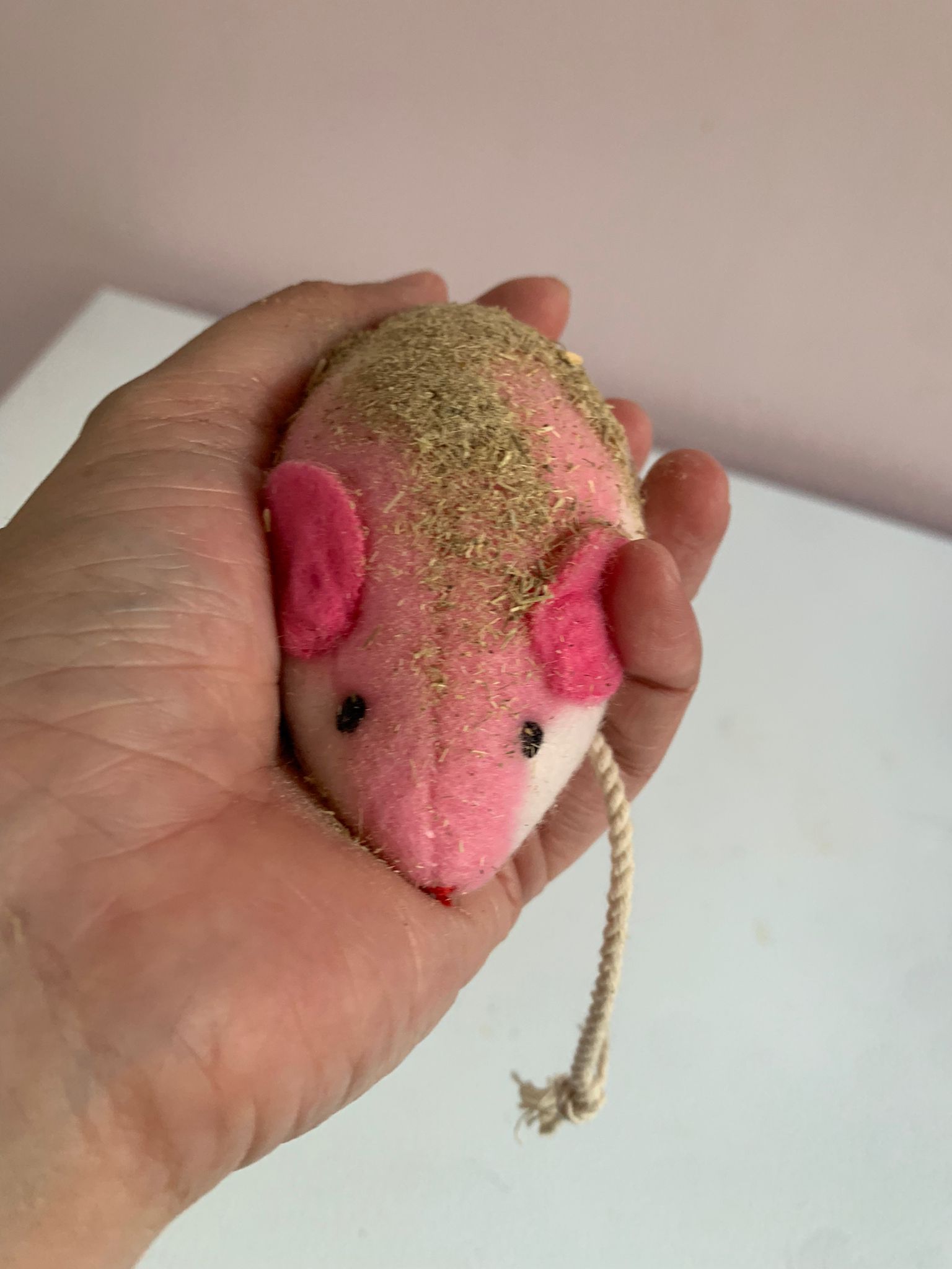 First give her a mettacat mouse w a pack of catnip. Ha smell not that strong mah. She play a while only then give junior n junior ah boy also aren’t that keen.