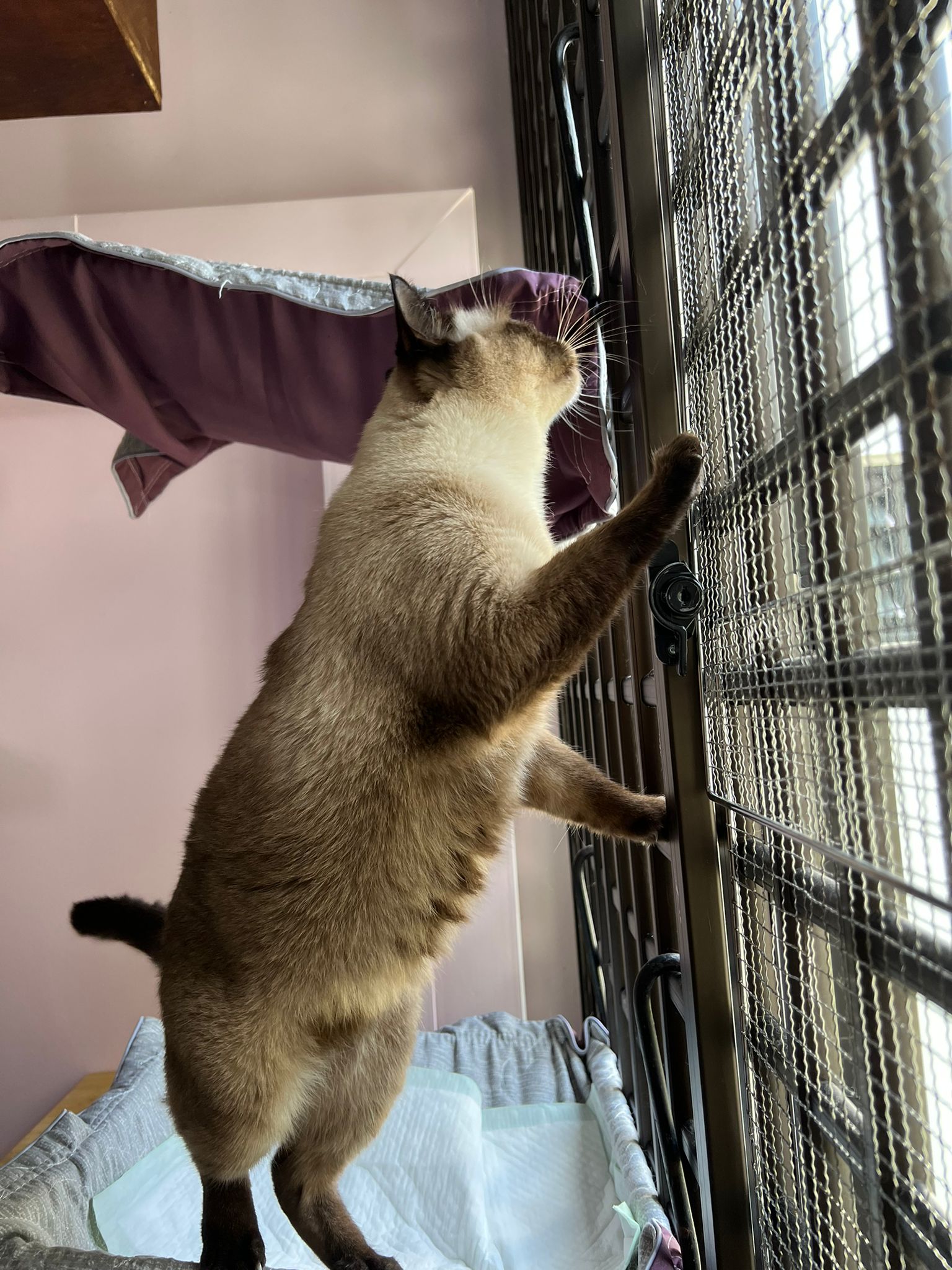• she is pacing up n down looking at window and up the cat tree and down n up n down n left and right looking at window – thinking she is planning escape?