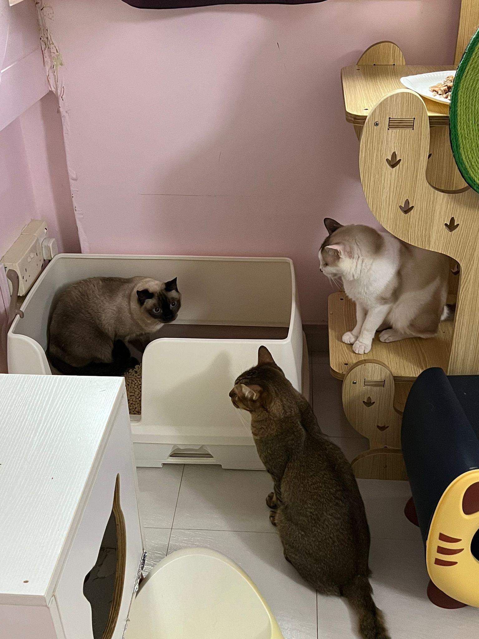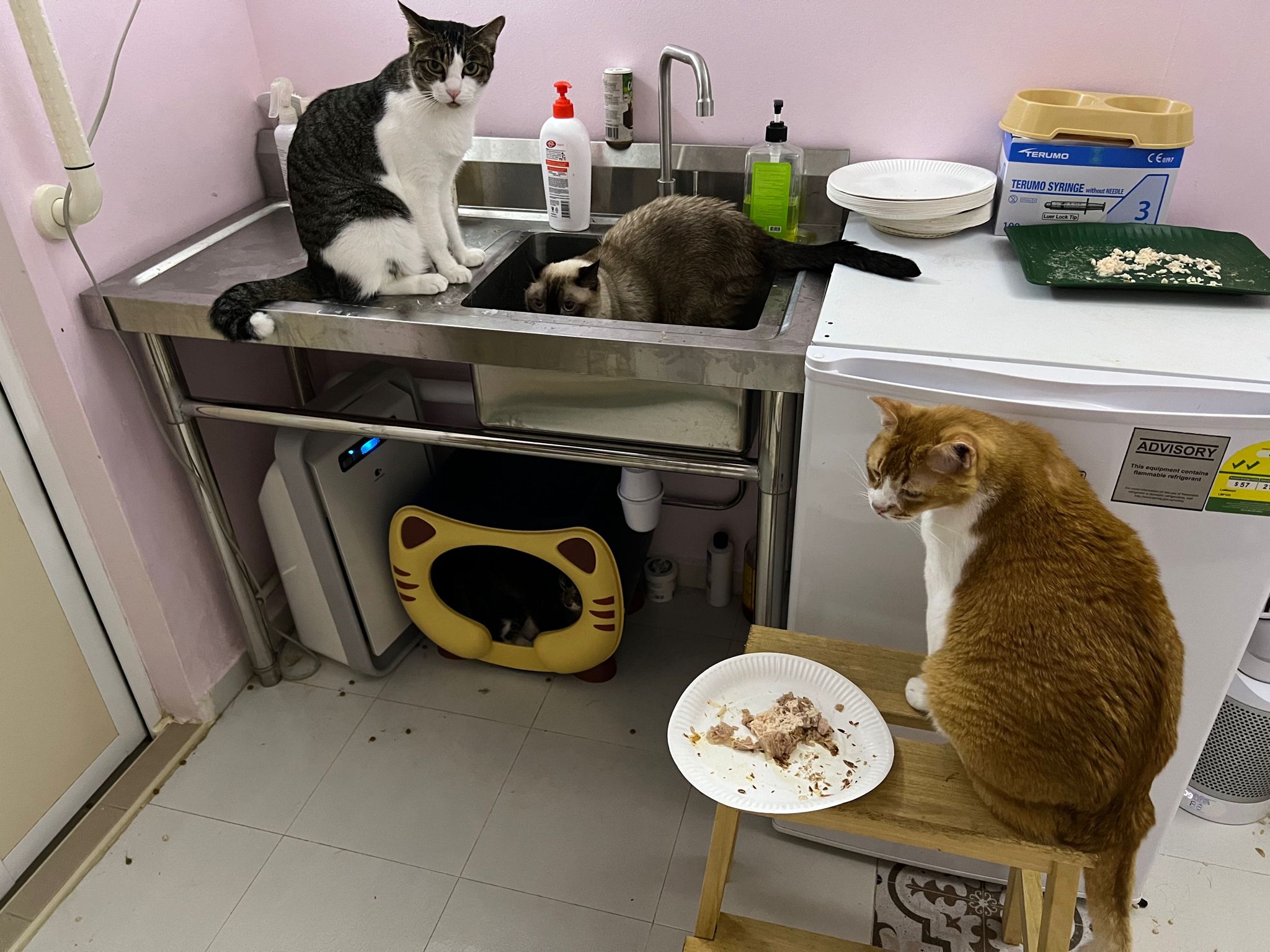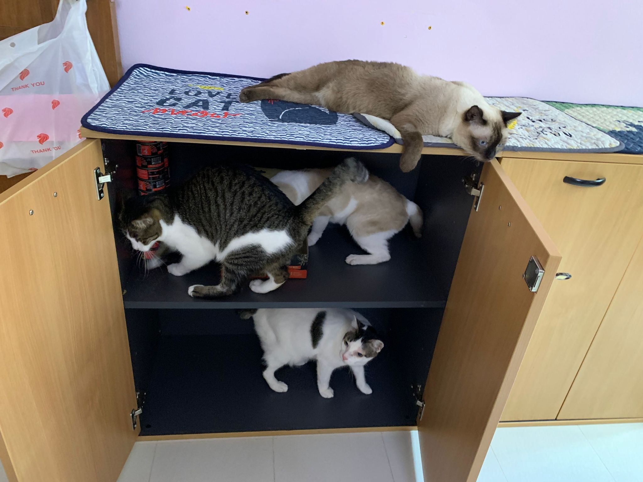 8am+-2.35pm: I’m a happy mao today. I stay in 猫房 for so long. Today all the cats staying in the food room for safety air reason. Cos new room need through and proper clean up first. Sayang her and she is fine.