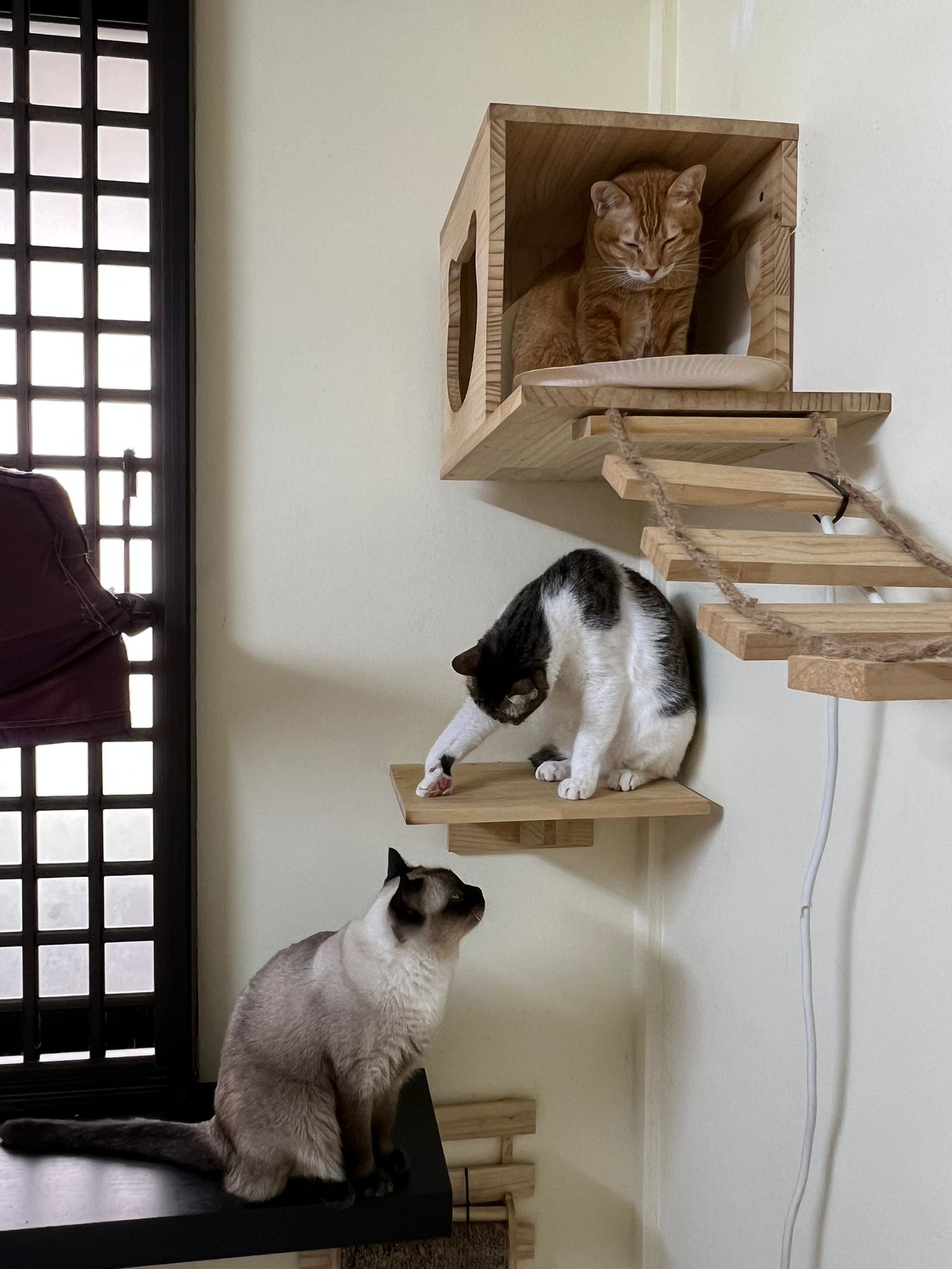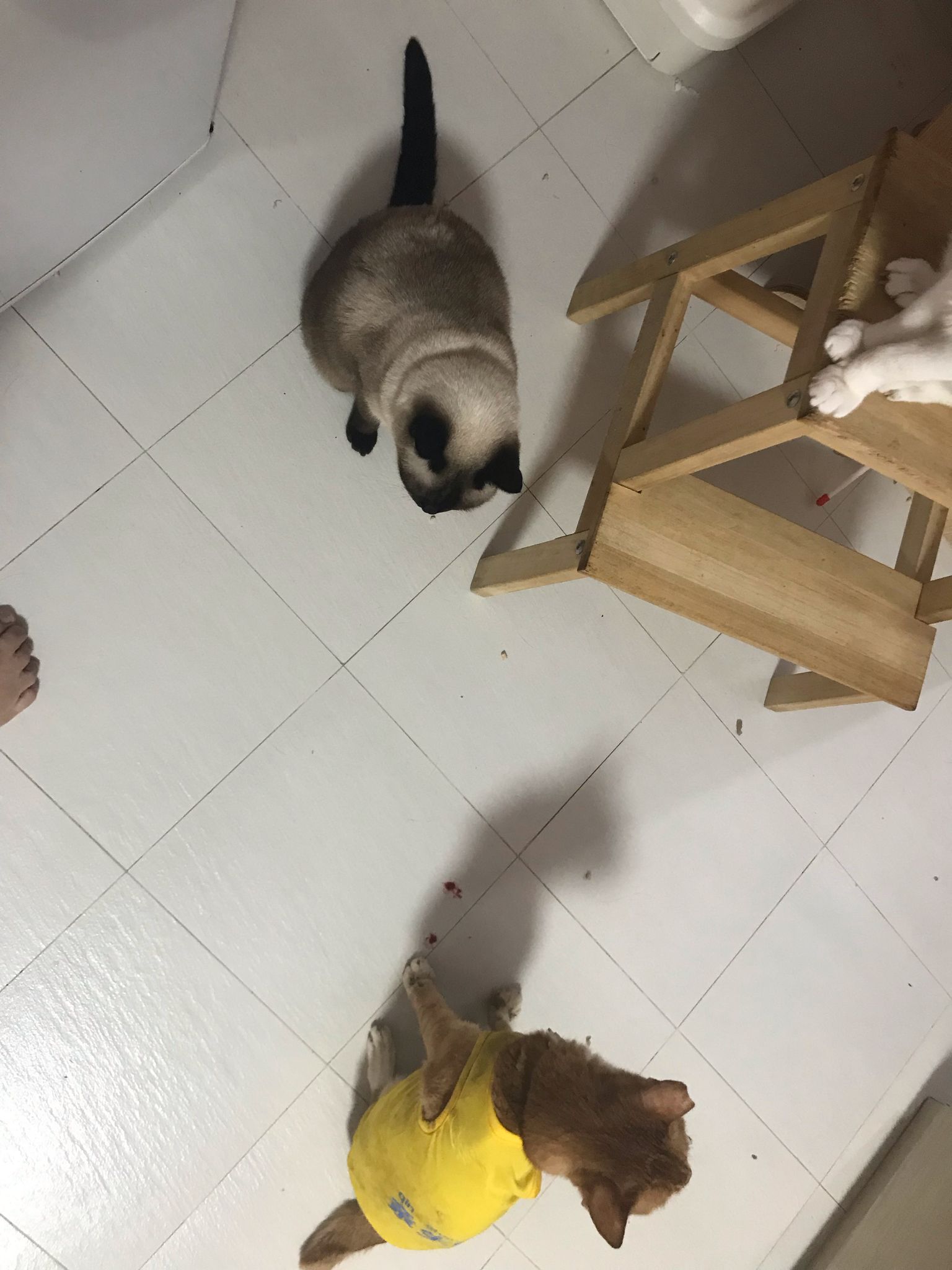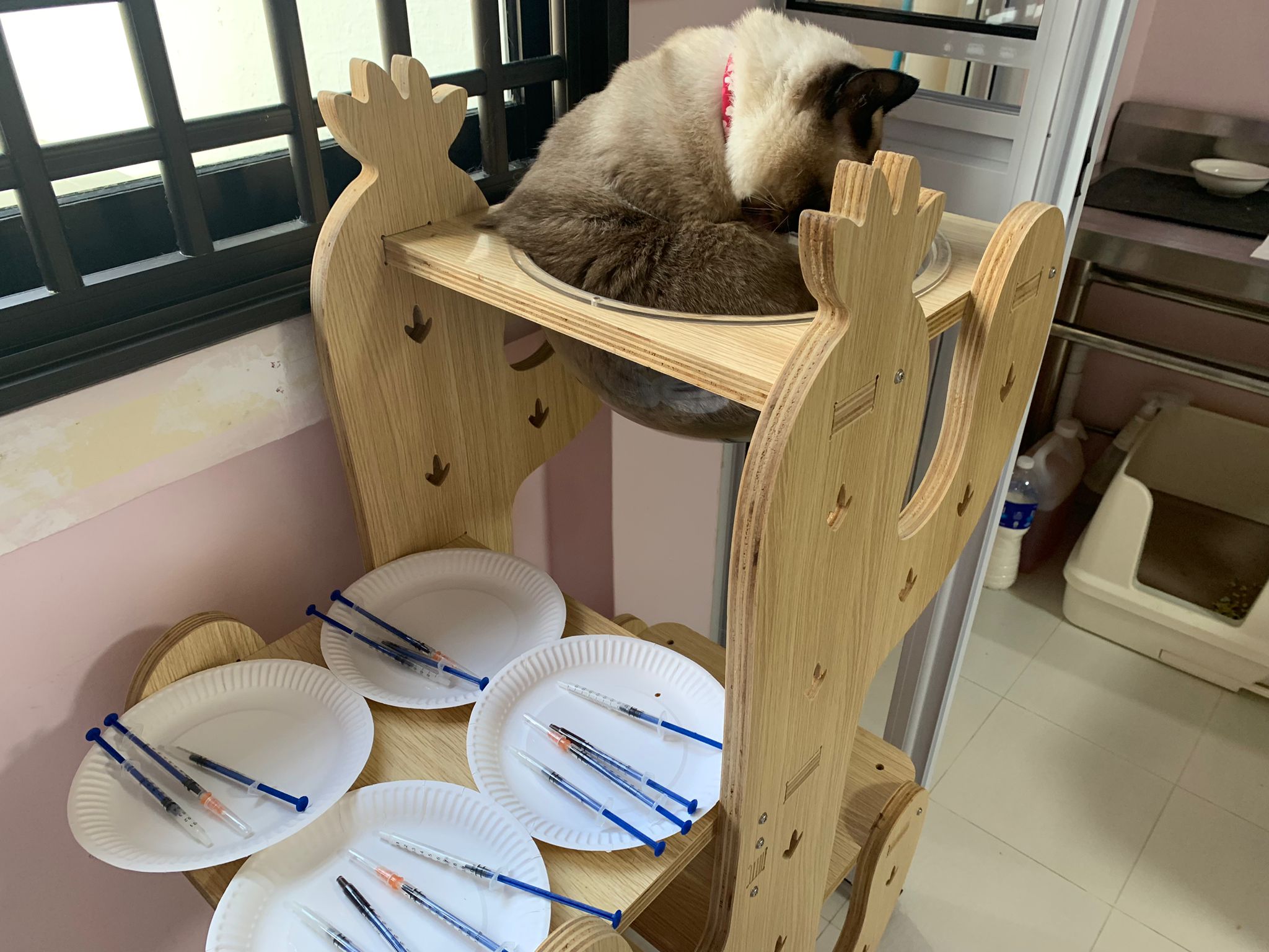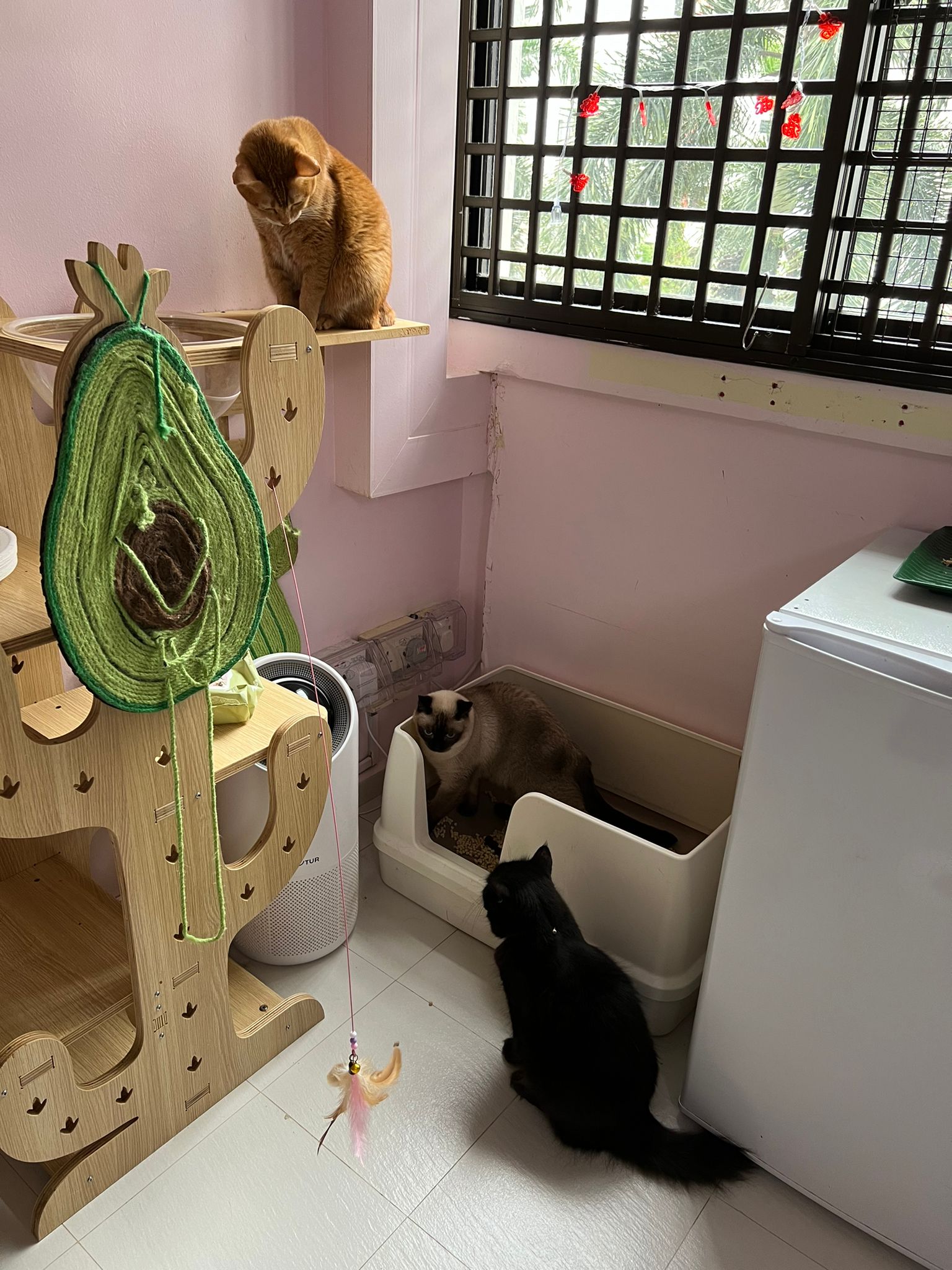 8am+-2.35pm: I’m a happy mao today. I stay in 猫房 for so long. Today all the cats staying in the food room for safety air reason. Cos new room need through and proper clean up first. Sayang her and she is fine.