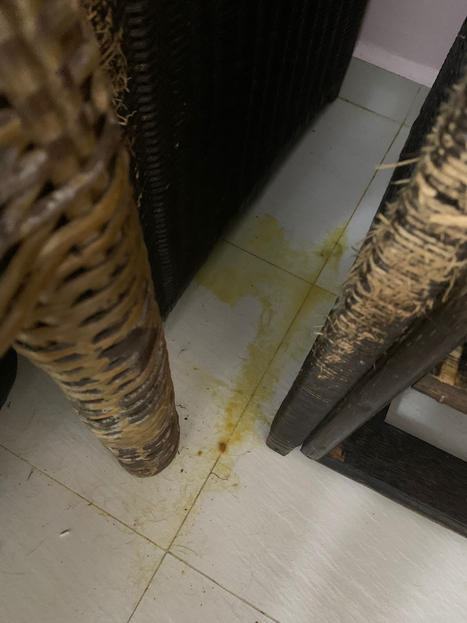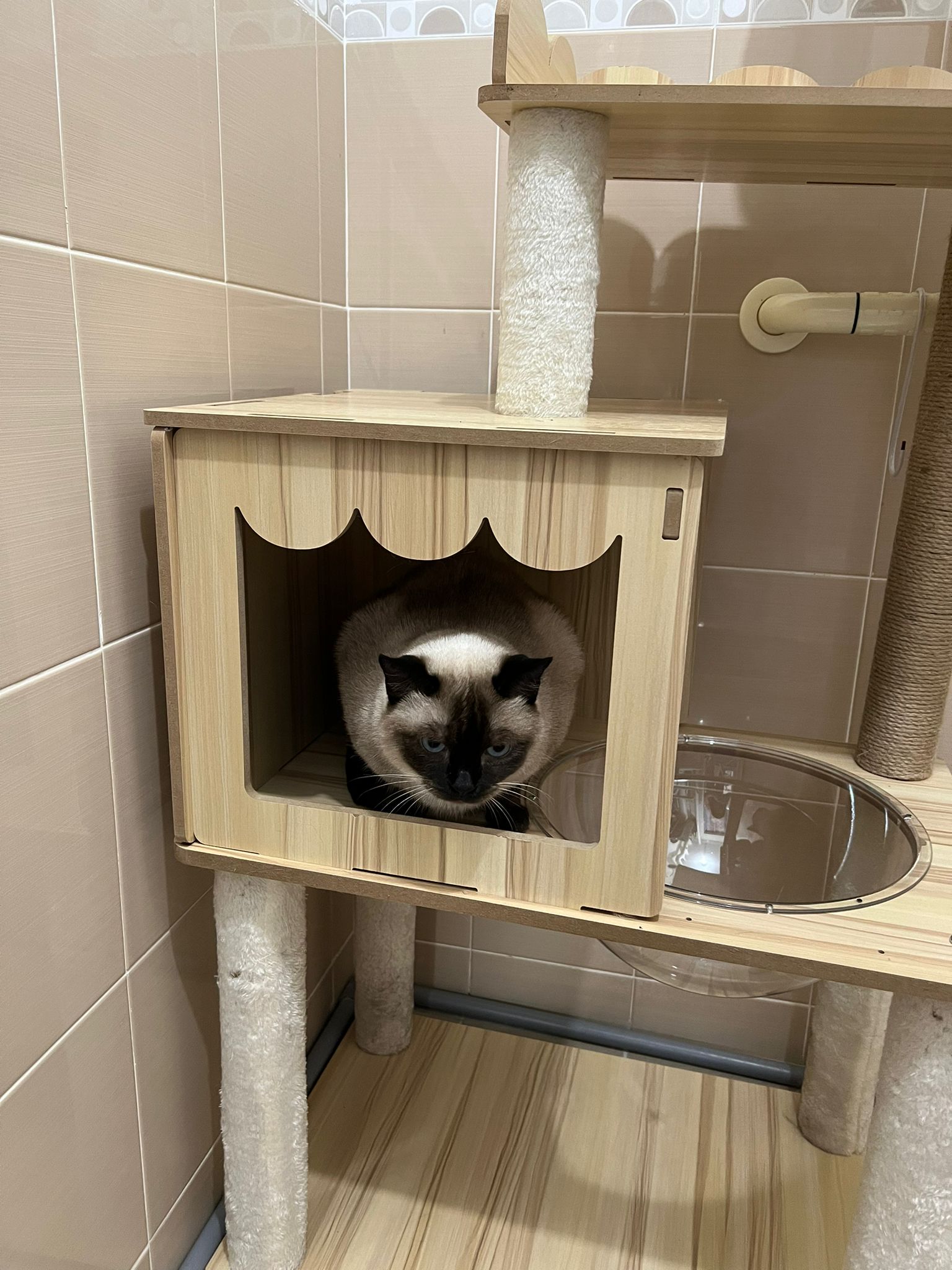 My expensive Hexagon wood cat house – no need to give pple le. Someone pee inside, like full of pee, I pour f10 o/d inside soak, later I mop clean