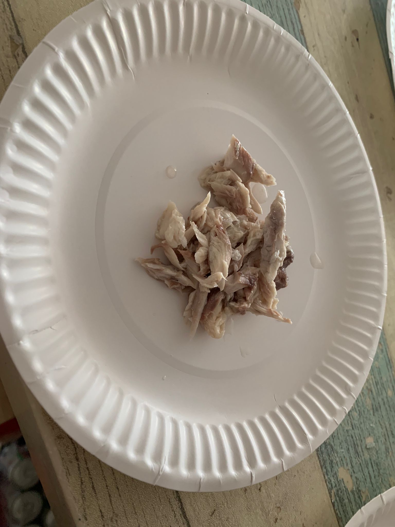 • night: serve her schesir chicken w ham and fc tuna w salmon, she like the schesir