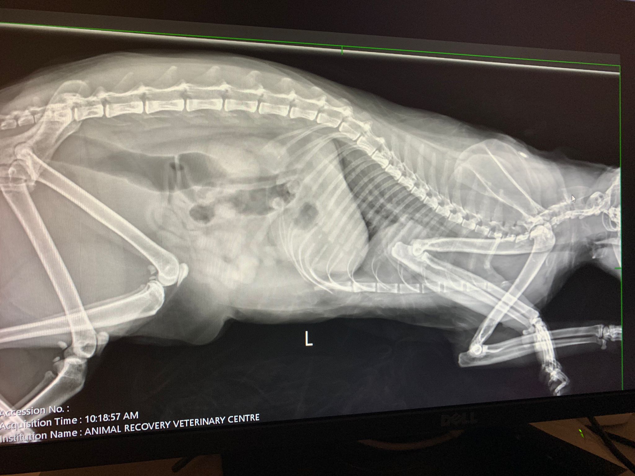 • still hissing but video show she kind of panting while hissing n yawning ? A little respiratory issue ? – I conclude as sigh of pain again