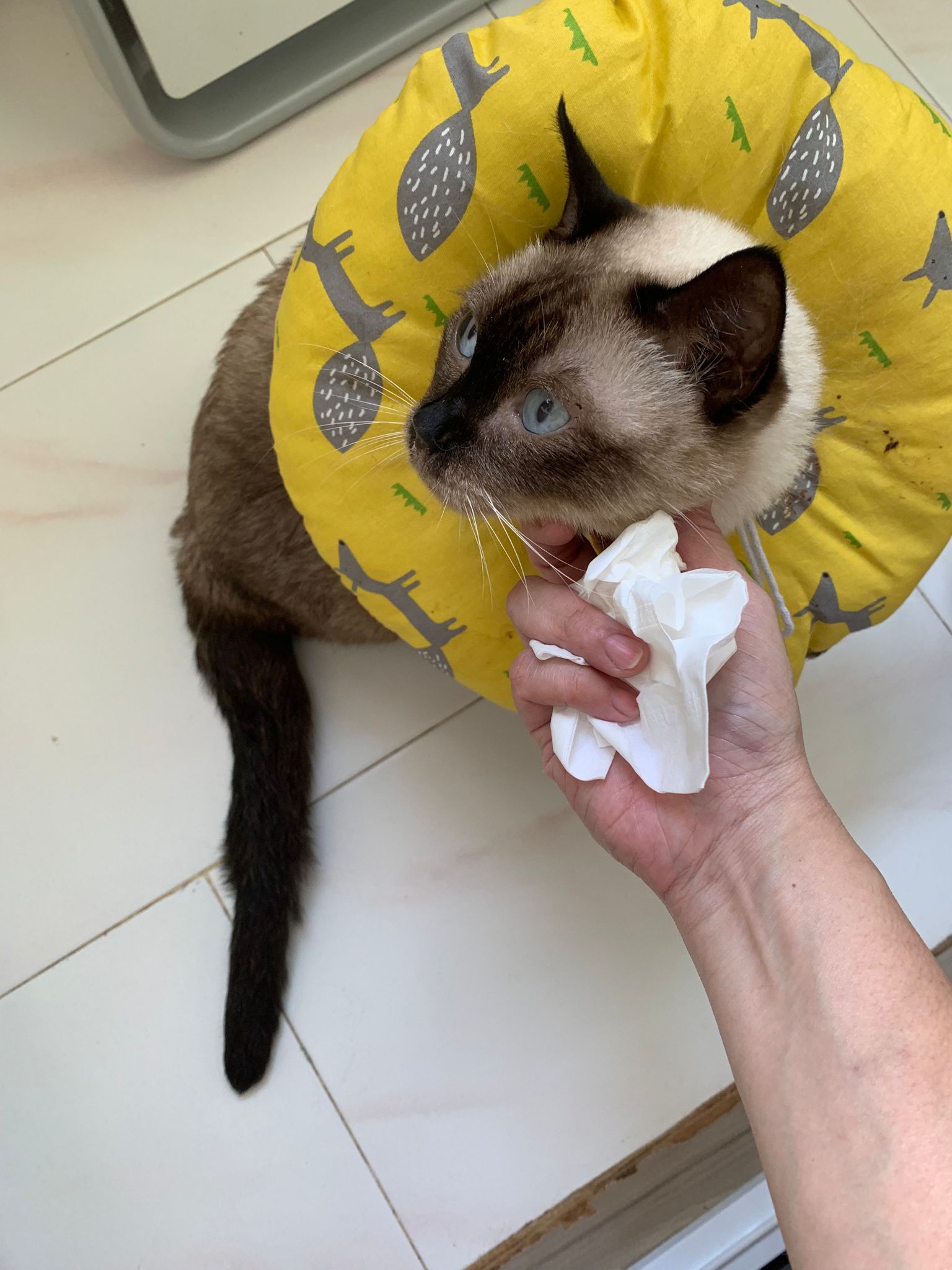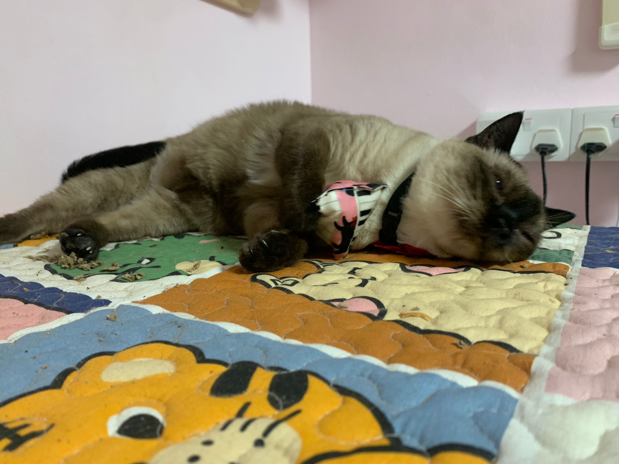 • still untouchable. I think is in pain leh. Tmr I’ll add gabapentin to her food n see how