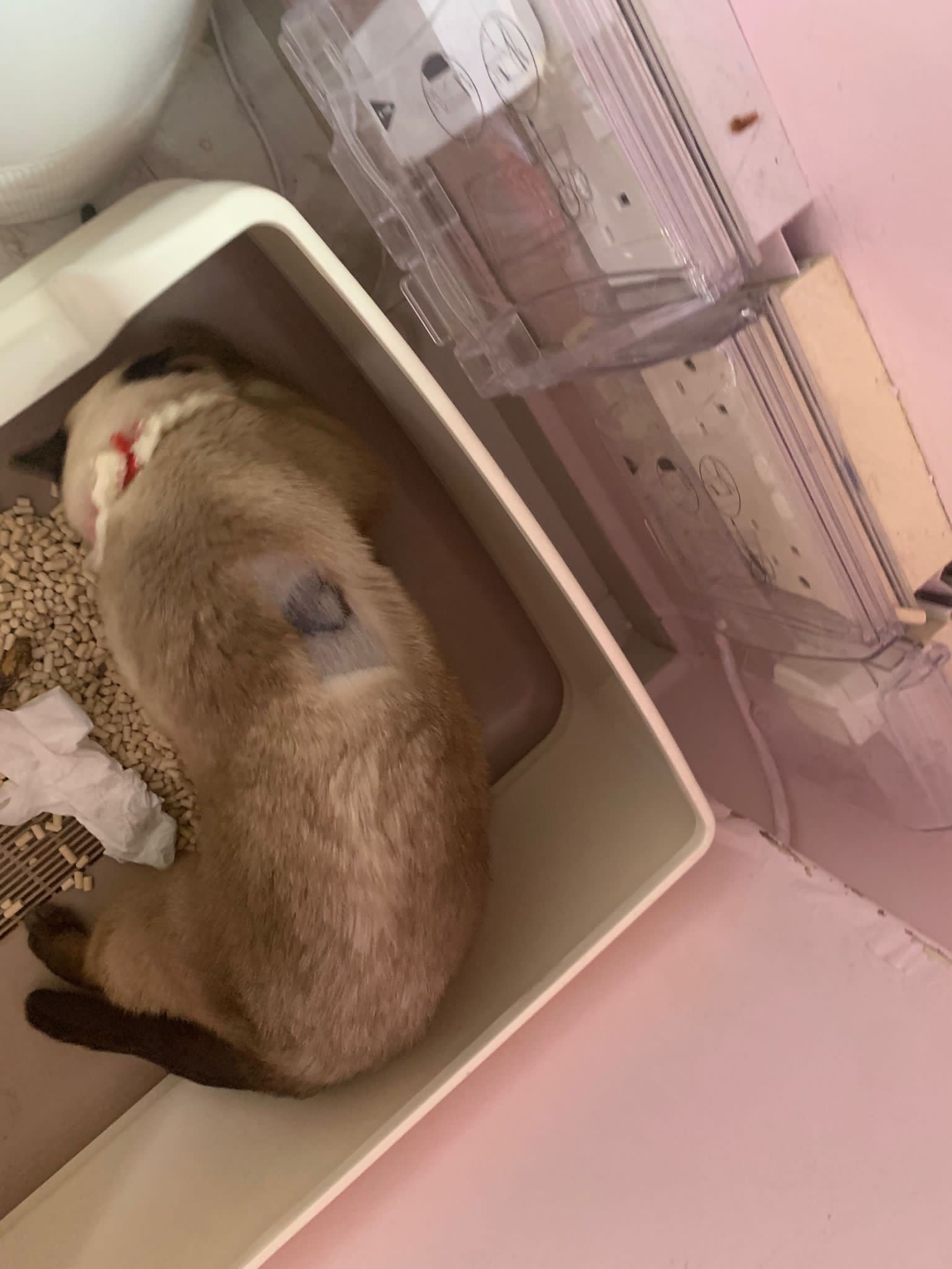 • still got the panting like symptom – checked spay w GA without LA, no painkiller given, even give her fur feather toy she is very fed up and angry and hissing and want to Attack and panting – all point to in pain. Have to give her stable gabapentin to let her overcome this pain phrase