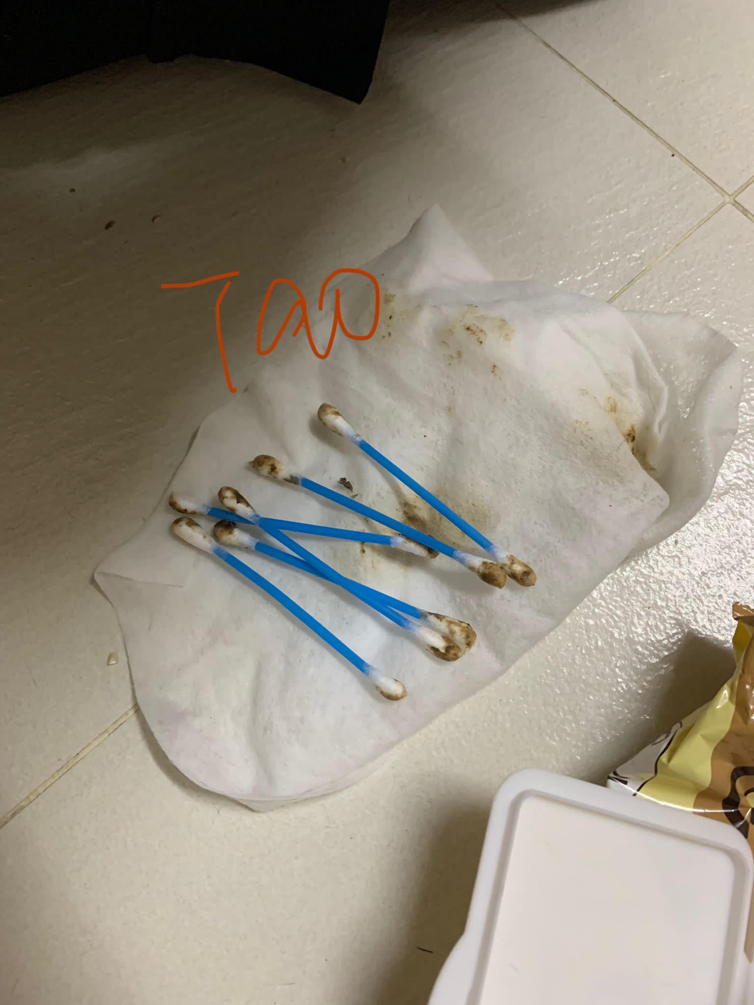Night; mmm;”Very sensitive. Chased brownie, so I scolded. Tao came to be teh. Lots of patting n cuddle.”