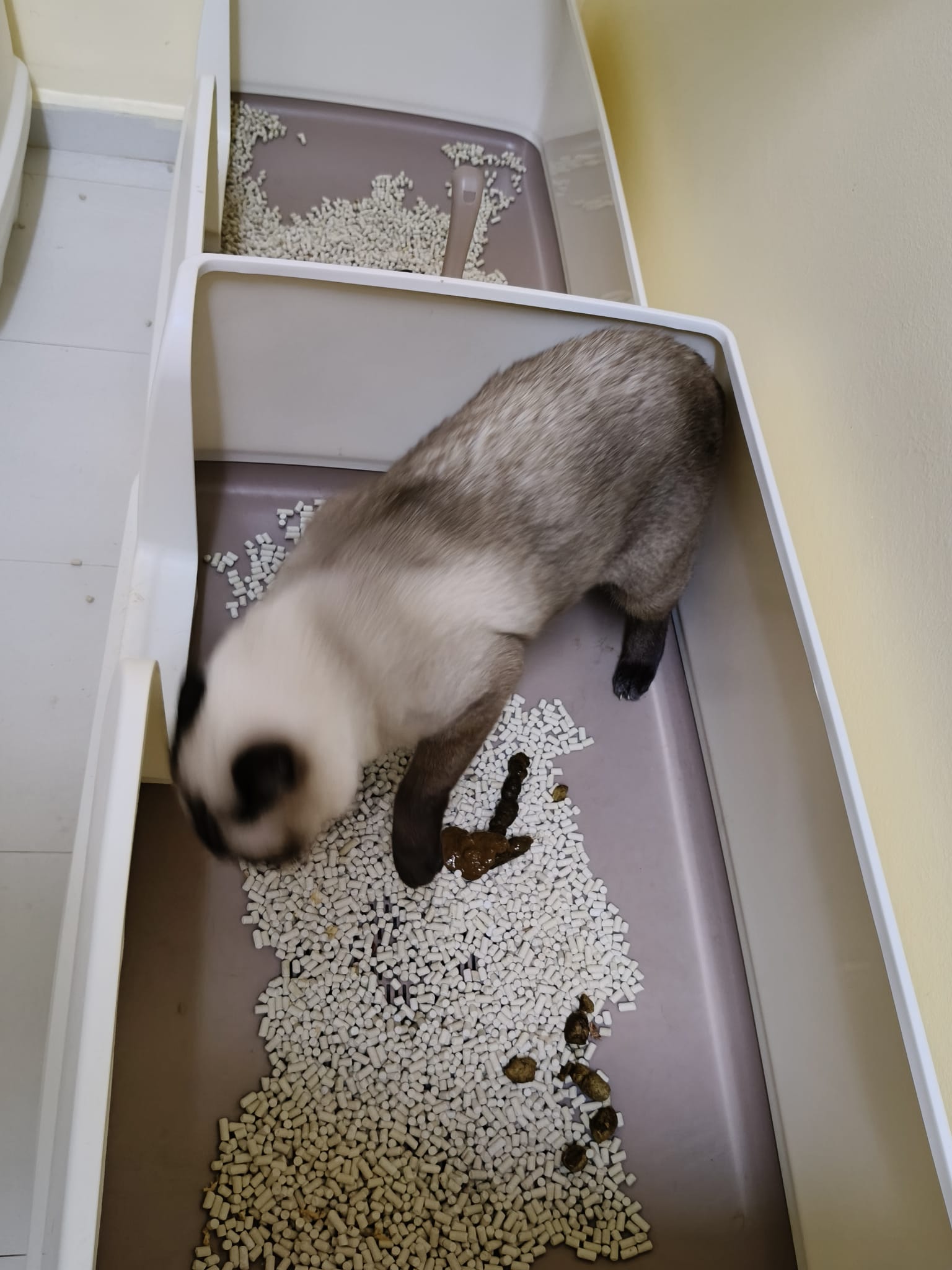 10am+: poo 3.75/10, making a lot of noise hitting the litterbin