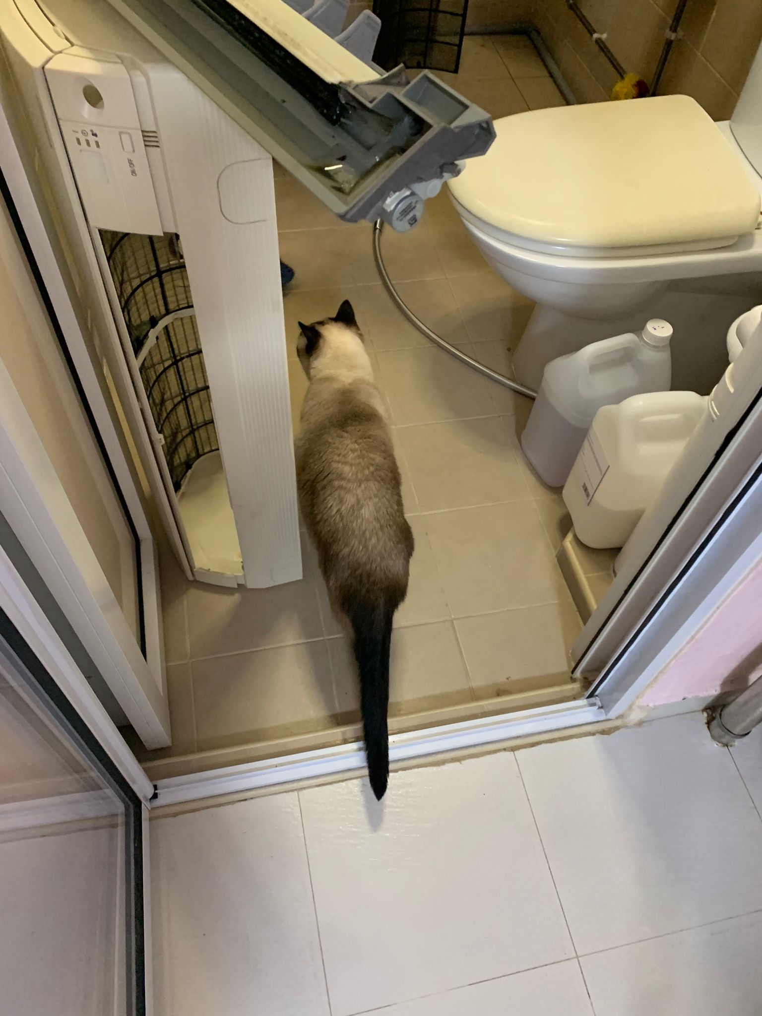 12pm+: aircon guy servicing and washing and she need to check out all the parts and check on the washing, I got to carry her out of bathroom twice
