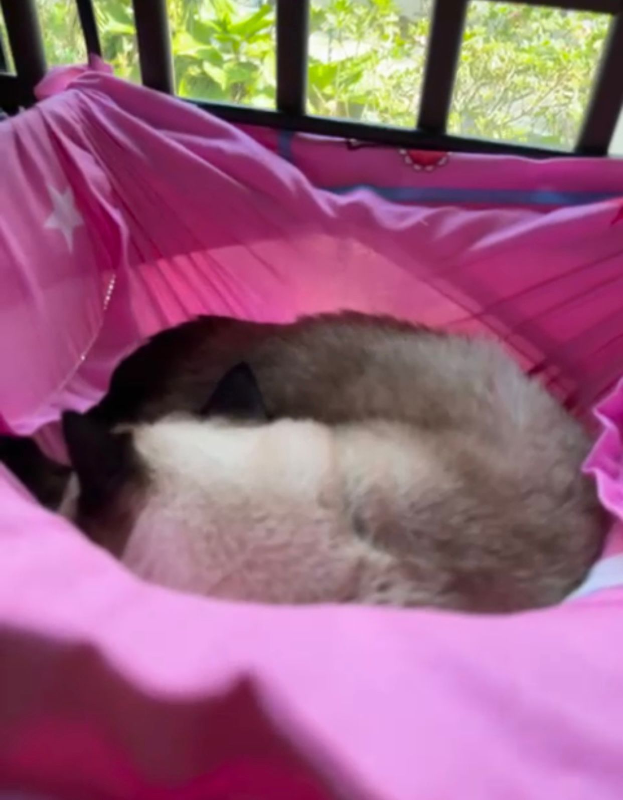 Morning: not sure is it too fat .. haha she sleep on hammock till the zip split