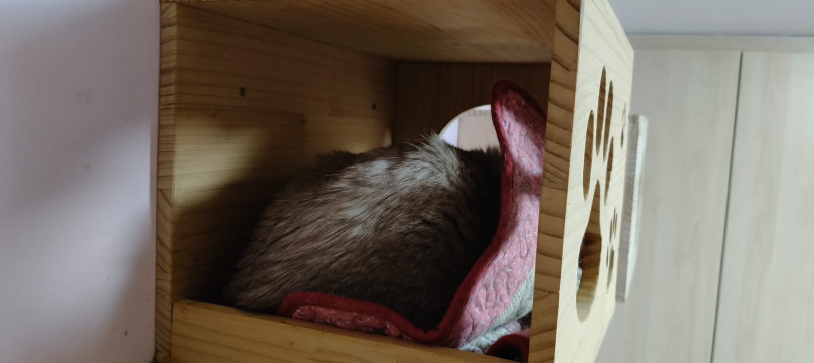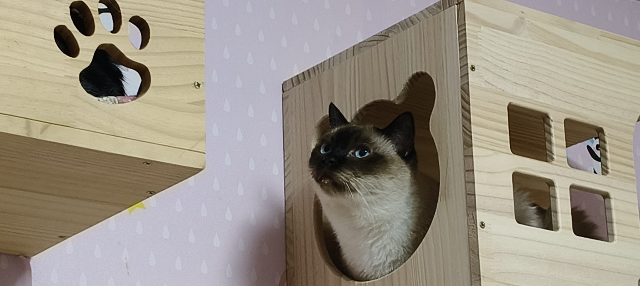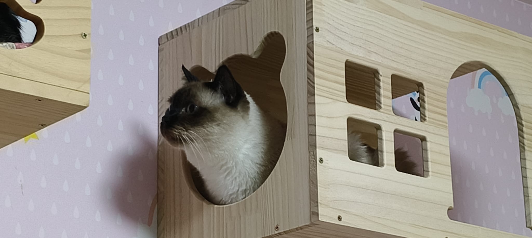 6pm+: I assemble a new cat tree for room 6, she wen in to kpo w junior