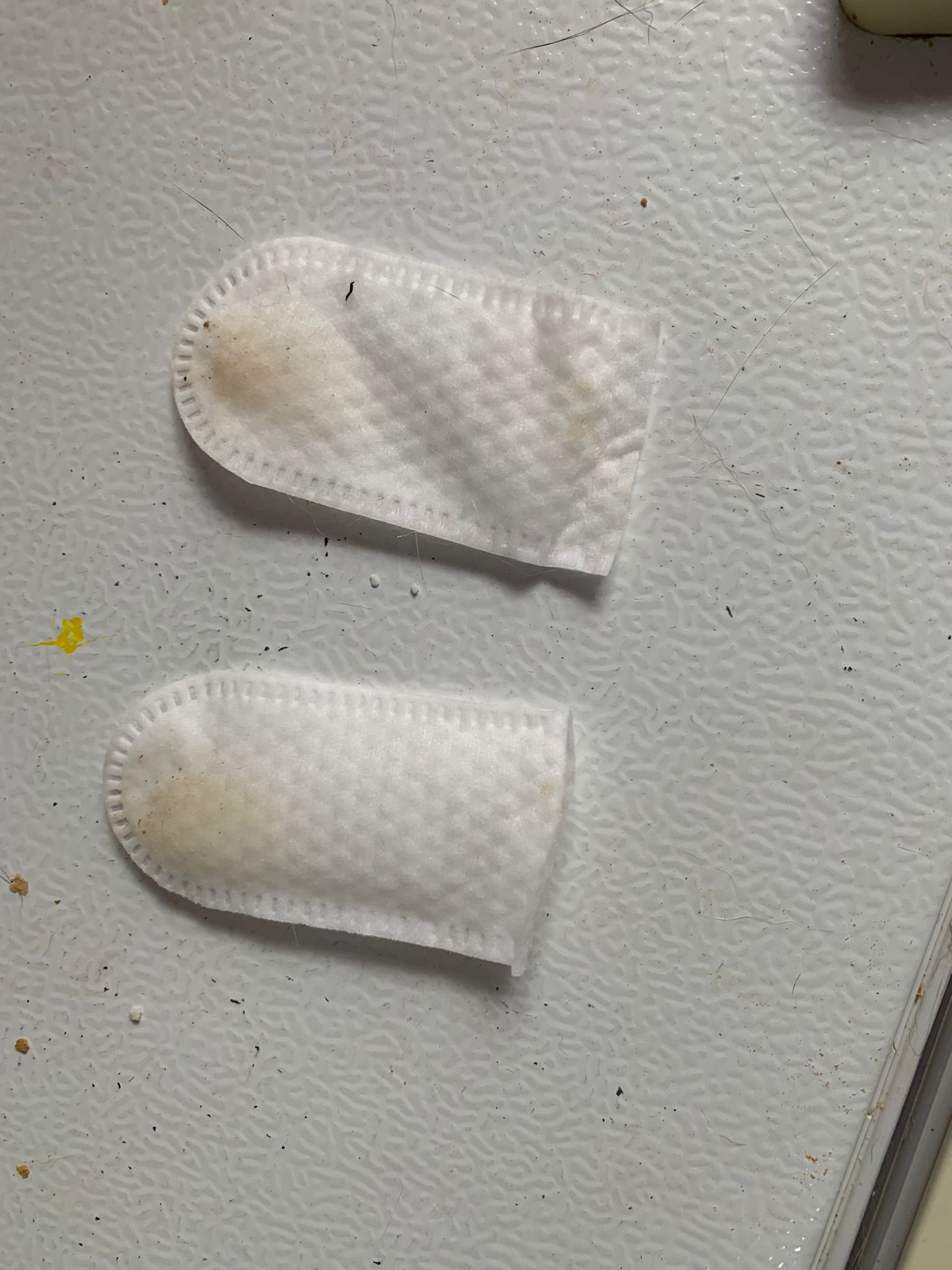 Morning; bought finger dental wipes to clean her teeth. The wipes didn’t show much dirt leh. Maybe I don’t dare to be too aggressive. Slowly, today first time. Confirm complain la. Next time I try to do without holding her see can reach inner gum n teeth or not