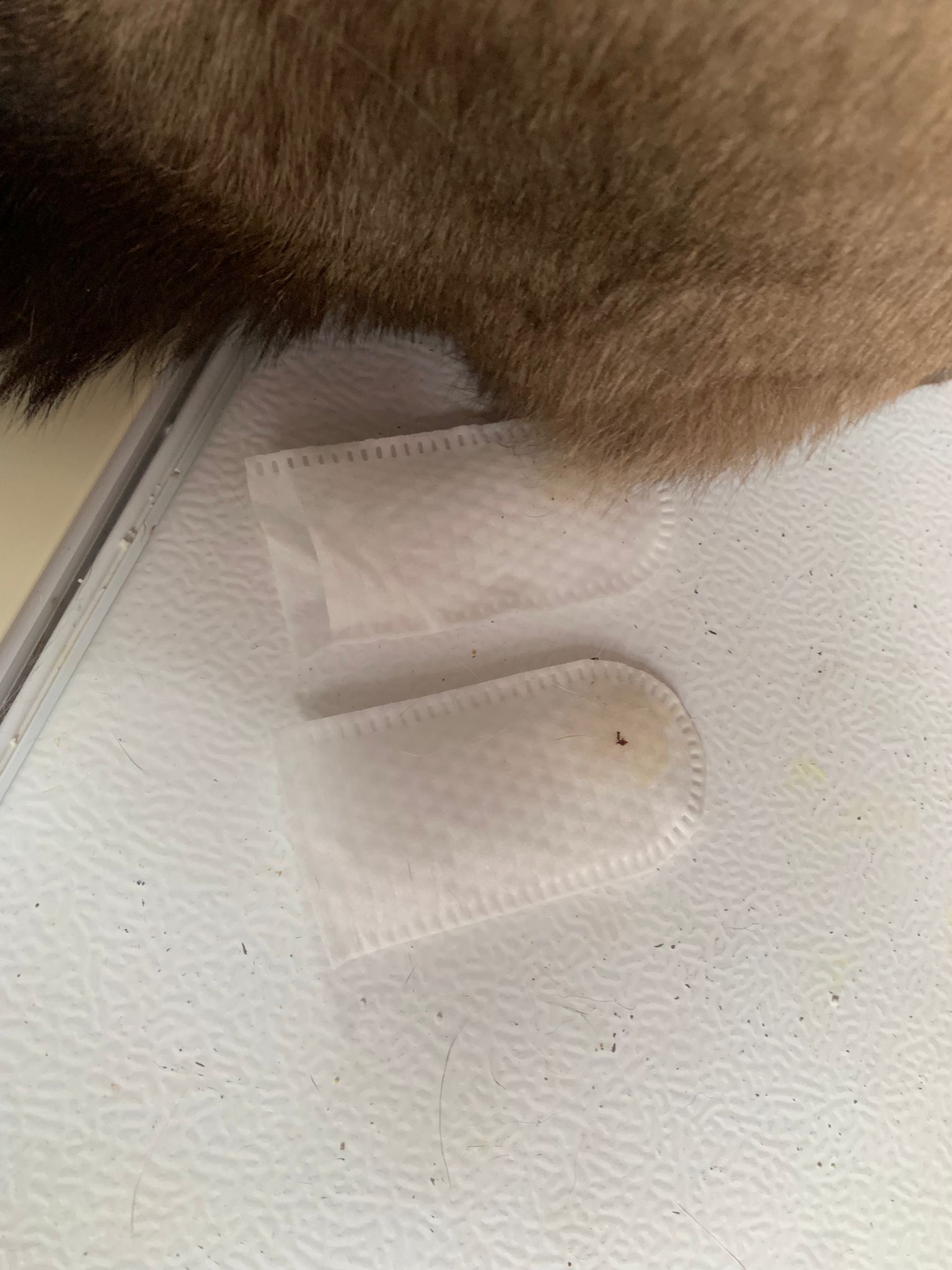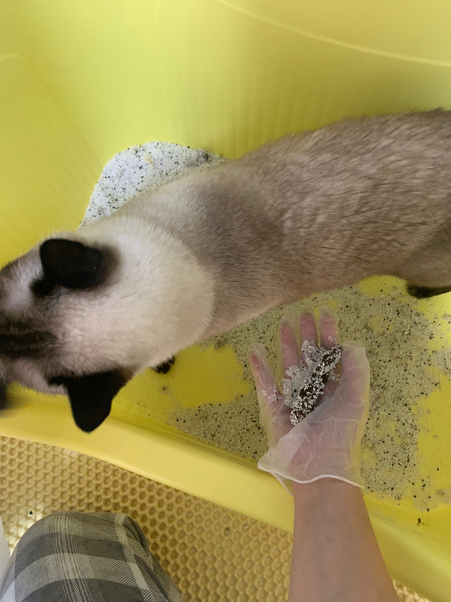 9pm+:’mmm:”Tao pee” – on floor again, I’m thinking should I put a bin there but this room so far smell ok, without a bin. Everyone go to tv room to do biz. Frosty pearls far too ex. See how first. Tao like the cassava litter.