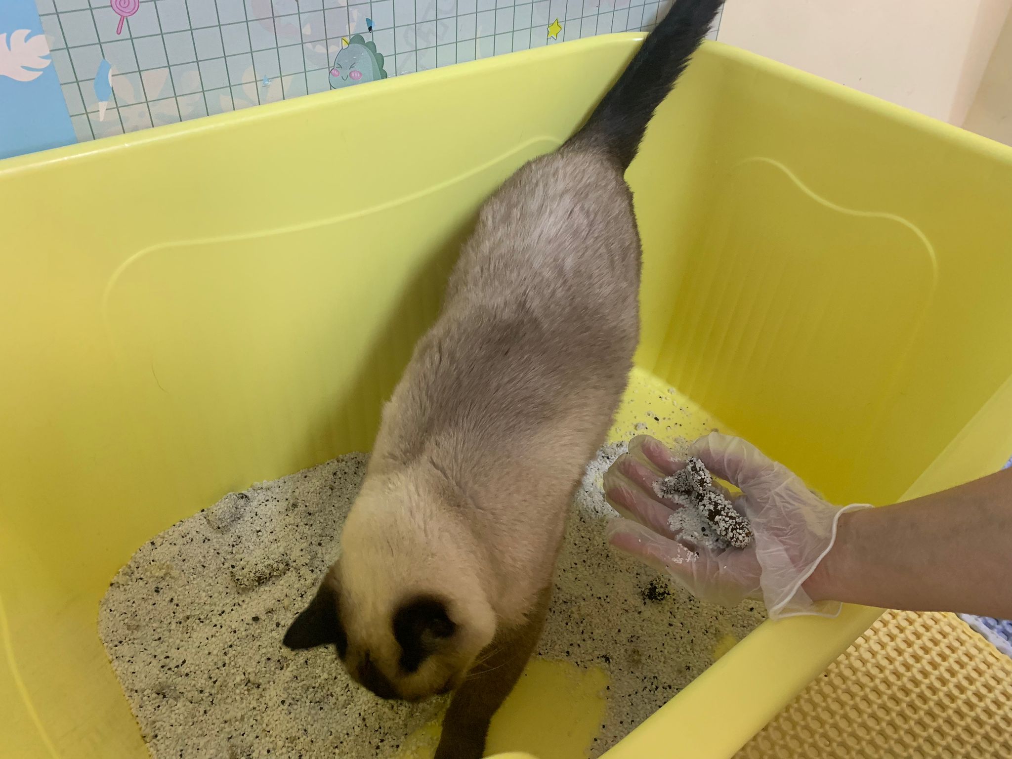 11am+: I feel that maybe she has constipation? Saw her in bin and I only found a litttle little little bit of 0.5/10 poo. Otherwise she is fine, still come block my leg want me sayang her