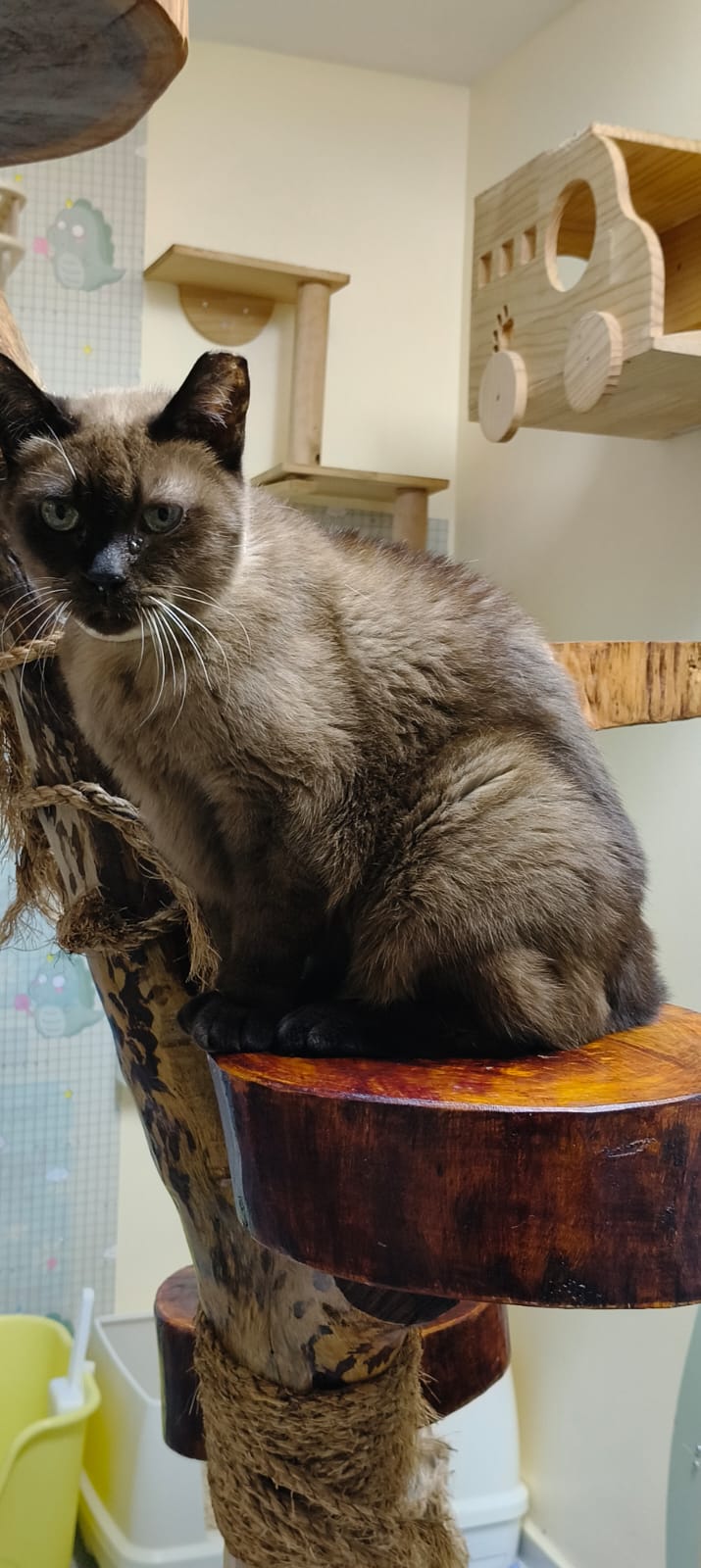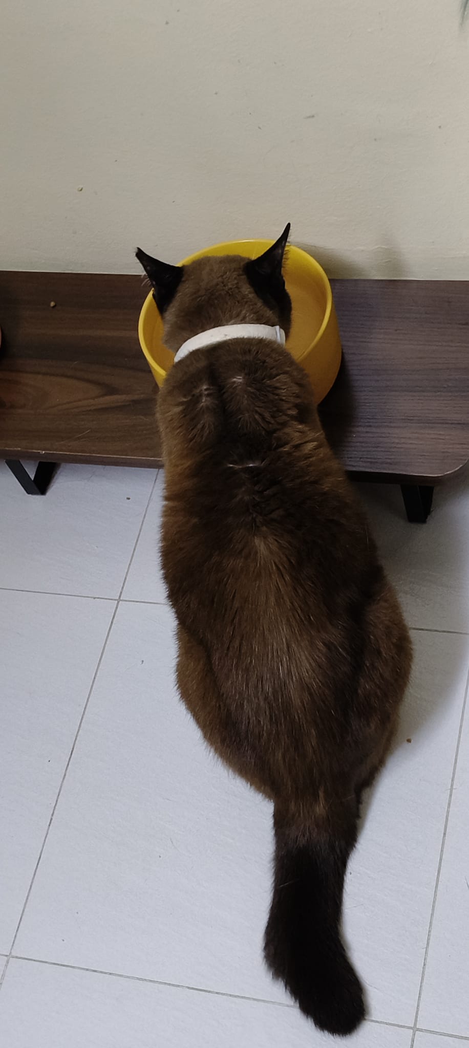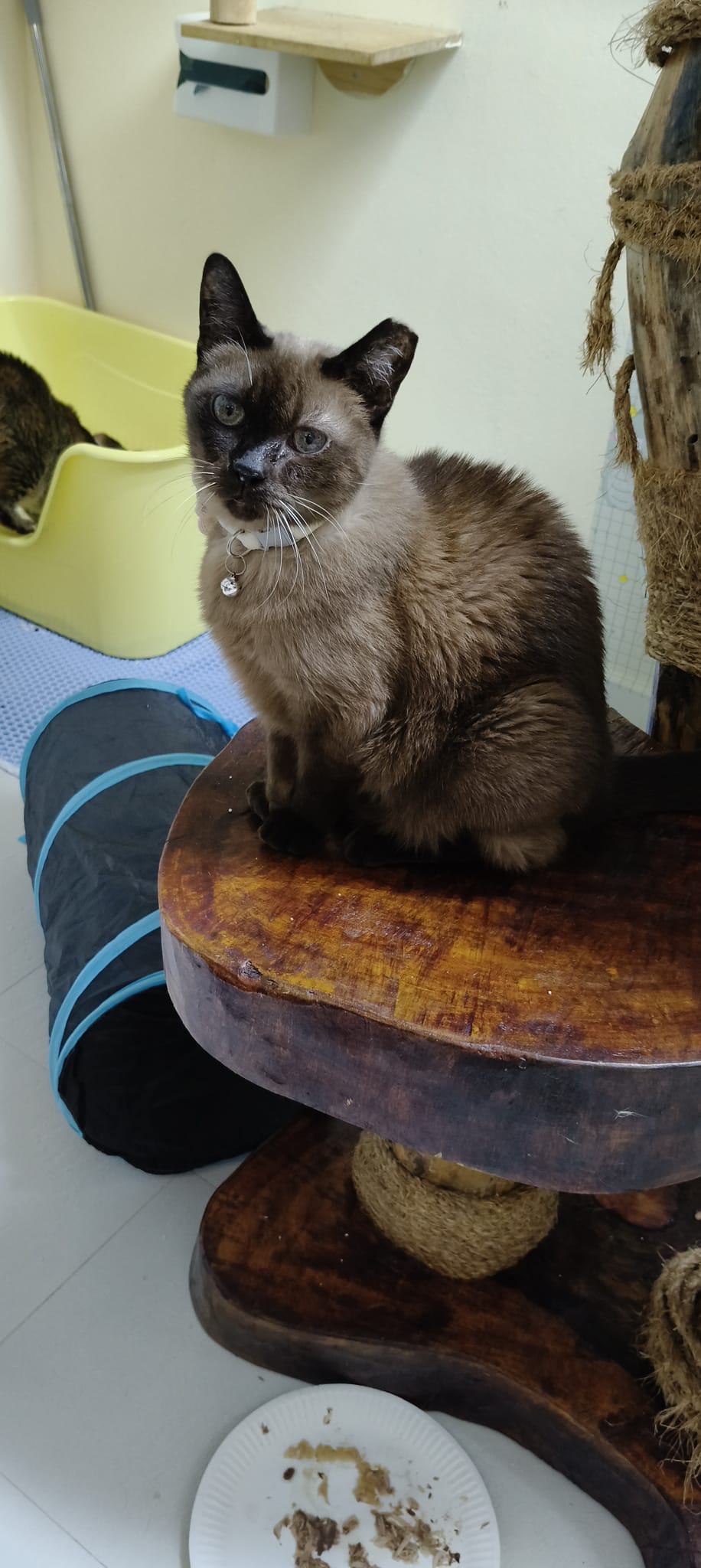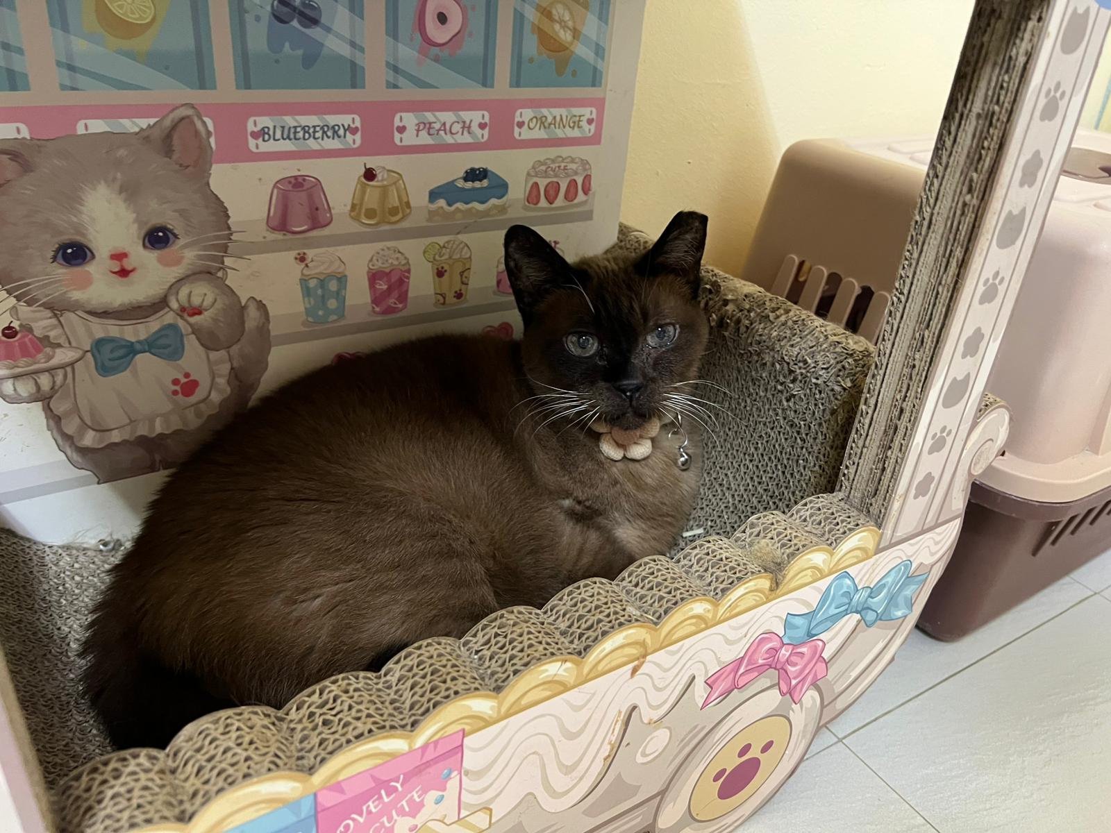 A old girl in my old hood. One day, I was told the town council to be … lucky she is smart and agile to jump to the rooftop to escape capture. I informed teddy and somehow she understand and thatâs it, she came to join me in ç«æż family. Super cute old girl, no more teeth.