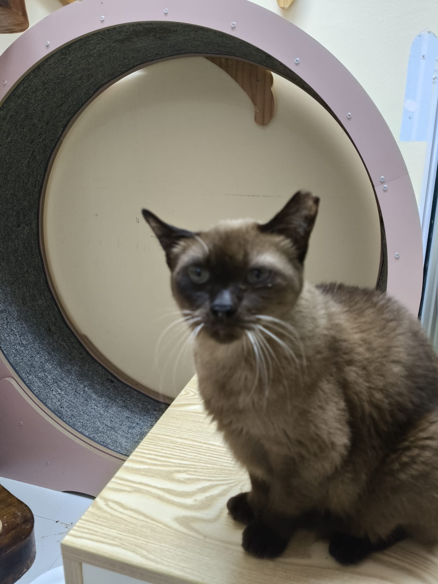 A old girl in my old hood. One day, I was told the town council to be … lucky she is smart and agile to jump to the rooftop to escape capture. I informed teddy and somehow she understand and that’s it, she came to join me in 猫房 family. Super cute old girl, no more teeth.