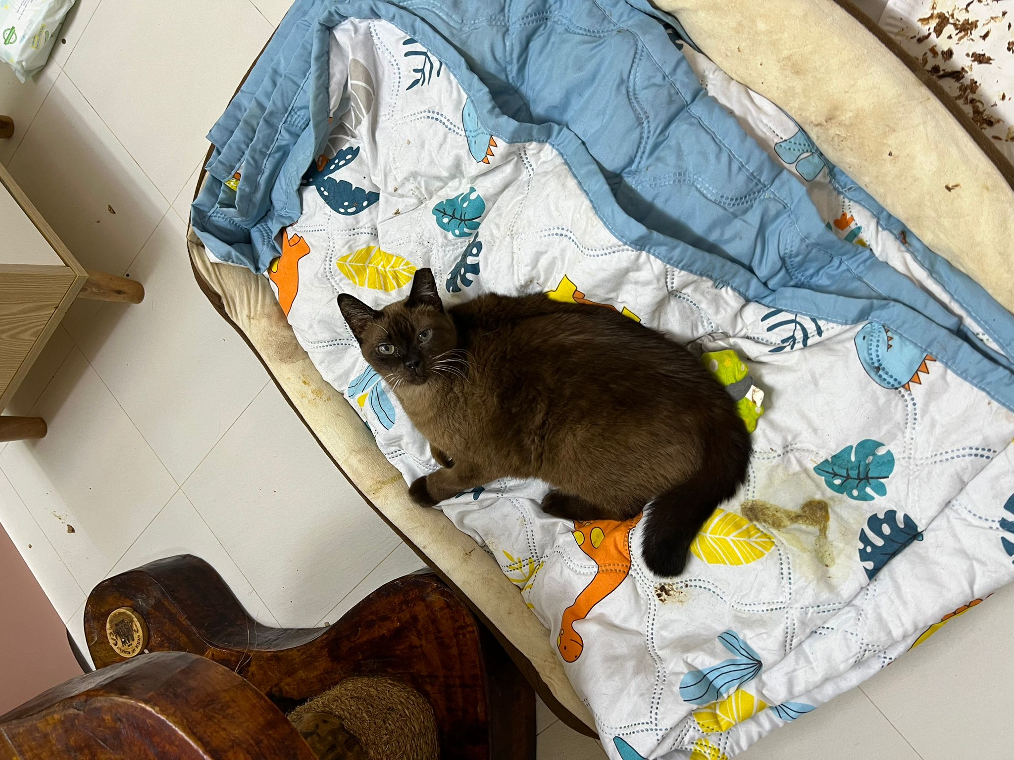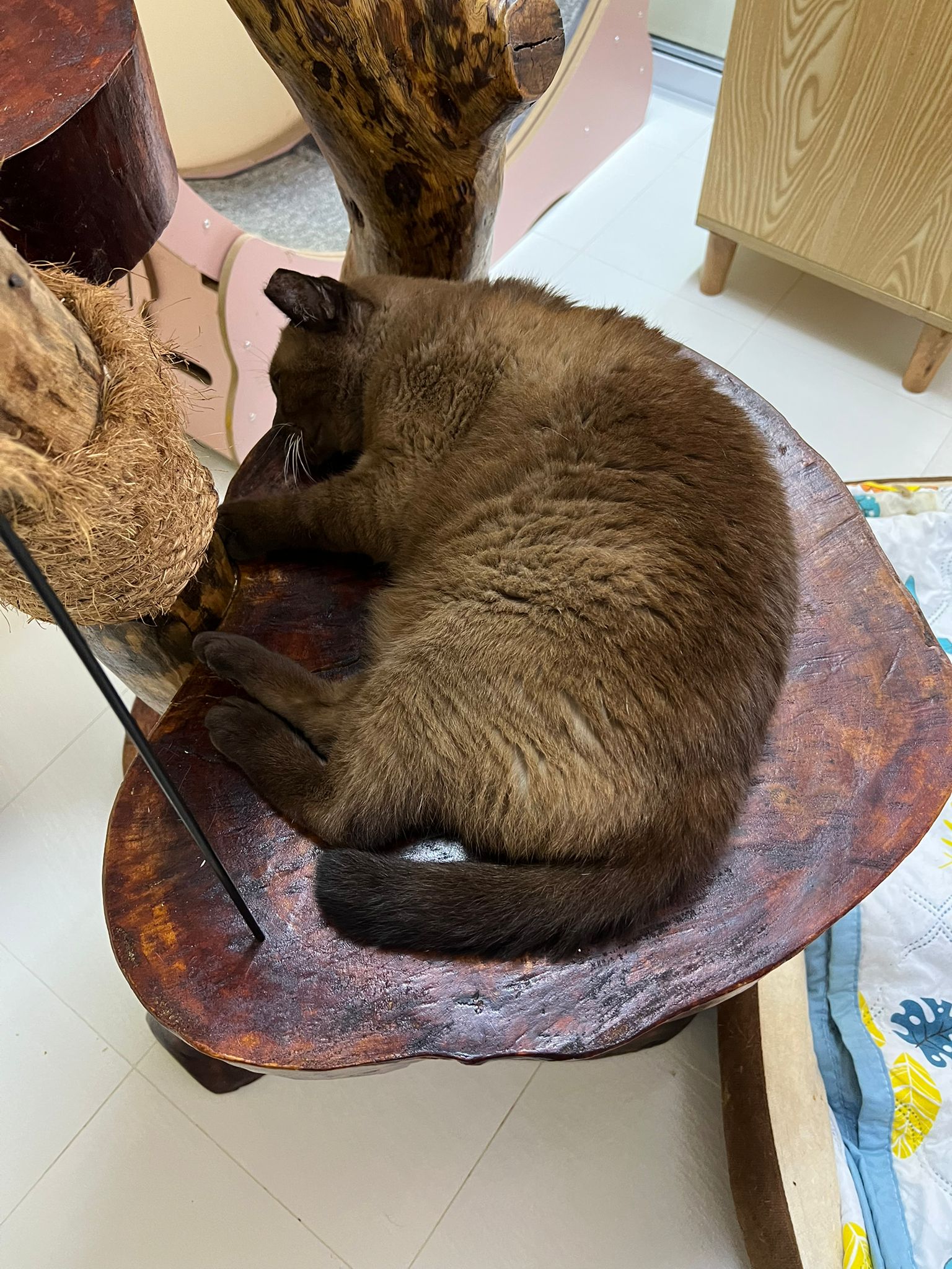 Morning: quarantined tgt w Princess sweetheart, char, rena and mama Mimi in new room for the installation of aircon, cos she is always in the cat tree. Throughout the whole morning I’m there, she didn’t come out, also didn’t see her eat.