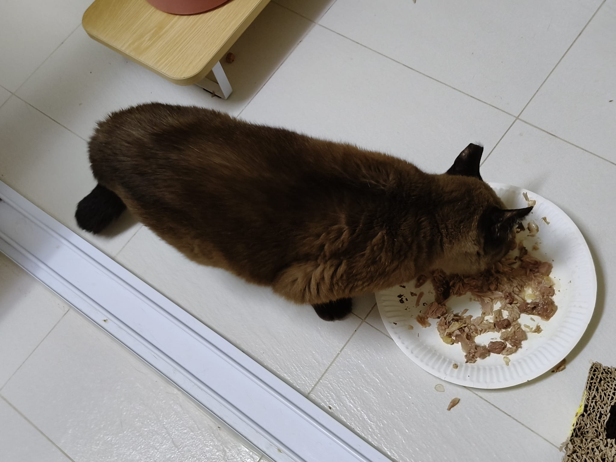 Morning: go back sayang her n told him sorry forgot to celebrate yesterday. She blur blur really like a old ah Ma – celebrates 8th bday in 猫房… remind her now she agree to come w me cos she also don’t want to go w the bangla … eye got little discharge. Eat a bit of ciao treats then she stop eating, ha too big plate, I pick up everything a bit for her and she happily eat it.