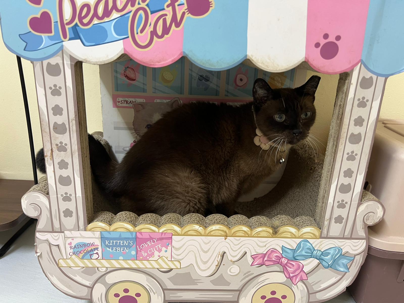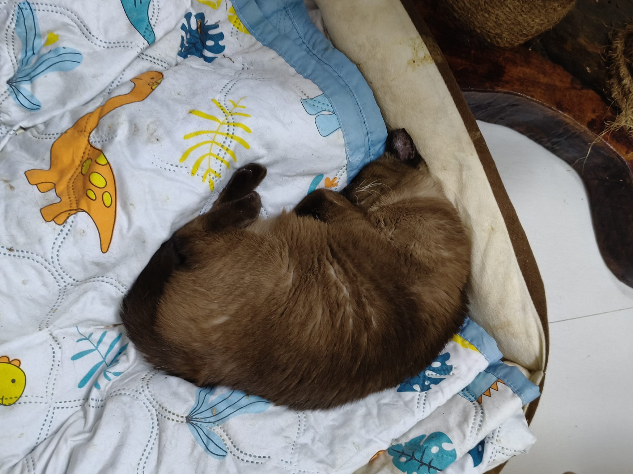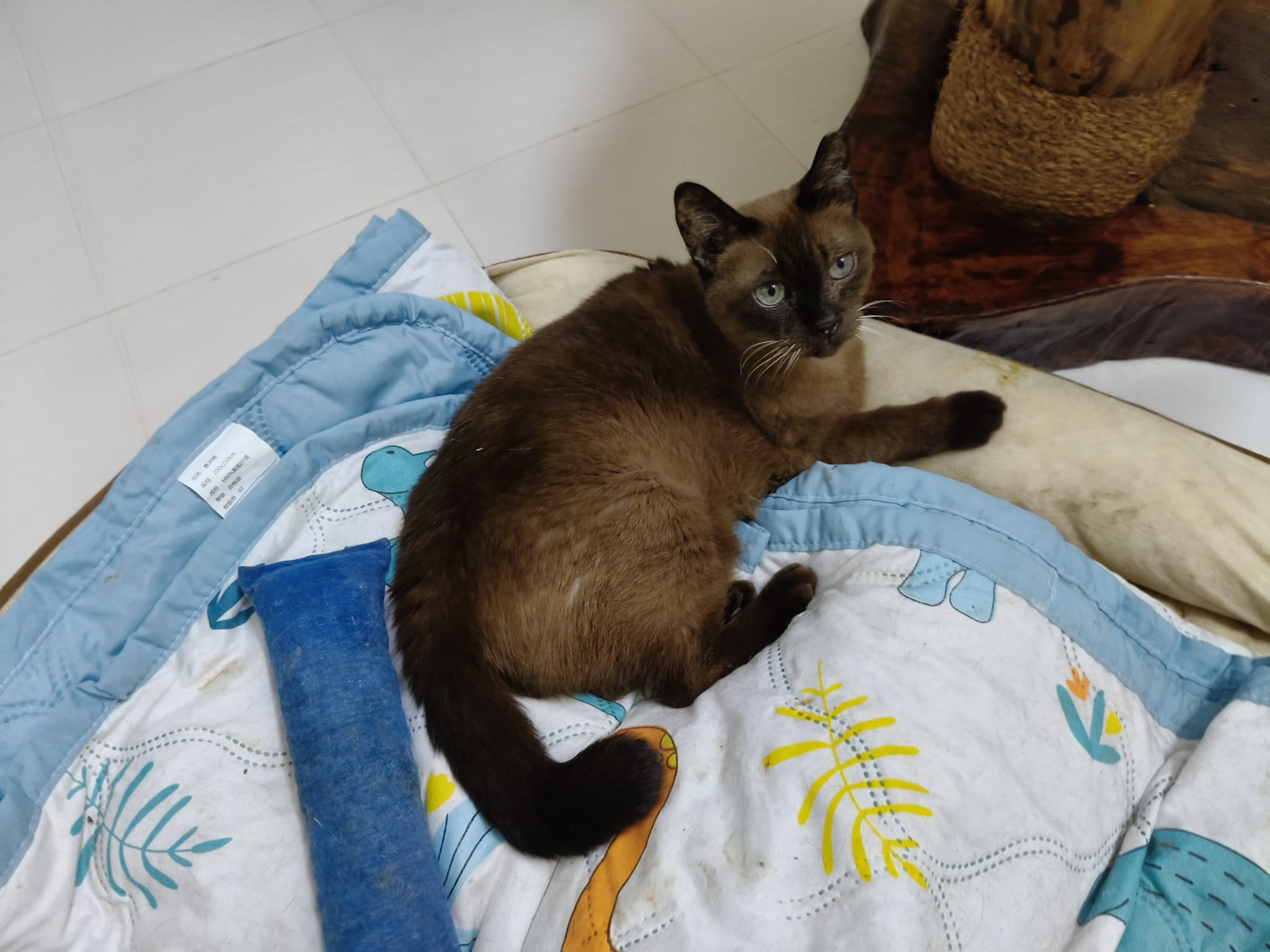 A old girl in my old hood. One day, I was told the town council to be … lucky she is smart and agile to jump to the rooftop to escape capture. I informed teddy and somehow she understand and thatâs it, she came to join me in ç«æż family. Super cute old girl, no more teeth.