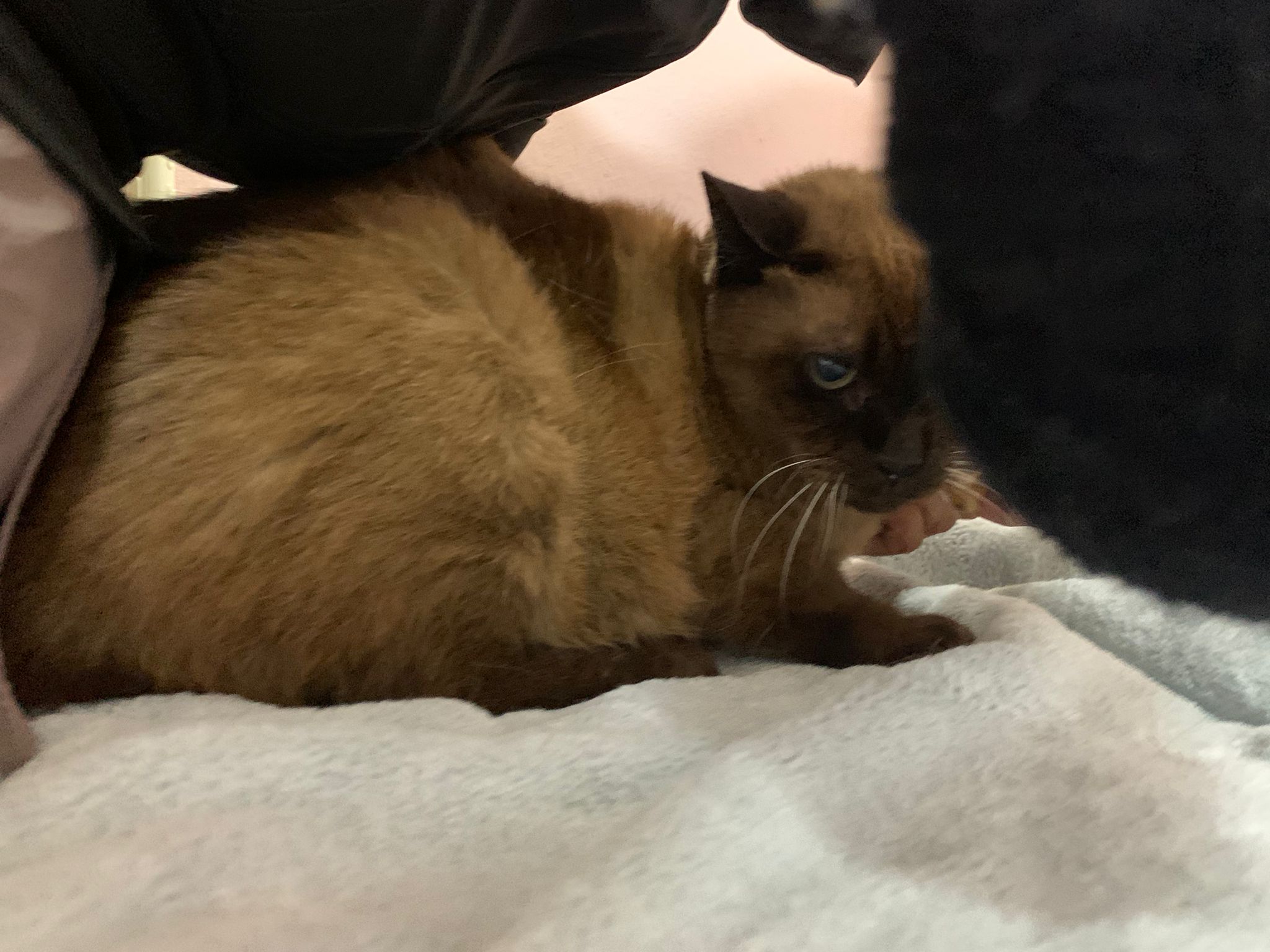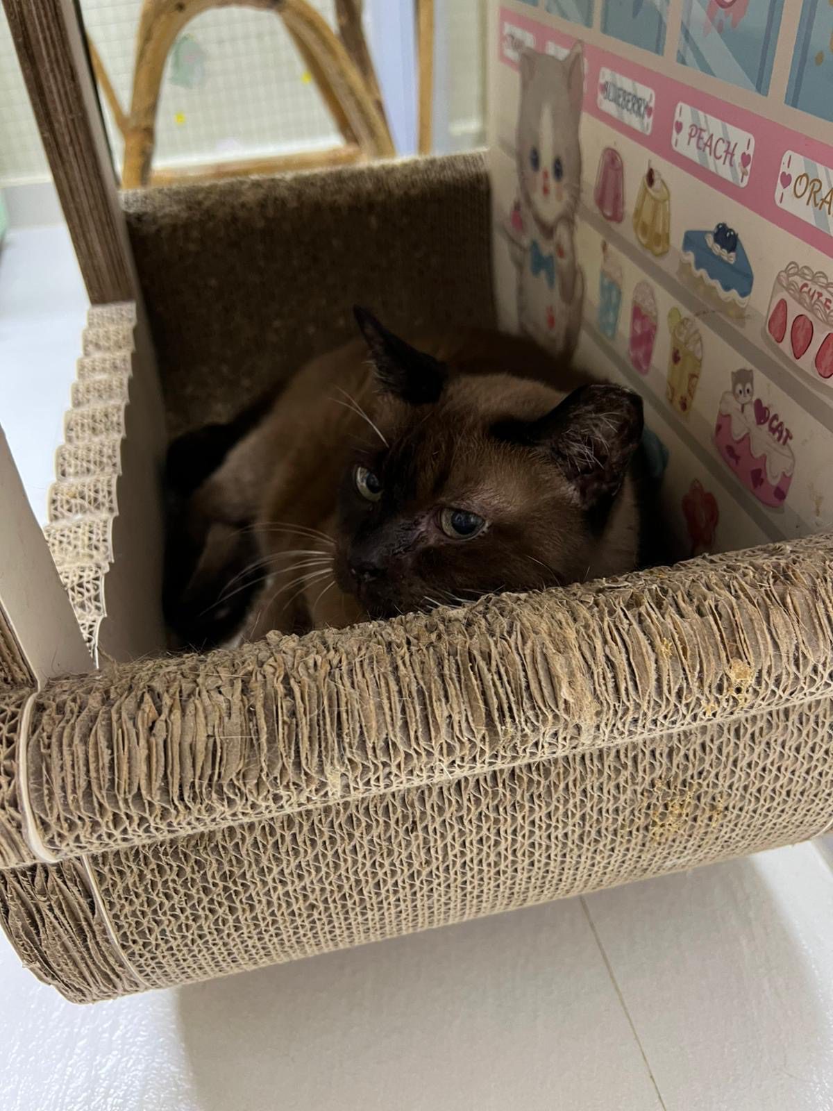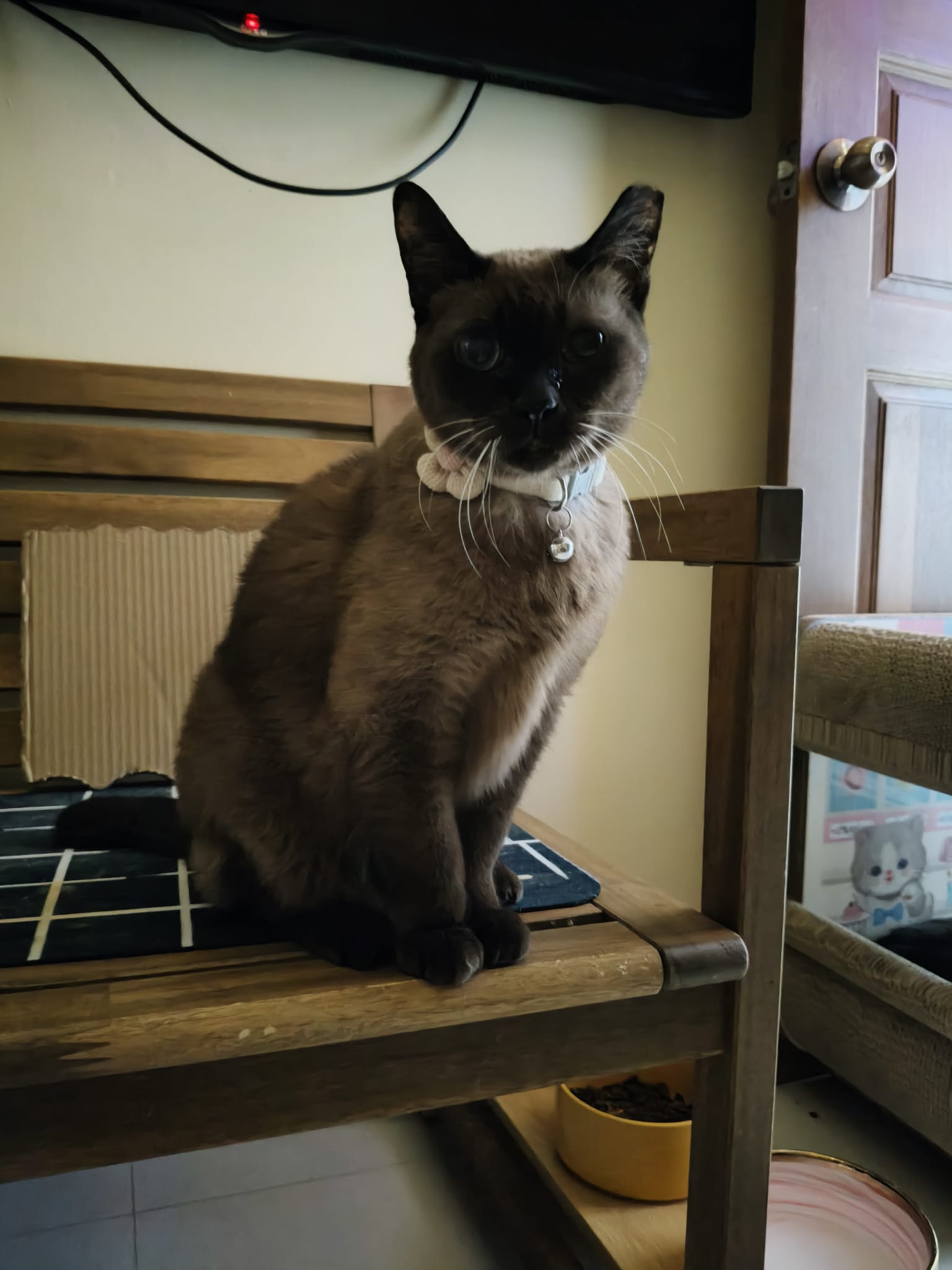 A old girl in my old hood. One day, I was told the town council to be … lucky she is smart and agile to jump to the rooftop to escape capture. I informed teddy and somehow she understand and thatâs it, she came to join me in ç«æż family. Super cute old girl, no more teeth.