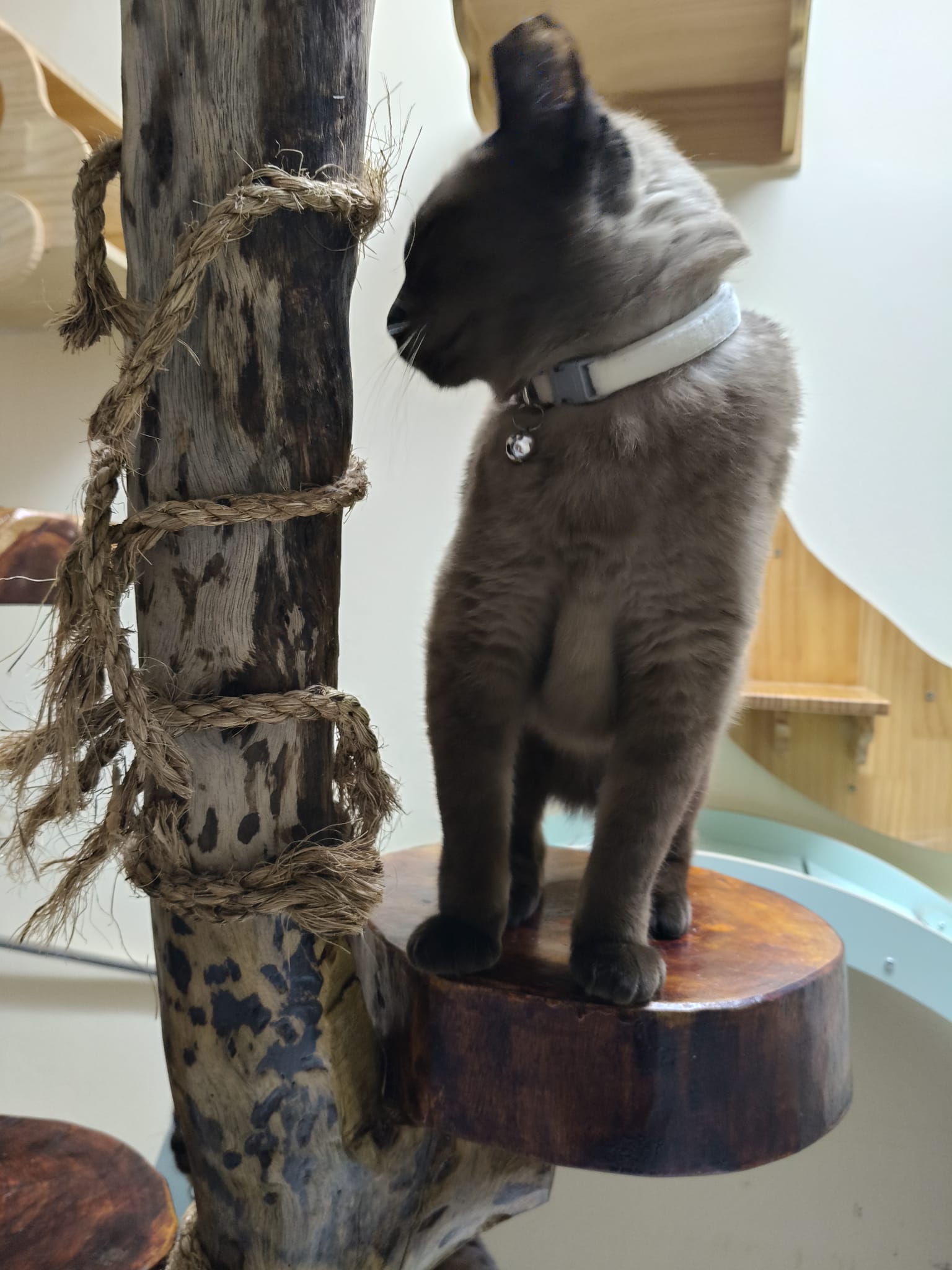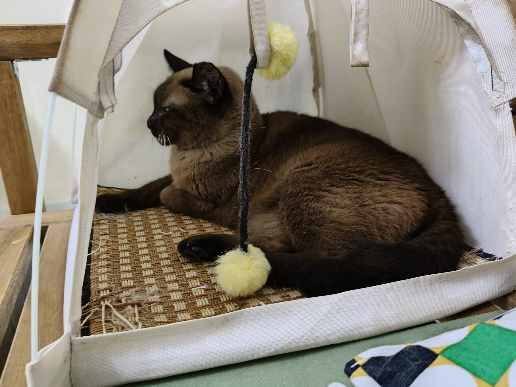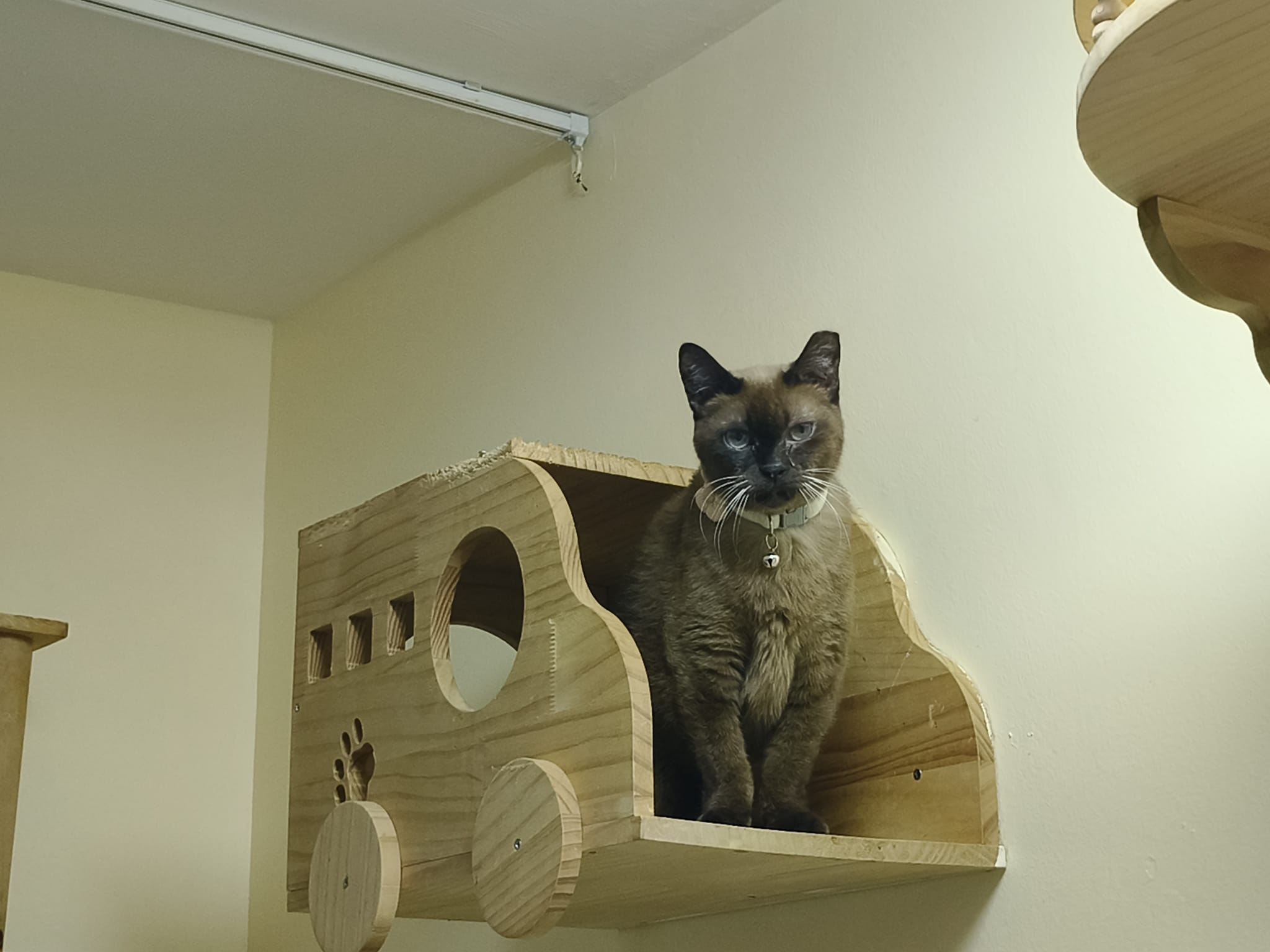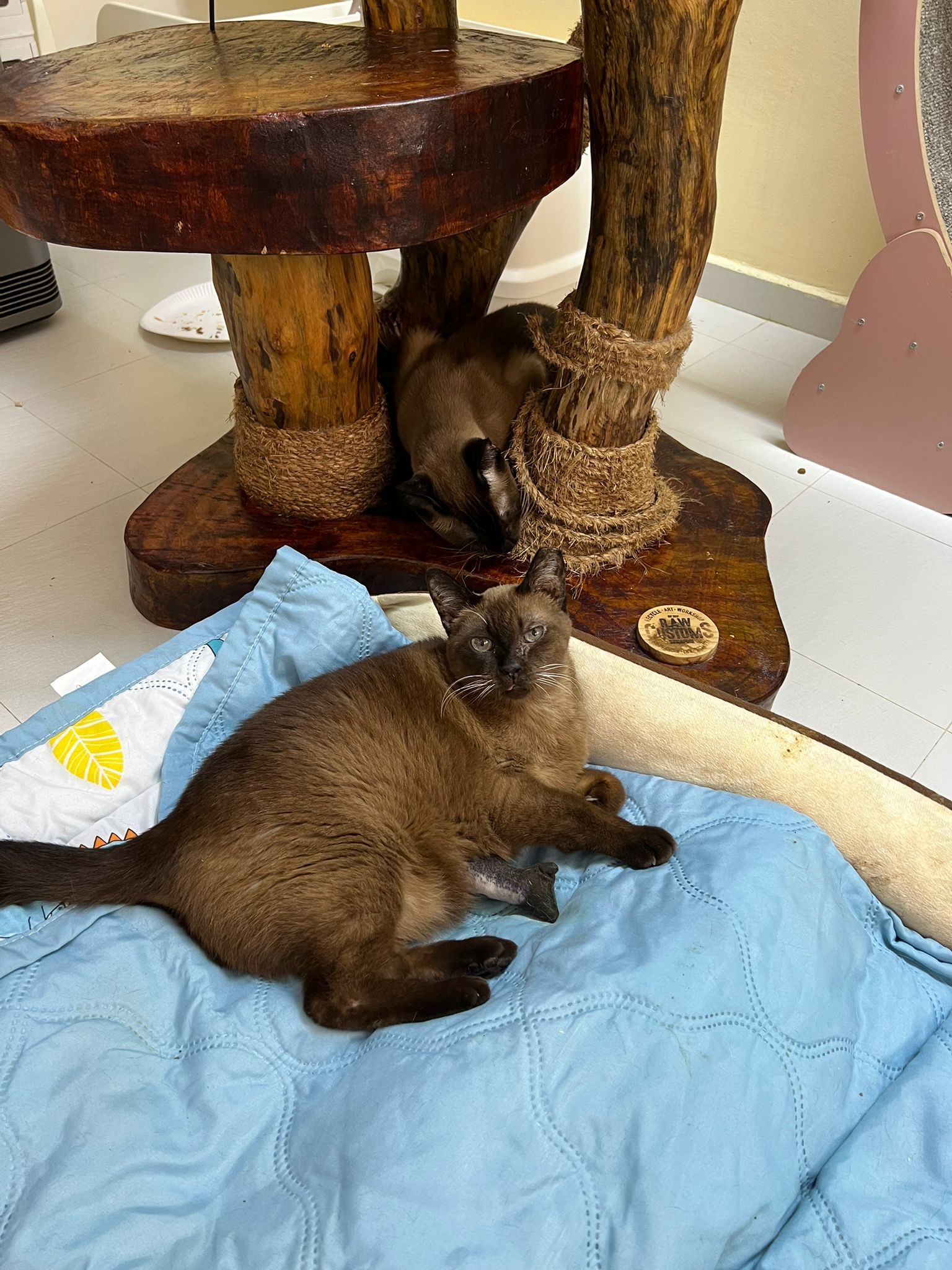 Morning: quarantined tgt w Princess sweetheart, char, rena and mama Mimi in new room for the installation of aircon, cos she is always in the cat tree. Throughout the whole morning Iâm there, she didnât come out, also didnât see her eat.