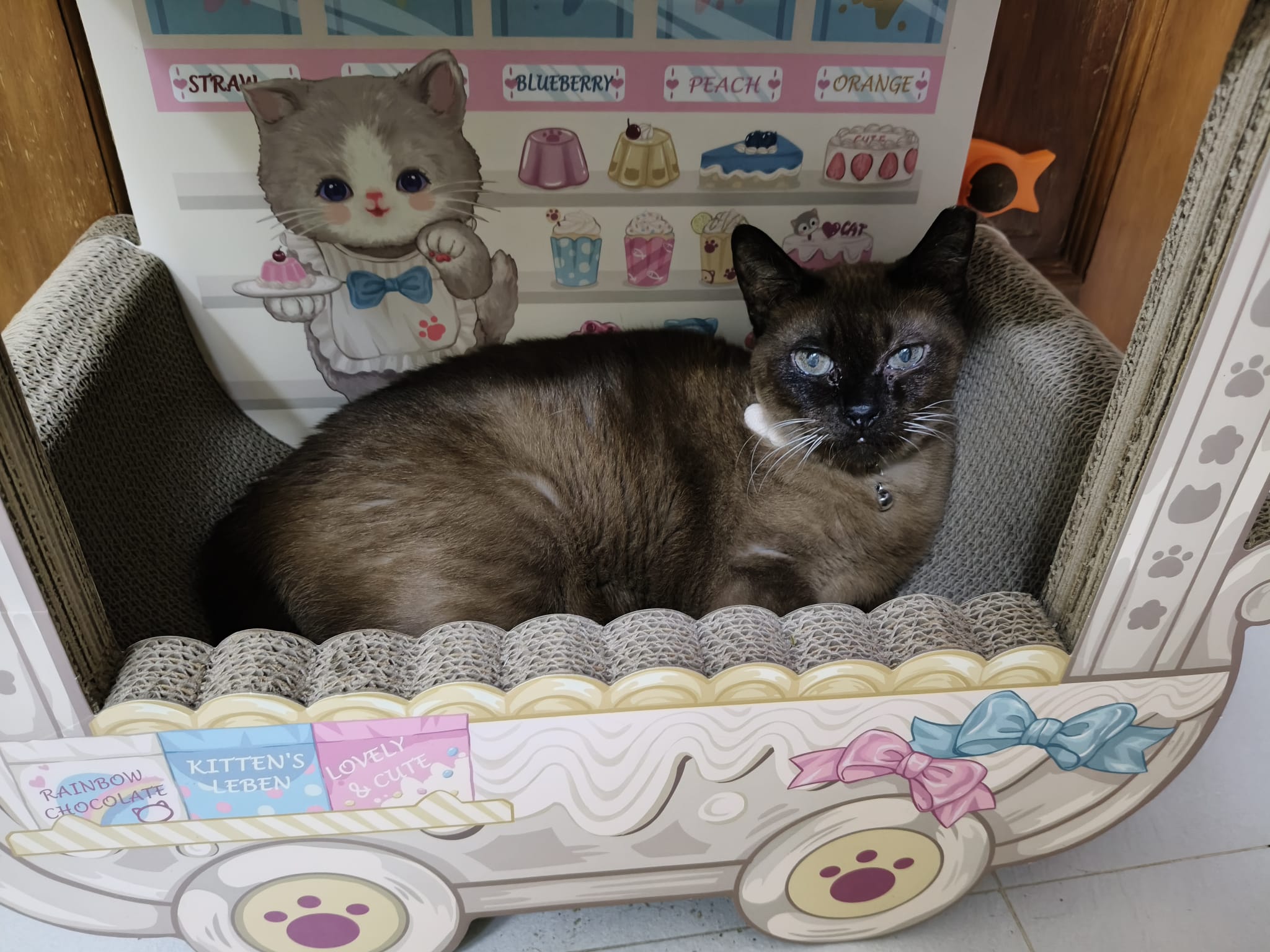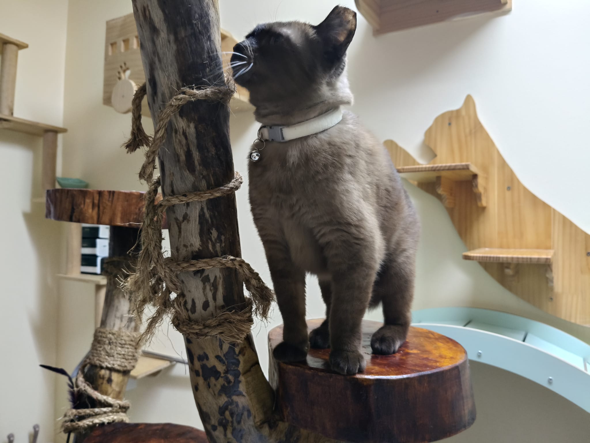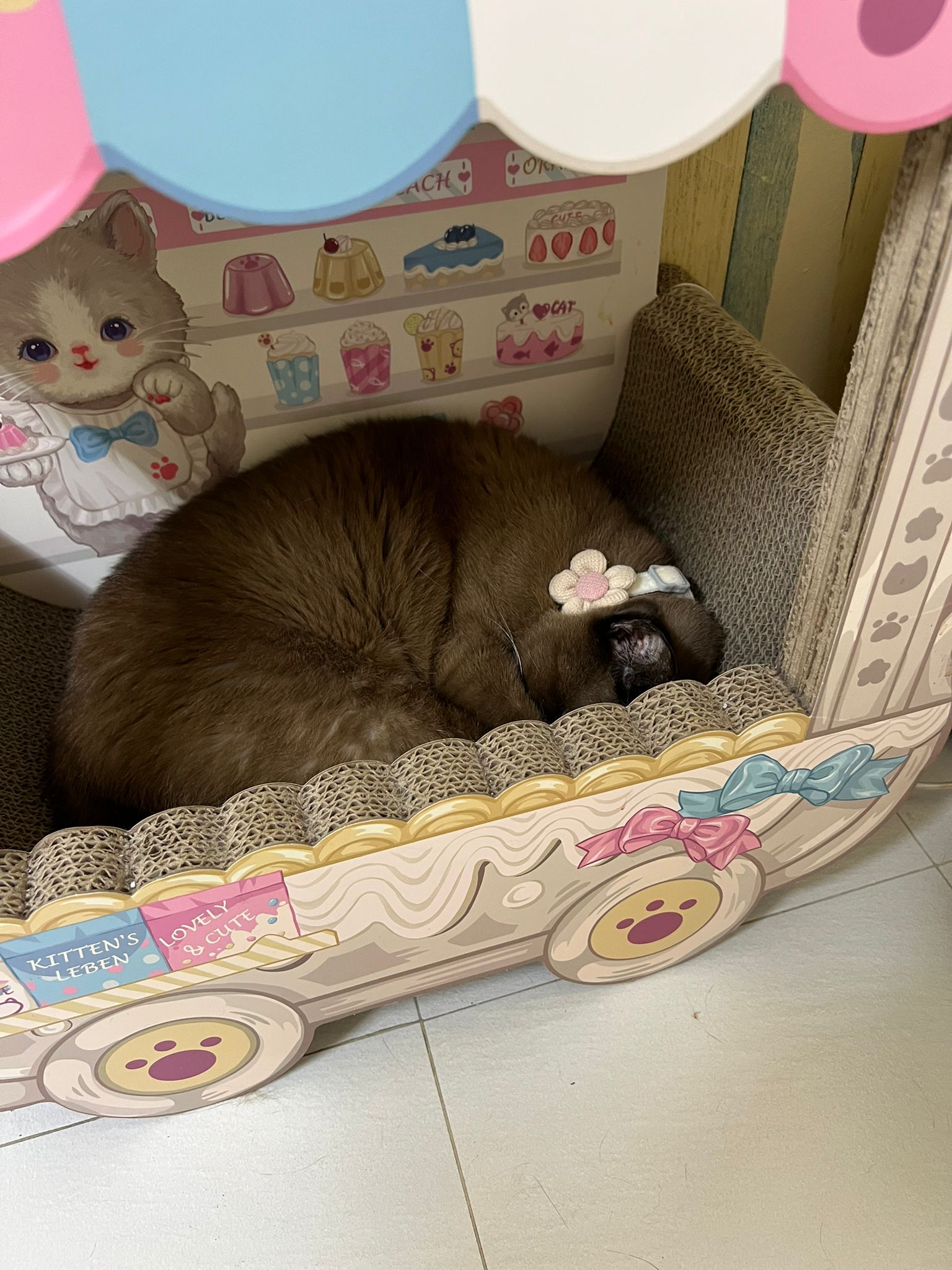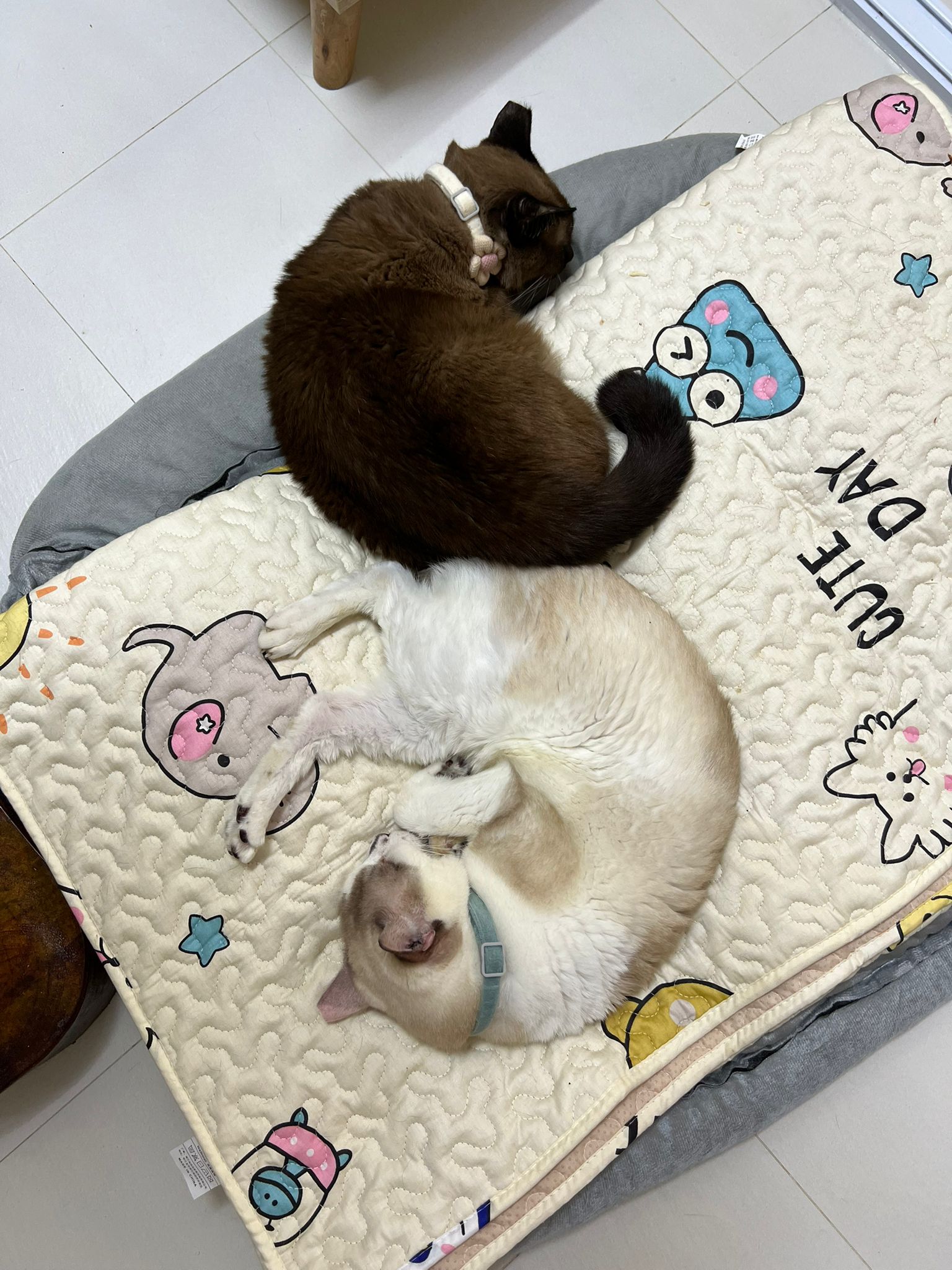 Morning: quarantined tgt w Princess sweetheart, char, rena and mama Mimi in new room for the installation of aircon, cos she is always in the cat tree. Throughout the whole morning Iâm there, she didnât come out, also didnât see her eat.