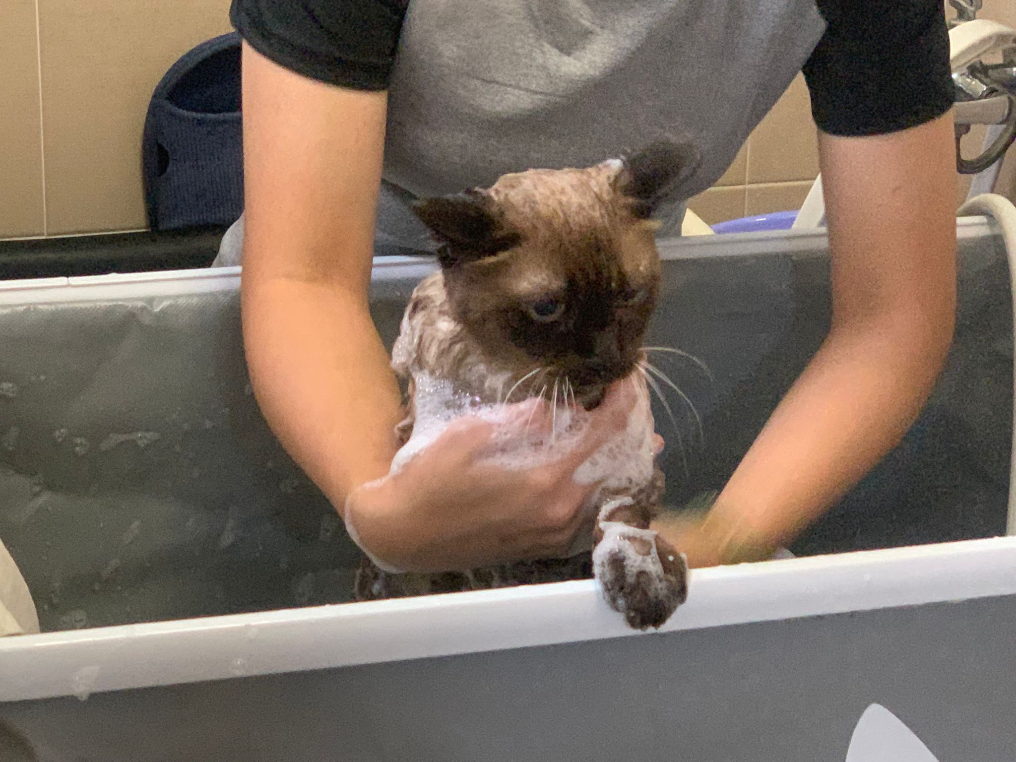 1150am: groomer side late for 50 mins in fetching the cats đ