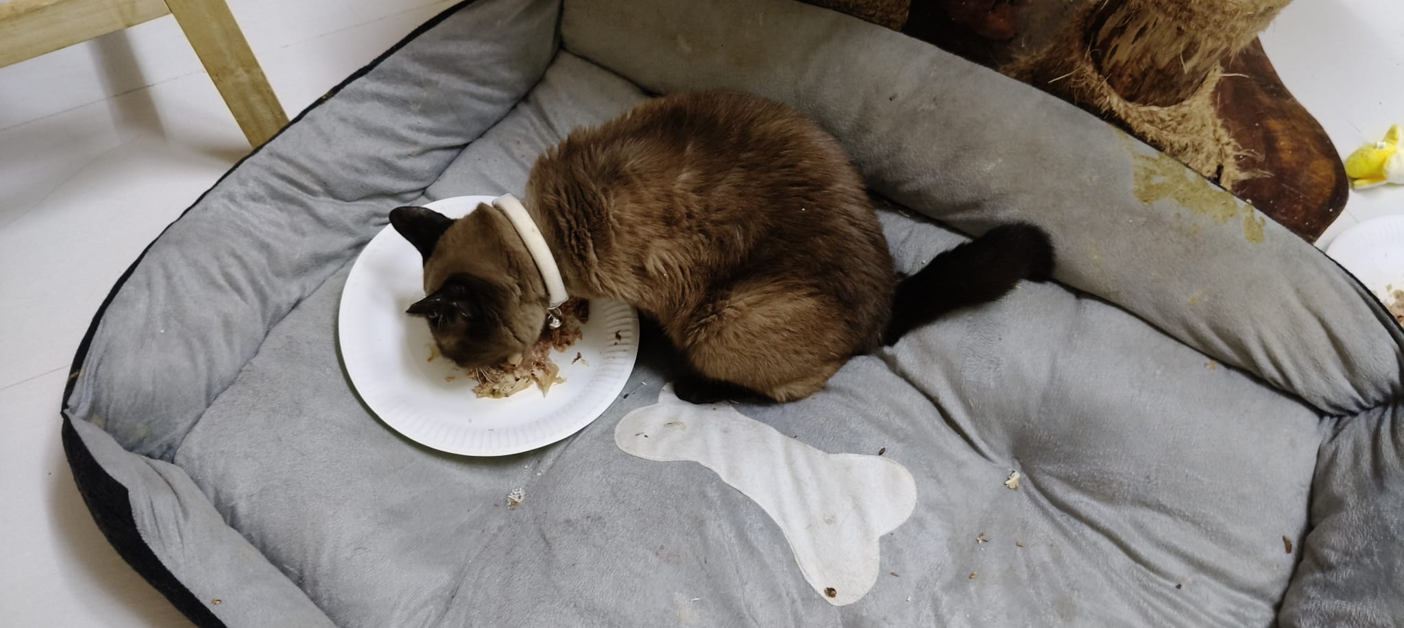 Yesterday Near to 2pm: let all the cats out so they can roam and go tv room. Teddy didnât go back, and today she is in the cage.