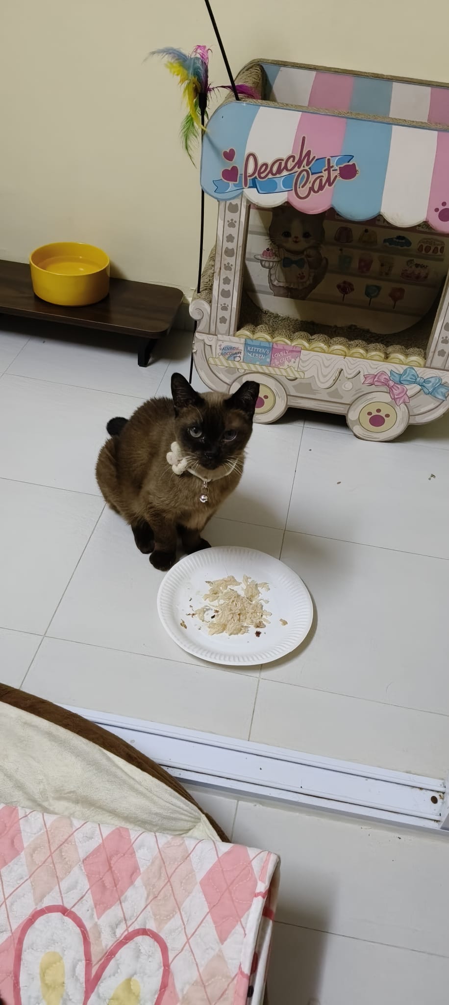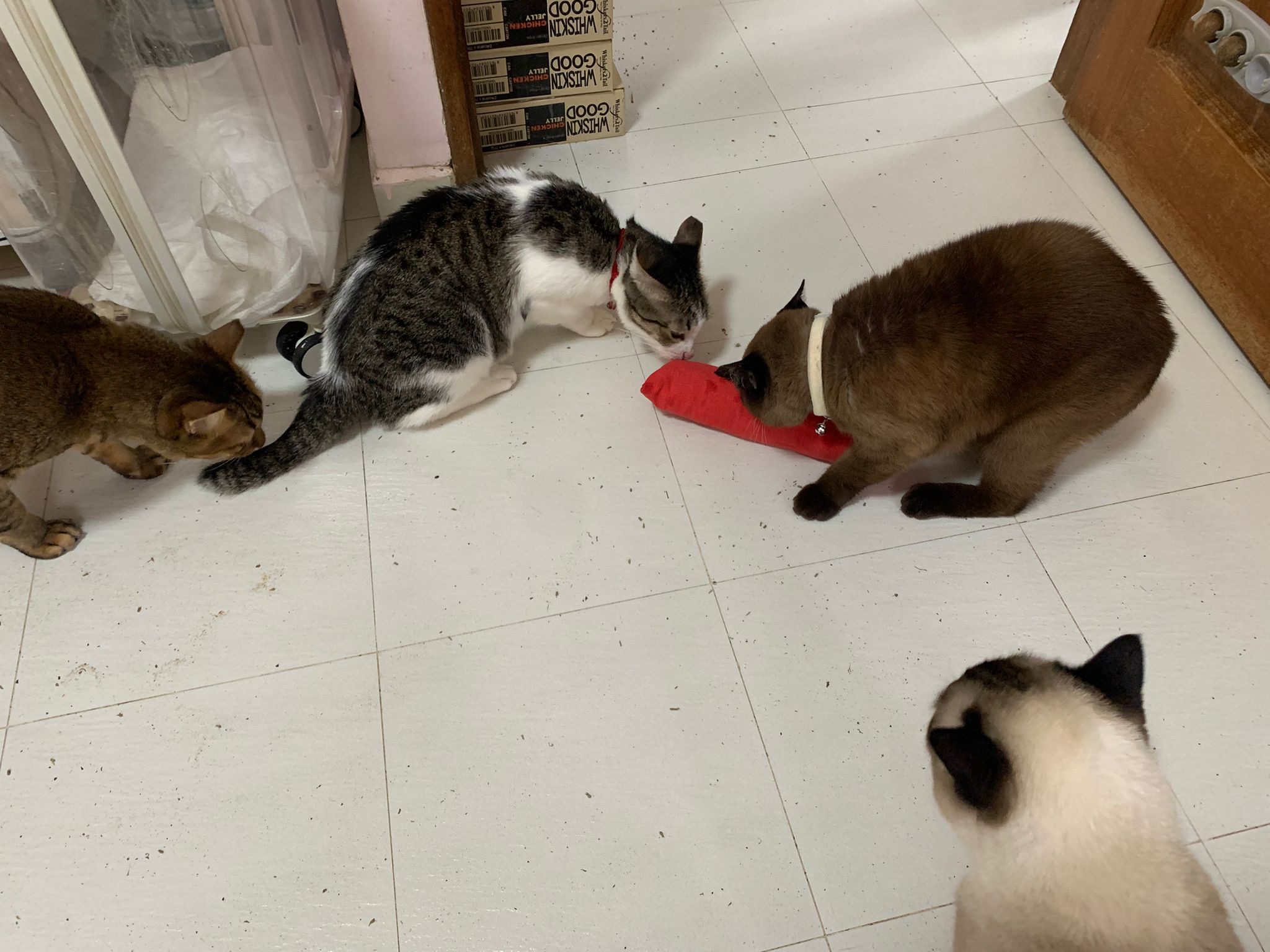 10am+: I shifted hei bai to room 6, and teddy bear wanted that room back. Teddy also got come to room to meow for food.
