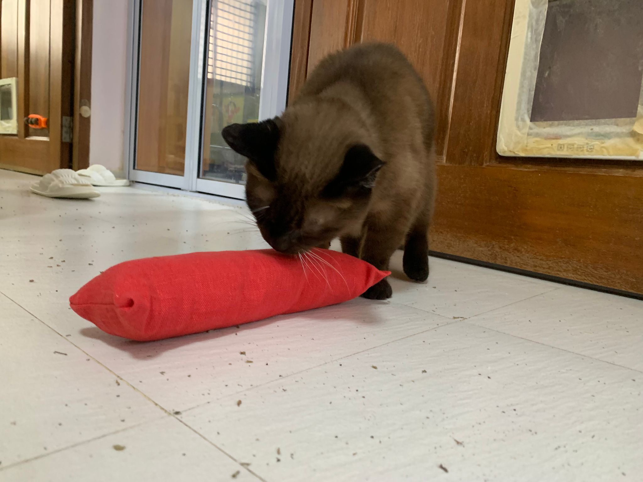 10am+: I pour lots of catnip all over ç«æż ⊠new catnip pillow n toys n floor n Teddy come play also. Kitty take hers, and she go rub the one at the door