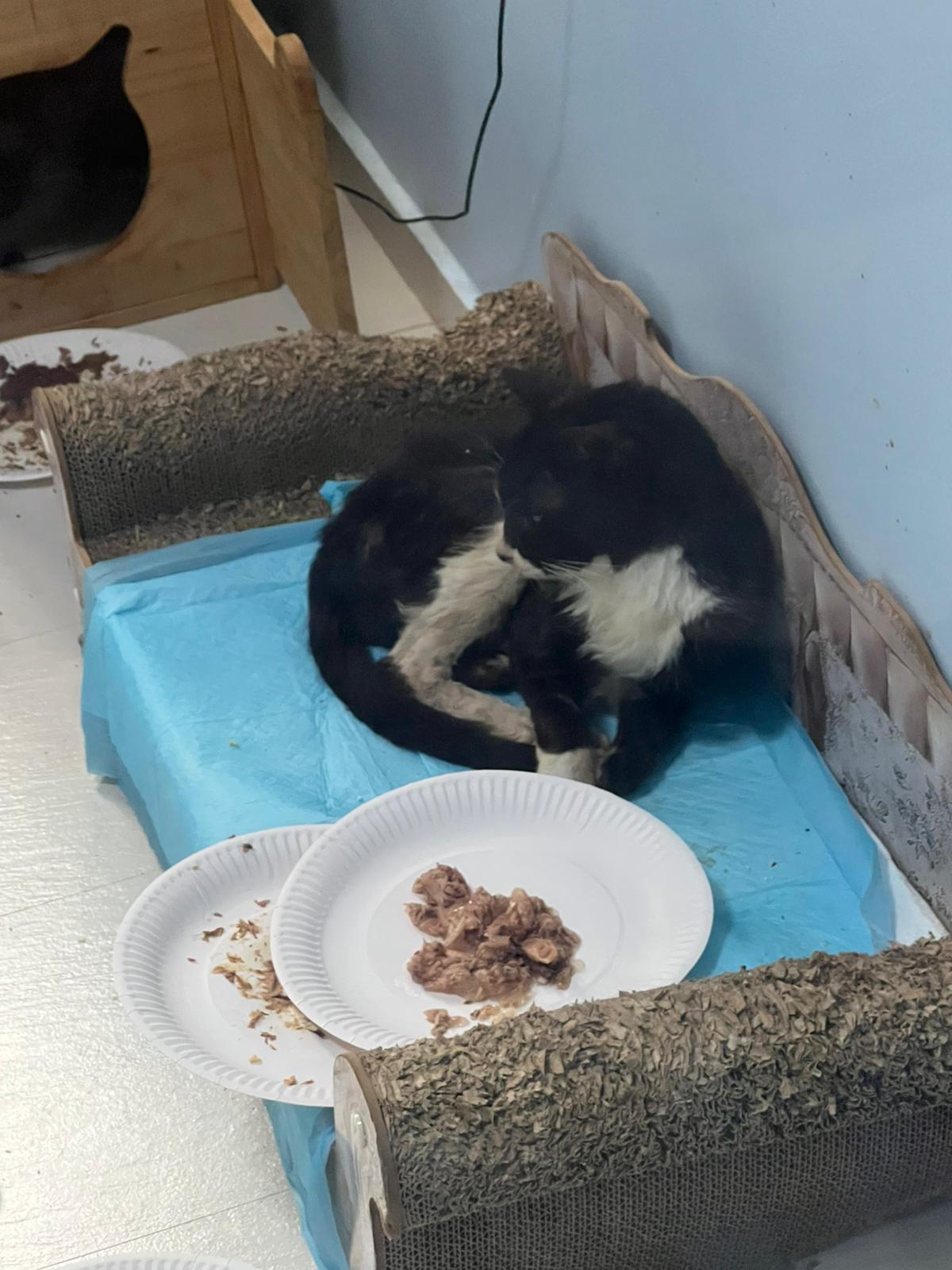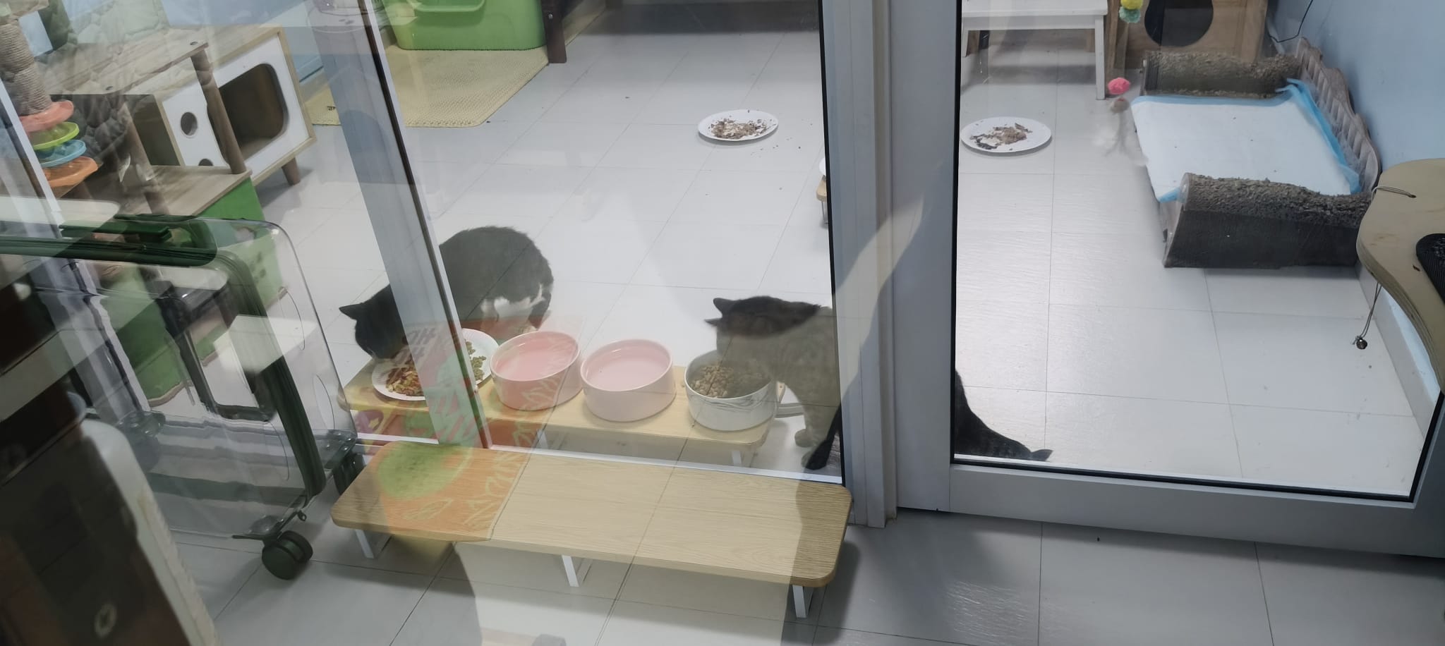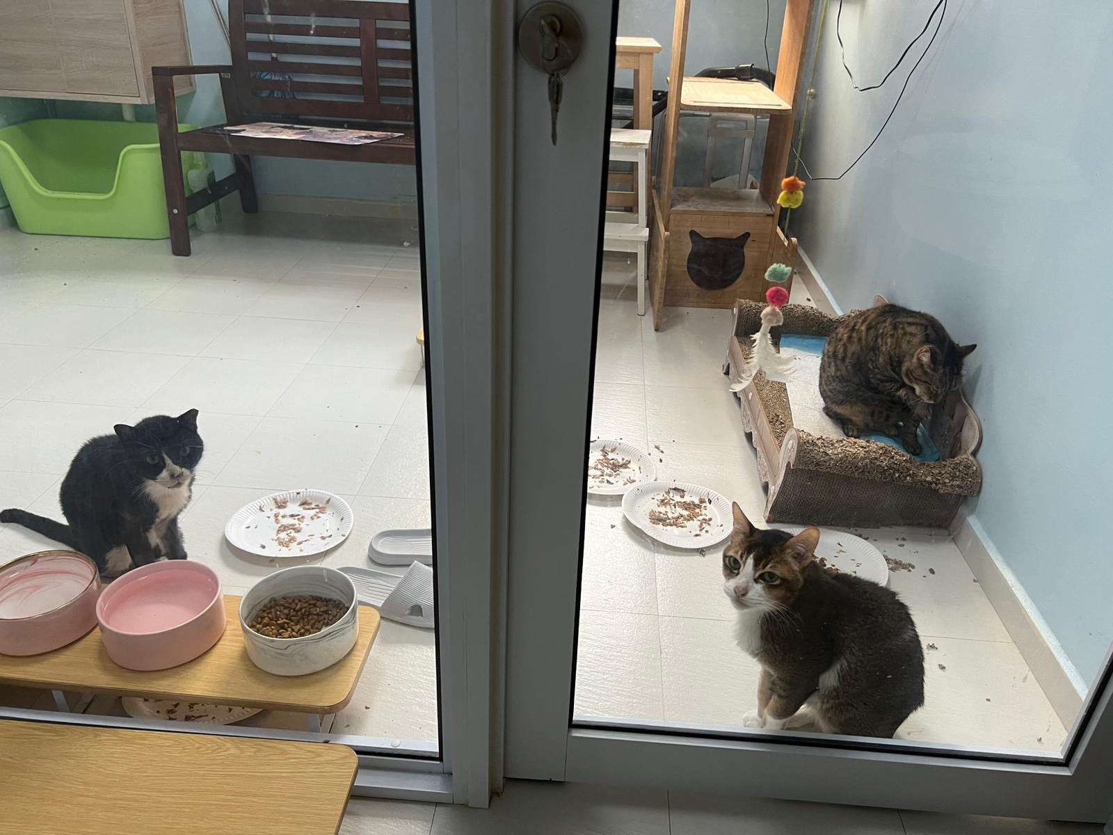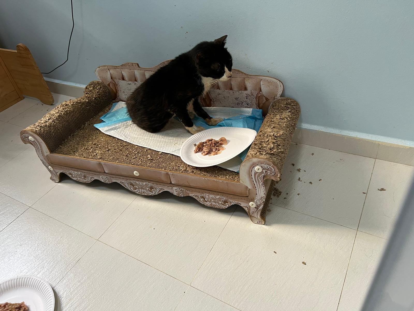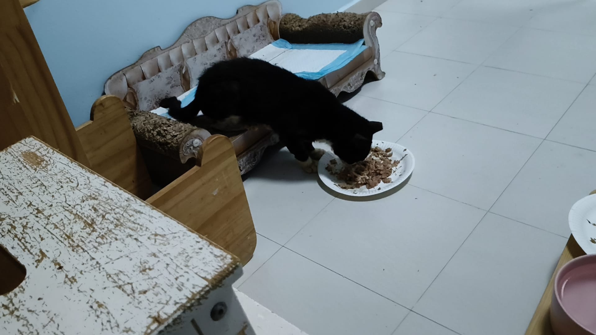 Reach 猫房 and he hiss at bai bai mama after she hiss at him. Remind them their relationship. Serve food I did touch him. No eat for both. Mama alr eat b4 I move her to iso room to join toy. Lights out. Let him settle down. 4.65kg, fur not nice. So far didn’t show aggression.