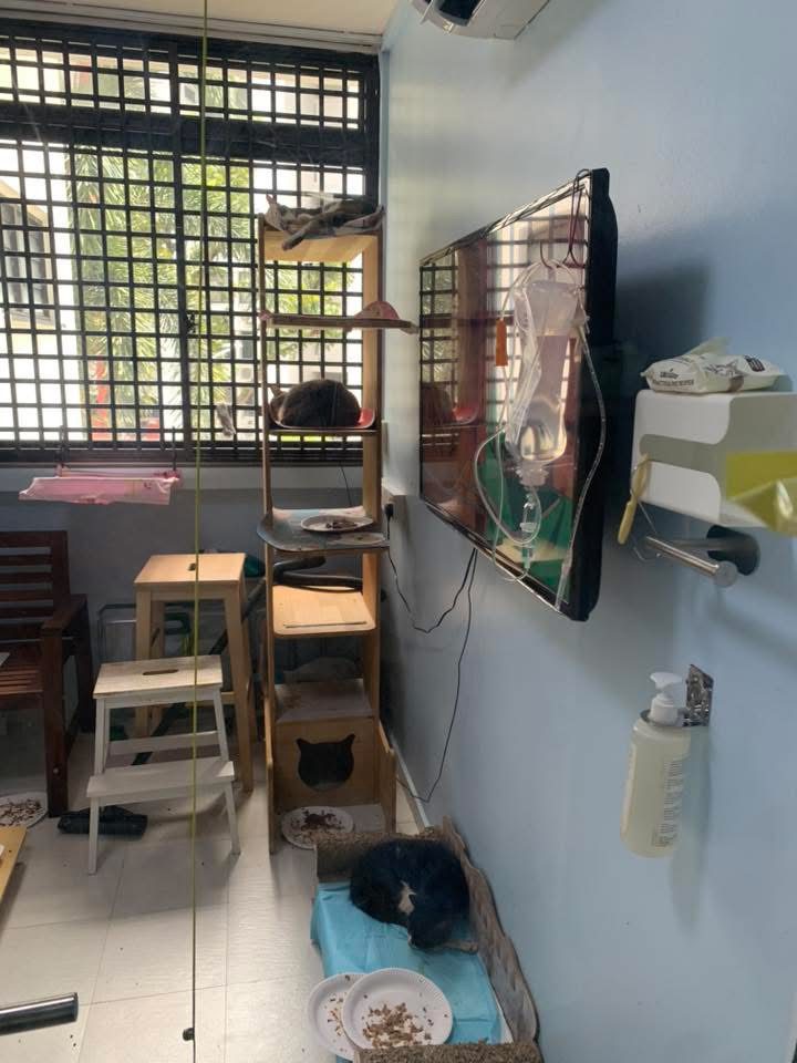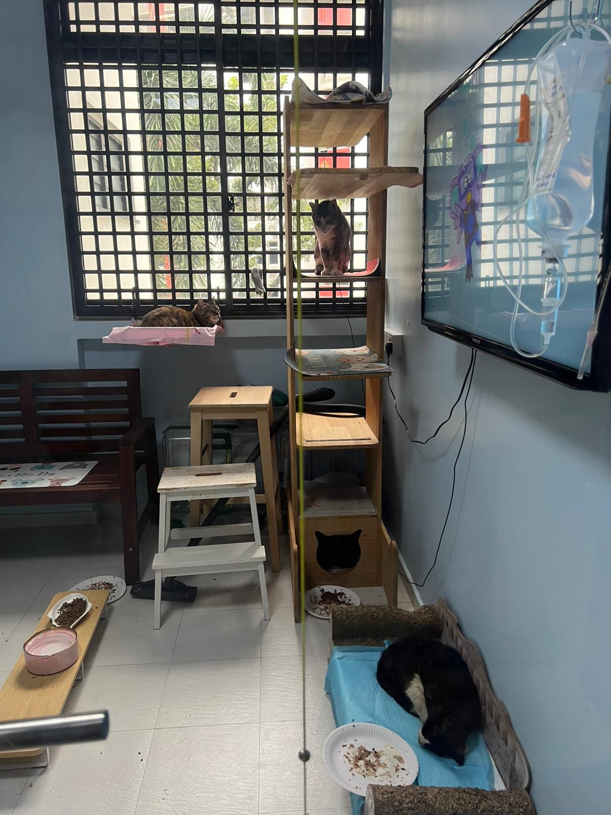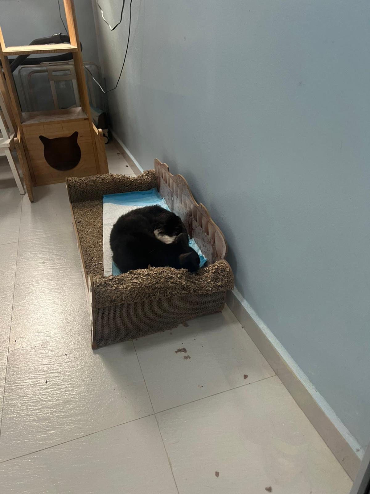 2pm+: bring toy back to 猫房. He is totally flat in clinic I was worried did he pass from the sedation. Saw Karthik try to pat pat him awake but he is v weak. Bring him back 猫房 he is very weak still. I try to carry him on the big sb to let him rest n he looks more awake n I sayang him.