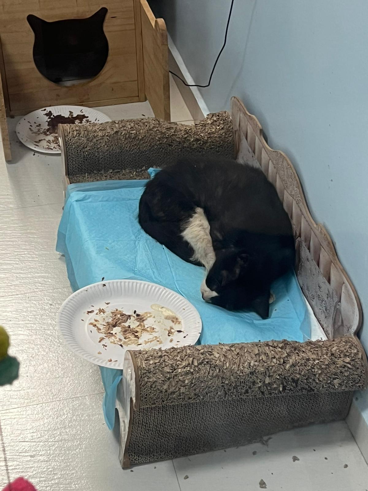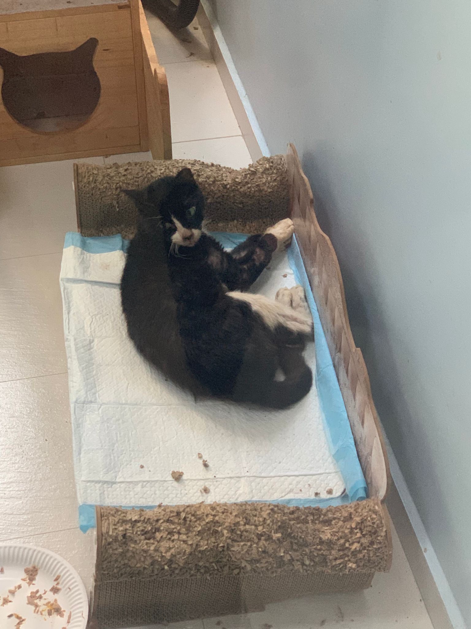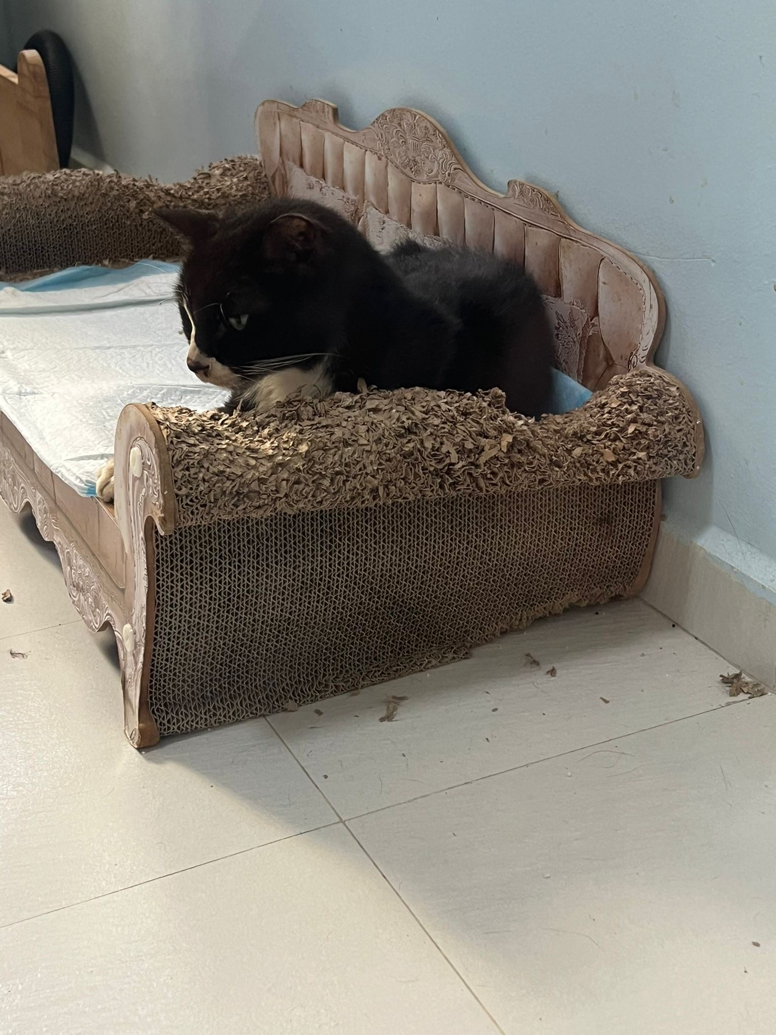 2pm+: bring toy back to 猫房. He is totally flat in clinic I was worried did he pass from the sedation. Saw Karthik try to pat pat him awake but he is v weak. Bring him back 猫房 he is very weak still. I try to carry him on the big sb to let him rest n he looks more awake n I sayang him.