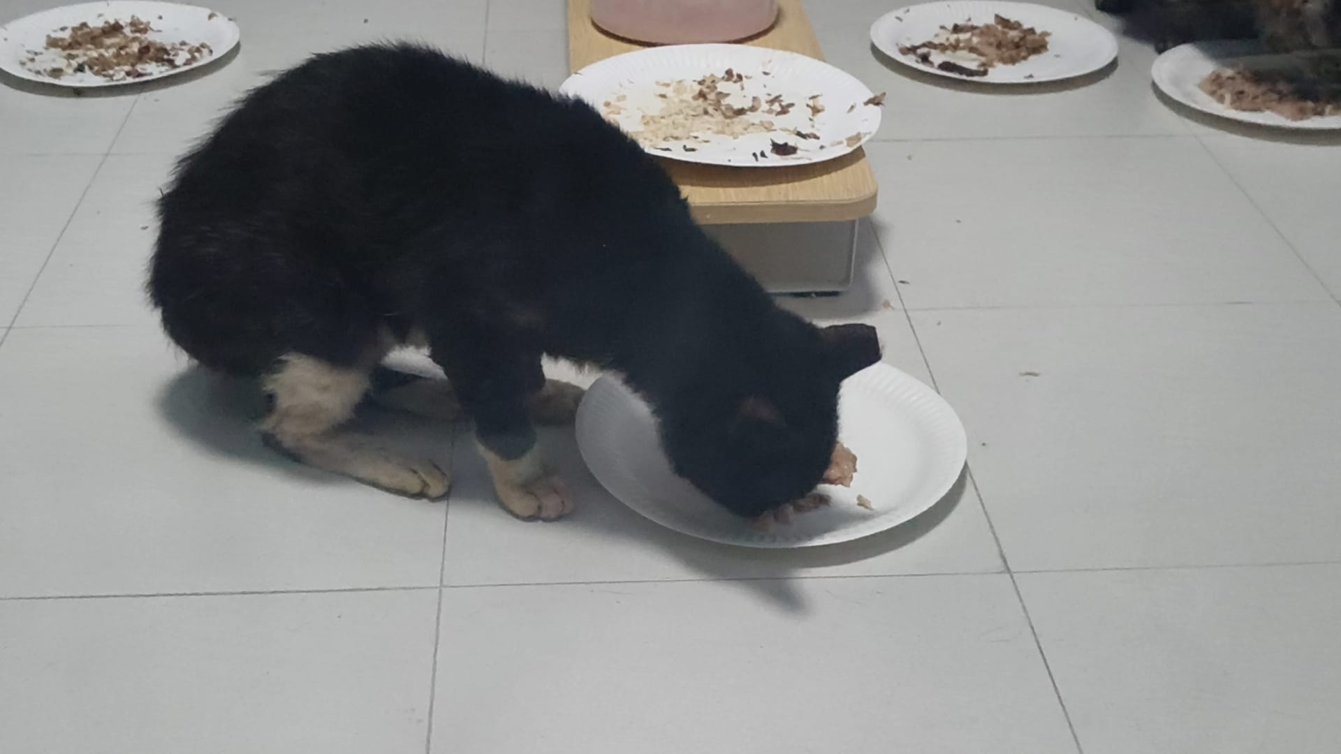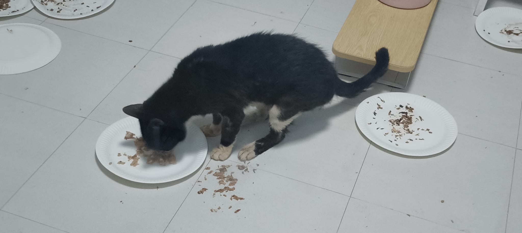 And Open a pack of the water fish pouch and Aristocat can – 3 in 1 plate. Toy tonight meow like at lll so loud for dinner and he got eat 🙂