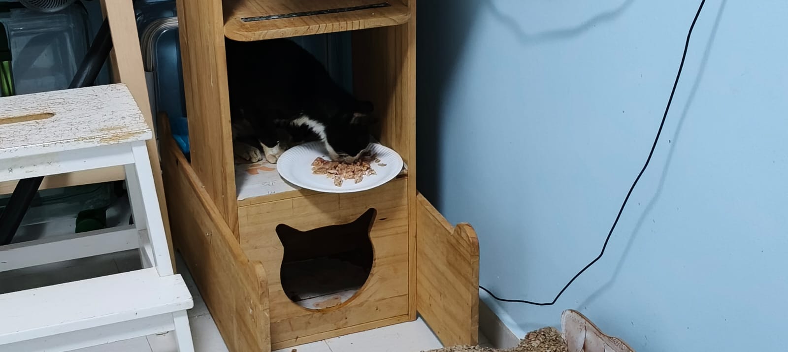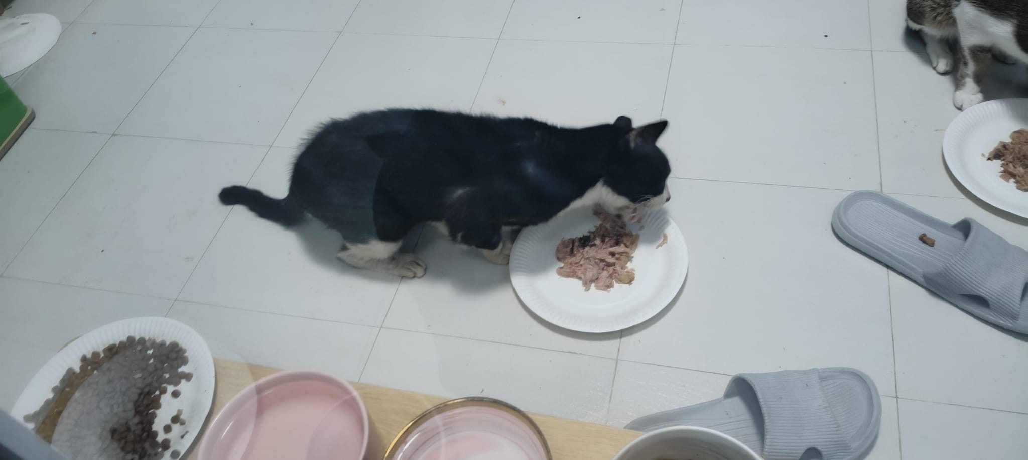 A community cat jiejie is feeding. im the health consultant. haha. sometime i talked to this family, they thought jiejie come feed them liao. Toy is still cautious of human – good. Jiejie can touch him la. No time to port their old logbook here yet. just start logging here from 16.9.22.