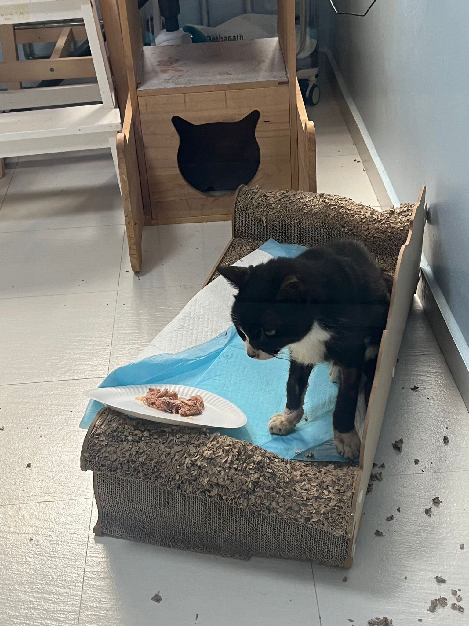 10am+: I move hei bai to room 6, he got look for him leh. Subcut him today w bupre n given GABA. Ranitidine used up and nic still sleeping can’t collect med yet for him. 3.67kg – gain 70g in 2 days.