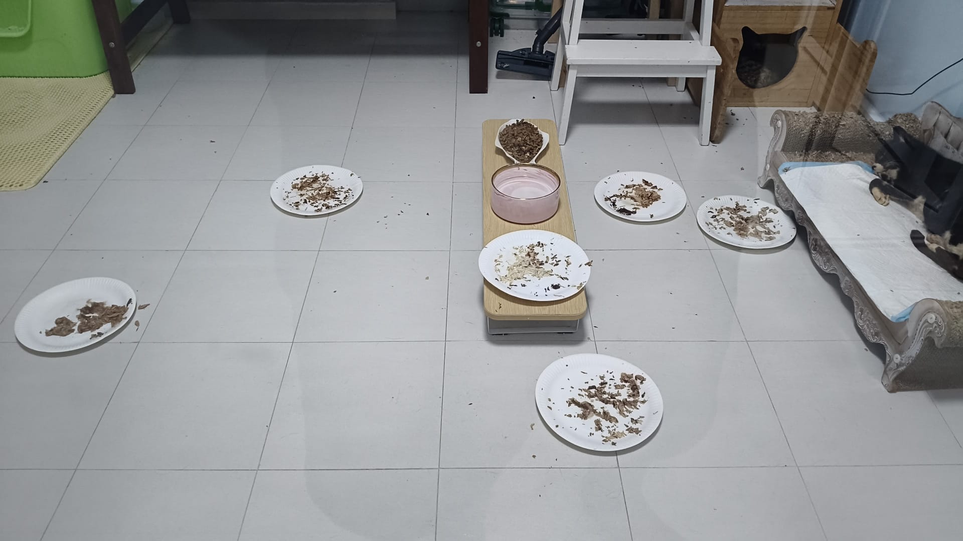 I told mmm that There is a plate at the bottom layer cat tree also – he didn’t eat when I serve.
