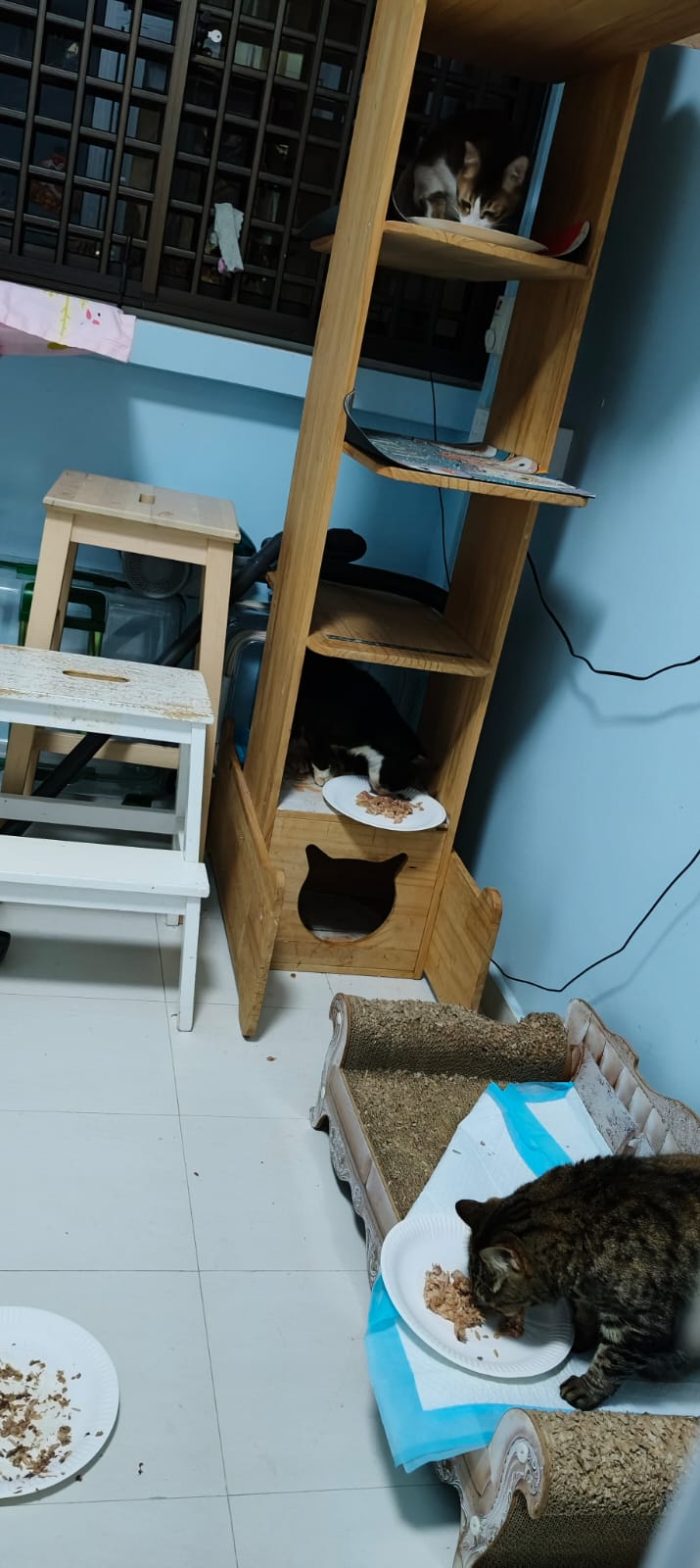 8.40pm: I don’t have intention to go disturb toy cos jiejie feeding him n mum at 10, but I went to find hello at secret place when I realise one idiot stupid looking non local woman with PONG hair curly hair, looking at us n I still smile at her. She confirm did know I’m accompany hello n his food on plate n it’s obvious I’ll throw the plate later on cos my cans etc not w me anymore. She still want to scold us n lucky she didn’t engage further, she mainly make me fed up cos she didn’t stop at telling me don’t feed cats “here” she even say downstairs alr a lot. I scare she harm toy and mama. I went to inform toy toy about such a woman n told him to be careful. Good to scare of pple. Told him jiejie coming down later.