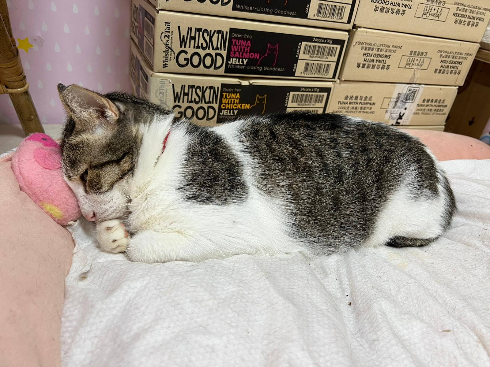 Yesterday Kitty got his new wheel.today he still come stick to me to get his sayang n he like me to talk to him face to face n kiss him. He is a good boy. I alr stop his ab days ago. Total 12 days plus. Neck no burst of pus or anything. Should be safe.