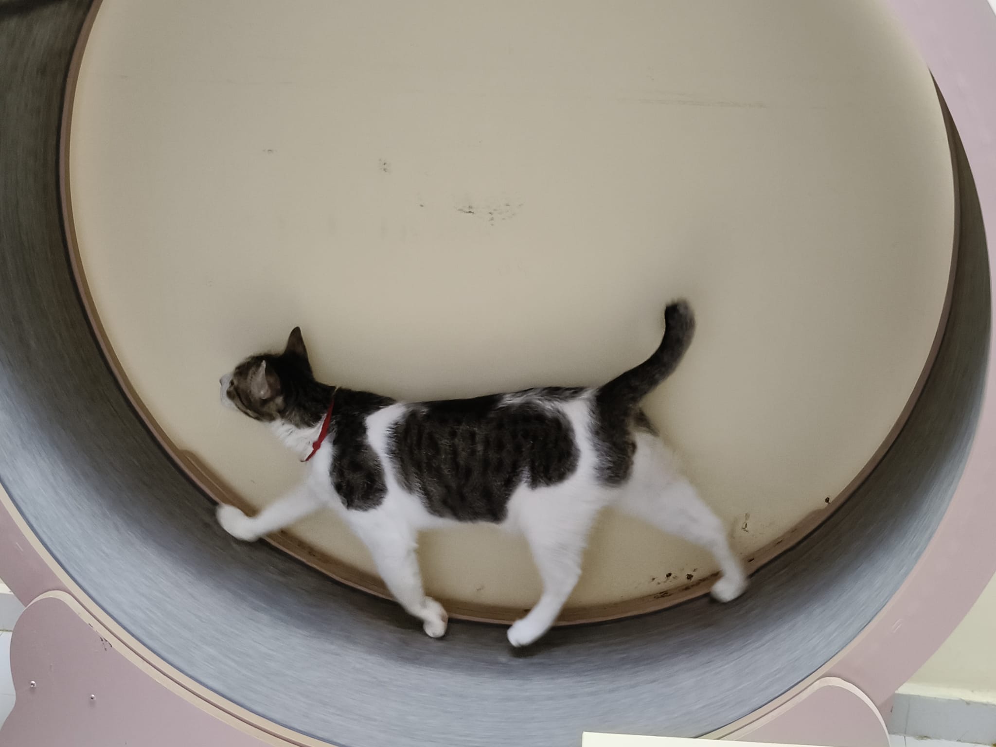Morning: kitty looks so sad on his wheel that I got to sayang him to tell him I know itās not his fault that I throw the black one away cos that one got issue I play safe. Kiss kiss n sayang him.