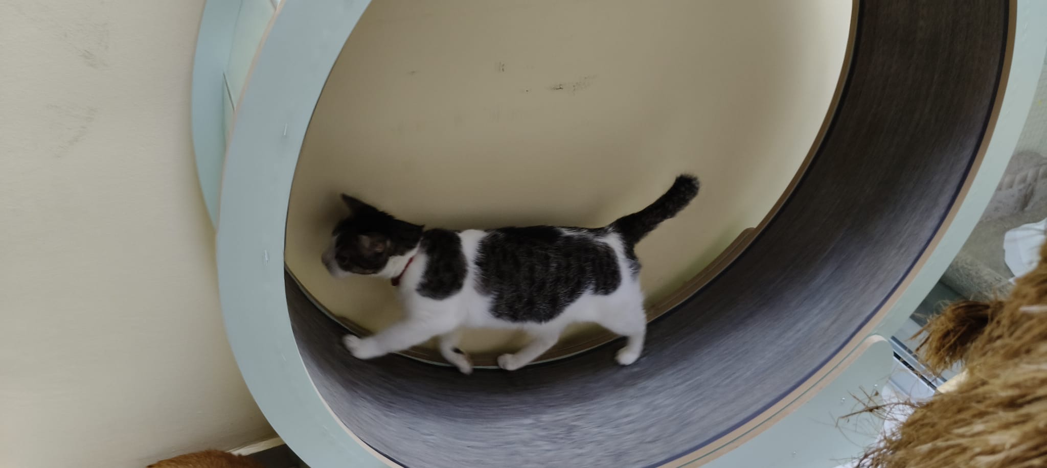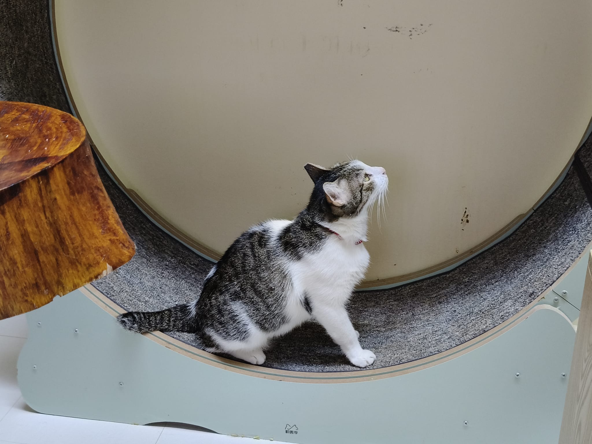Photo of kitty on the wheel.