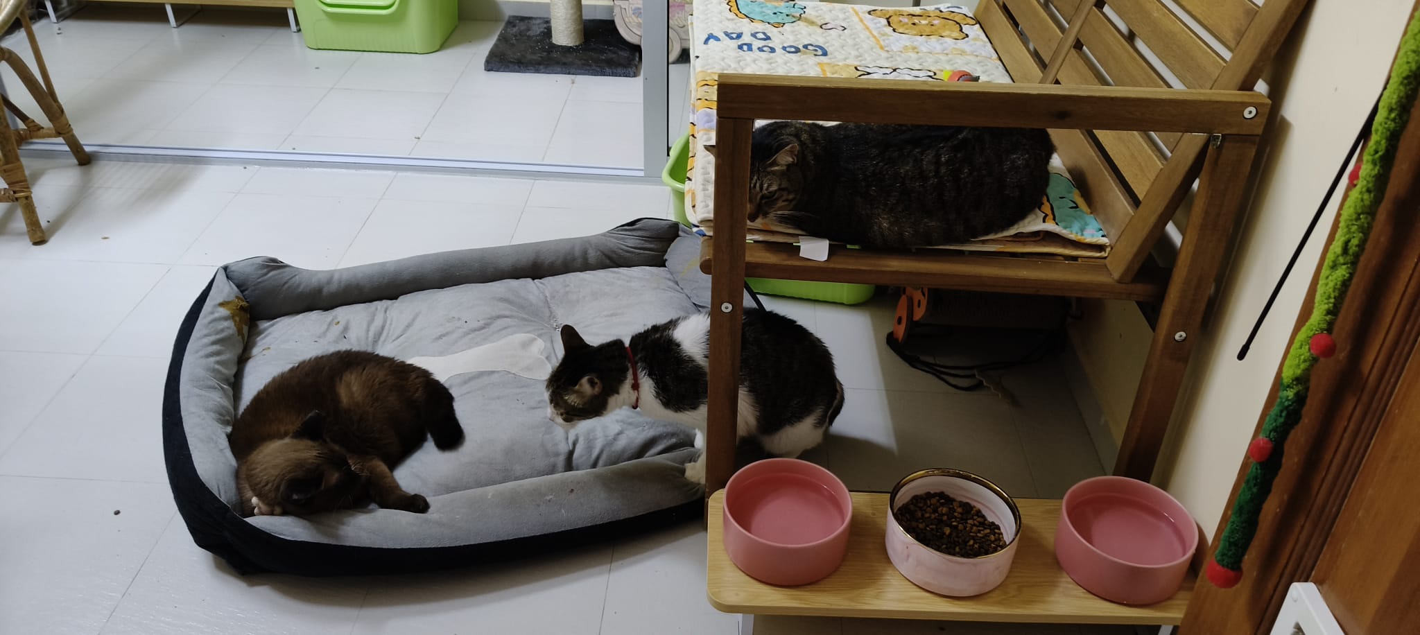 Elv canāt cut junior and Kitty nails, so I arrange for them to do cut nails, Clean ears and brush fur. g2 canāt catch him