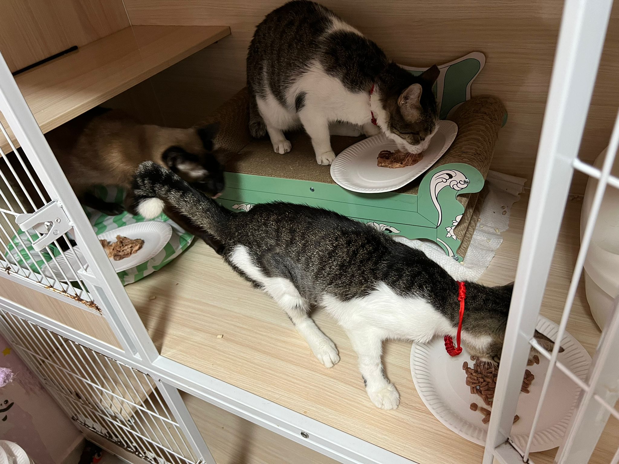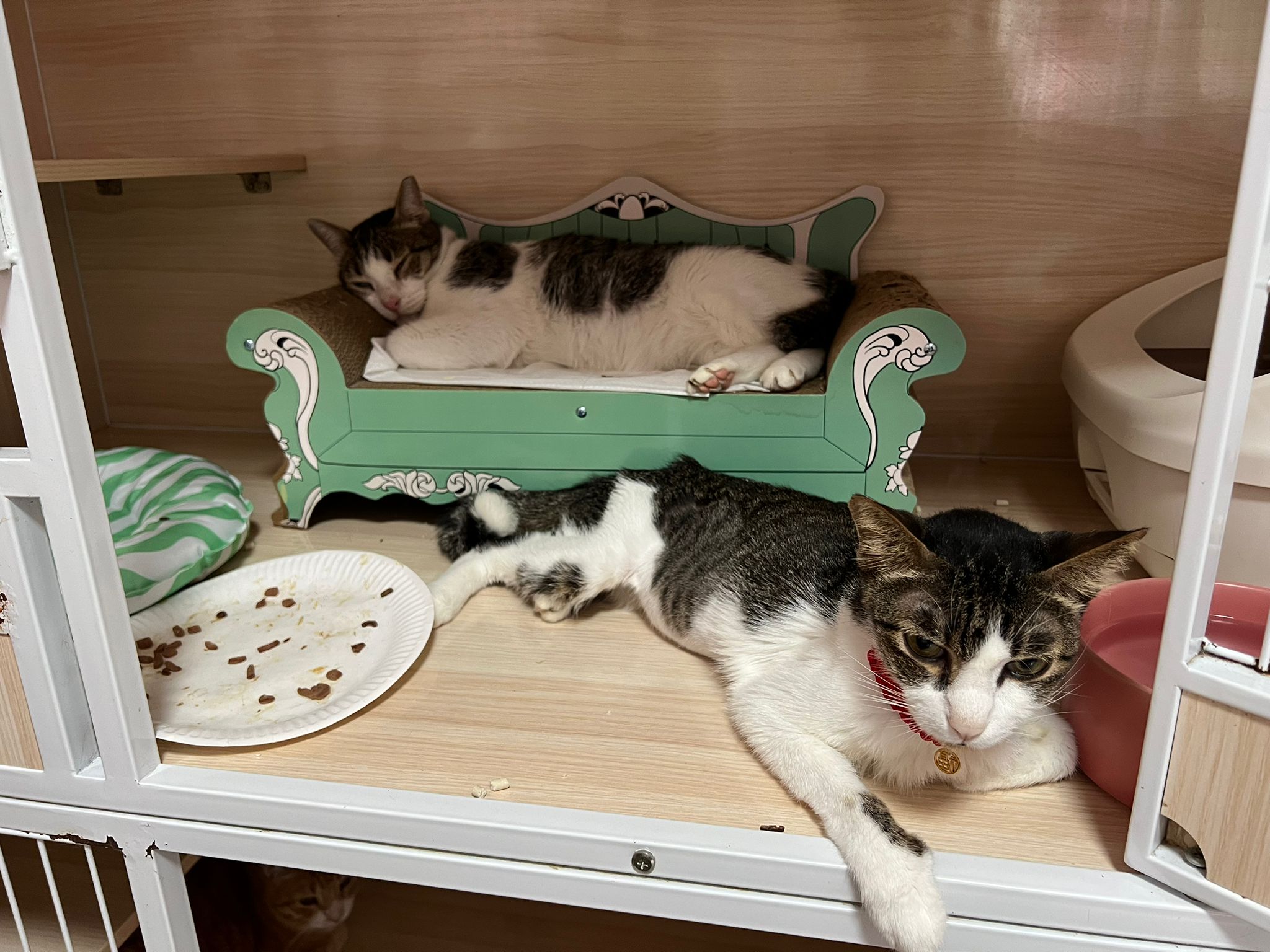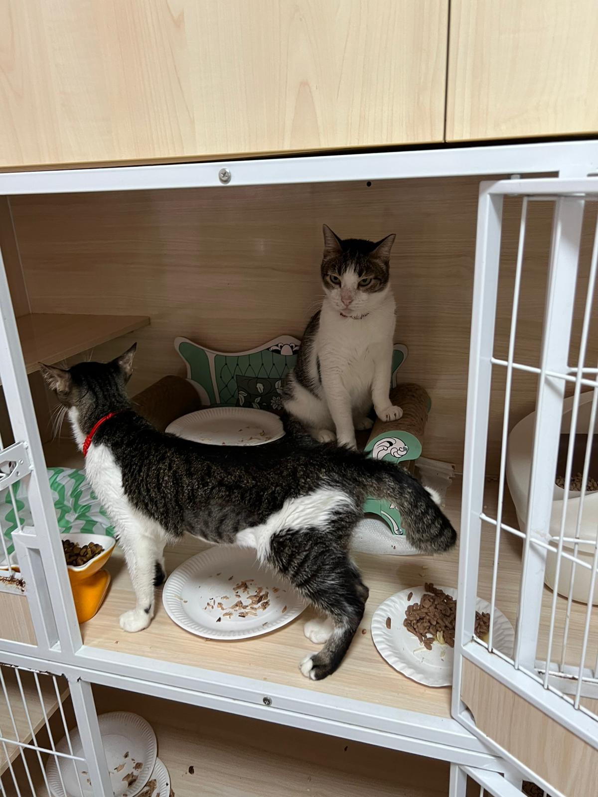 Morning: given them food but the time coincide w the trident airdome installation, Kitty and Amber both hide tgt under the cage