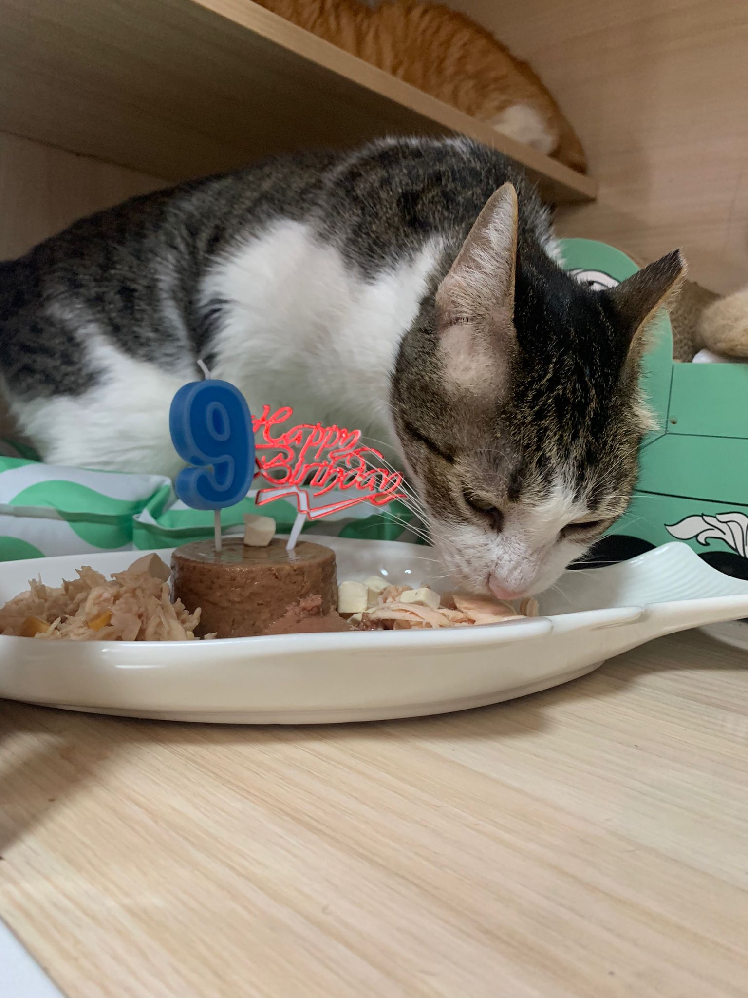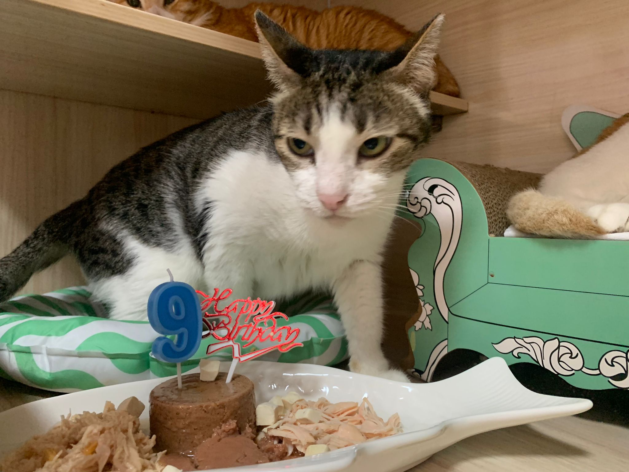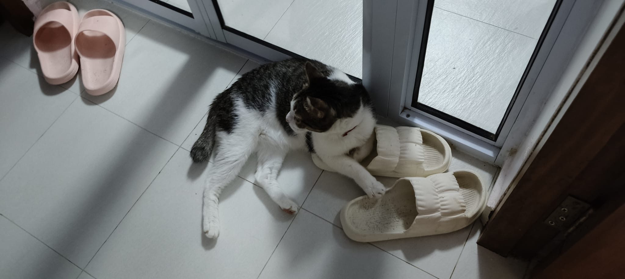 Morning; Today I need to rush home cos got appt to hospital. Forgot to celebrate kitty bday. He is playing the sb on his own. Got sayang his handsome face.