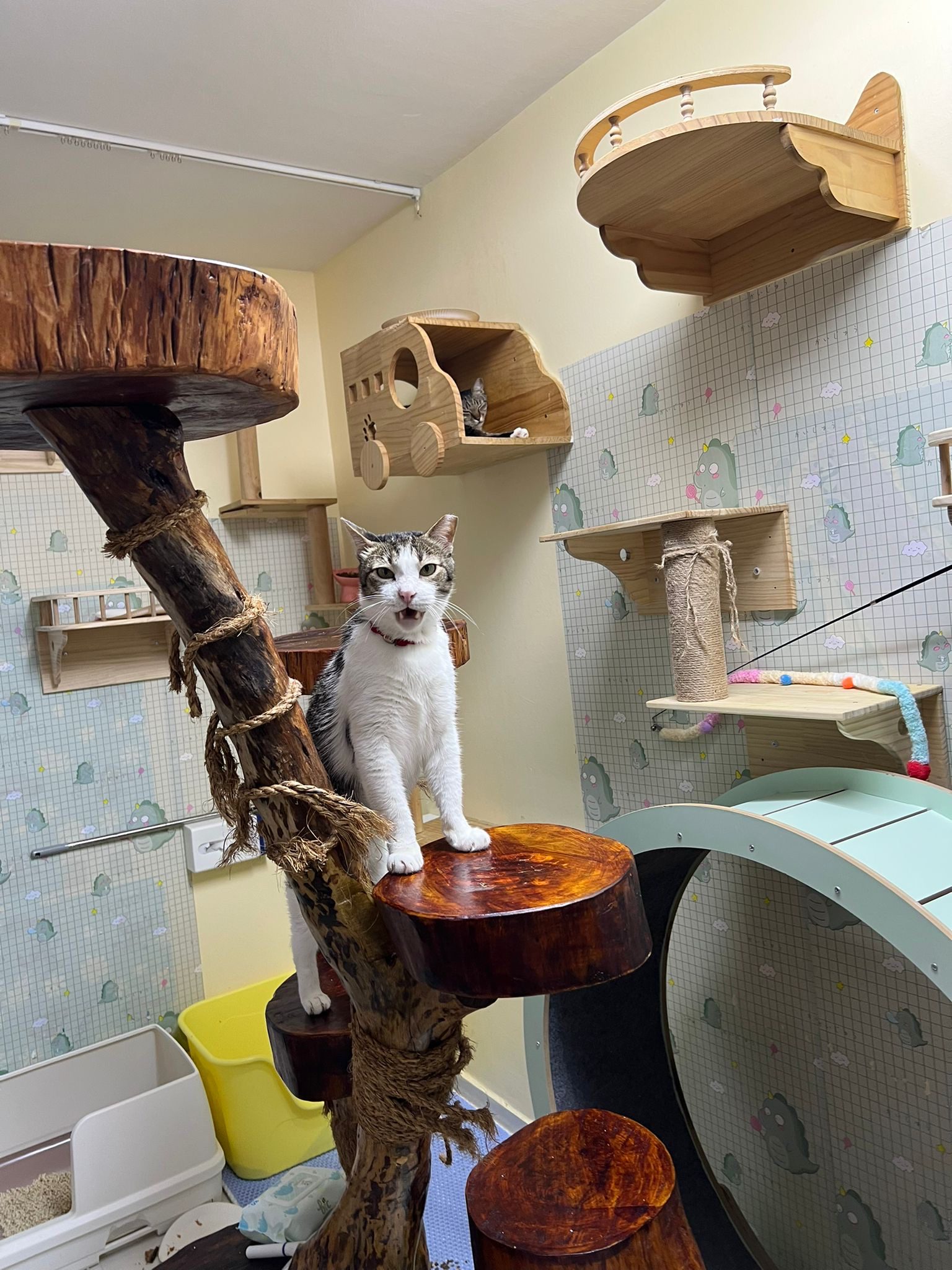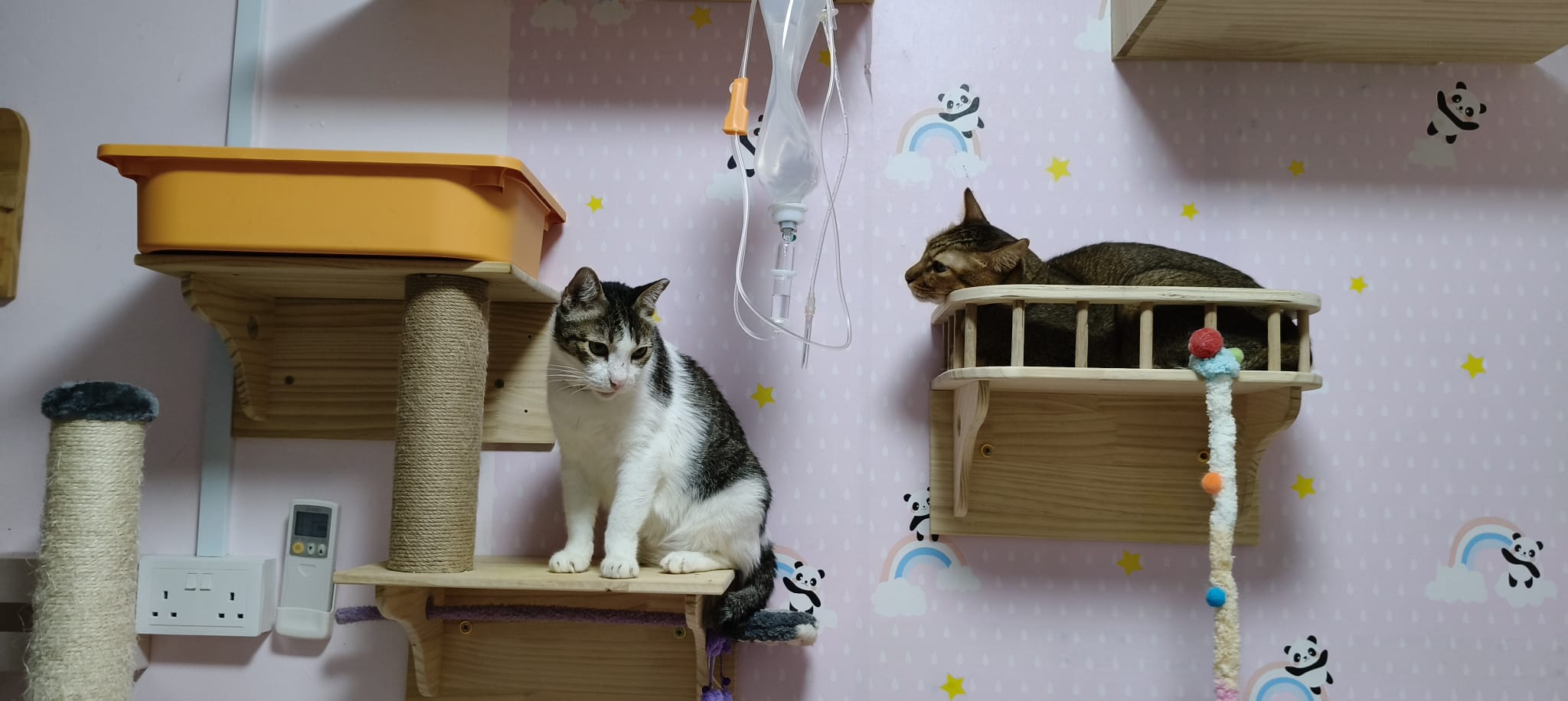 6am: let him out – fight almost instantly – sigh I wanted room b for Sophie leh, later see how