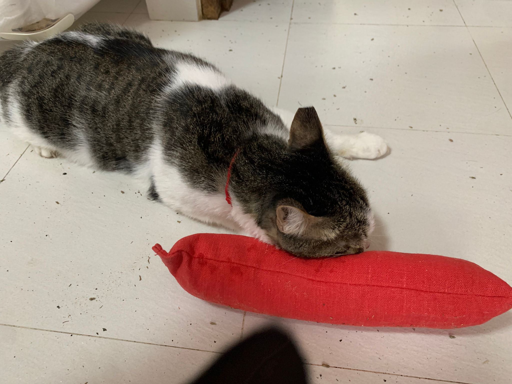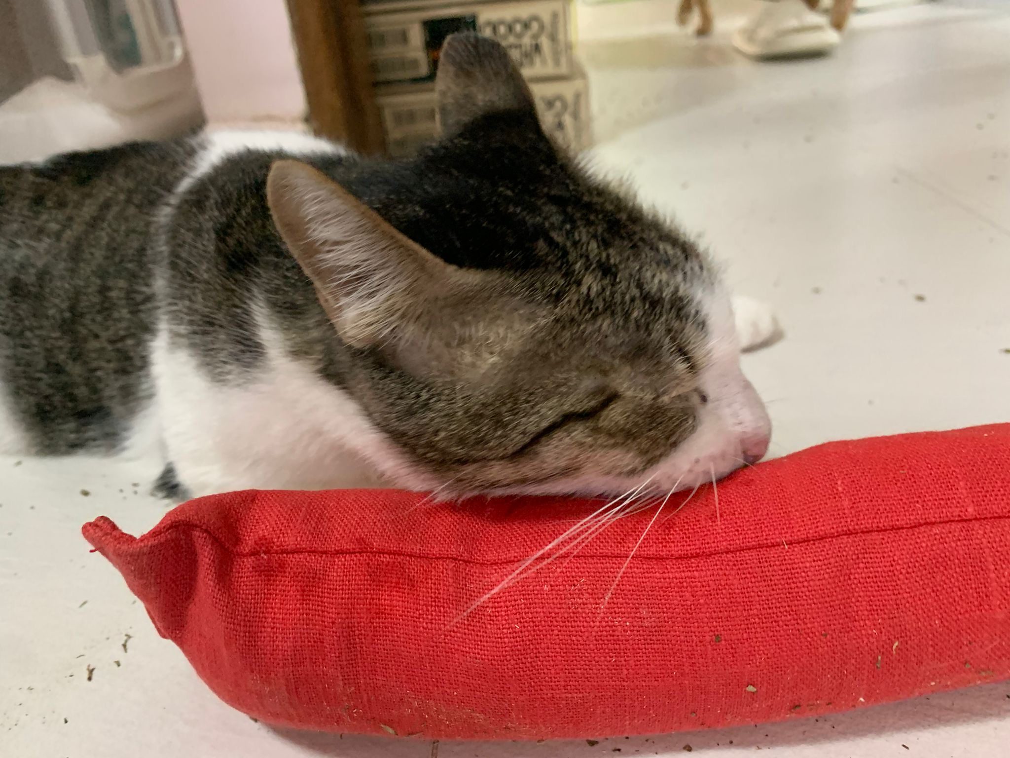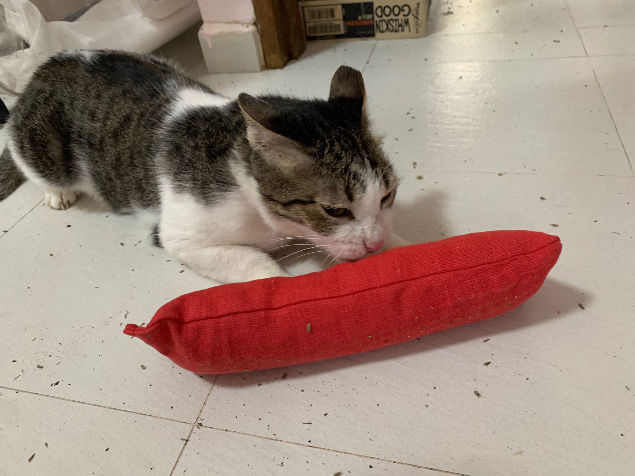 10am+: I pour lots of catnip all over ē«ęæ ⦠new catnip pillow n toys n floor n kitty come play and take teddyās