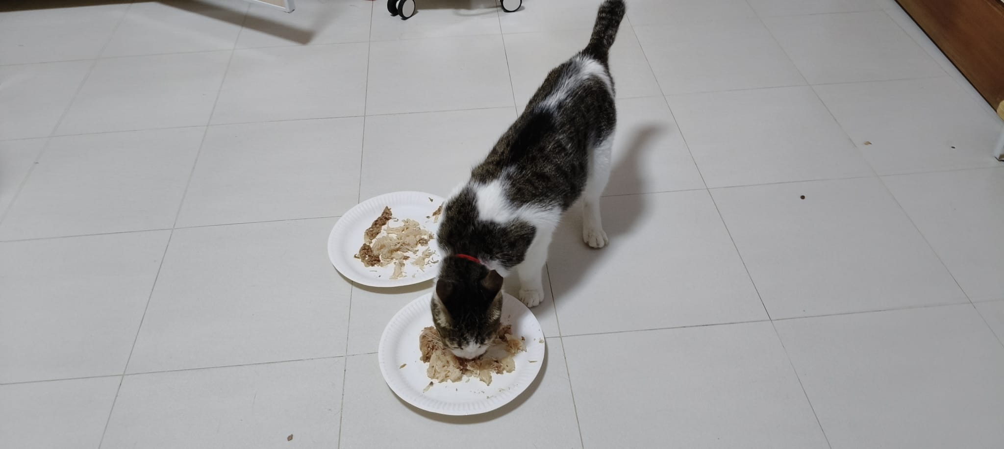 Tried Kakato tuna kibble, wa business dAmn good. kitty eat finish n want sunshine plate, paw out to get his plate, I even have to put somemore on stool for him to eat. He really like. Serve monilachs- wild boar, tested by, junior, renny, and Mimi (eat finish, bai bai, Amber, buddy and kitty got eat. Serve Leonardo chicken w pulled beef – kitty didnāt eat. Fail.